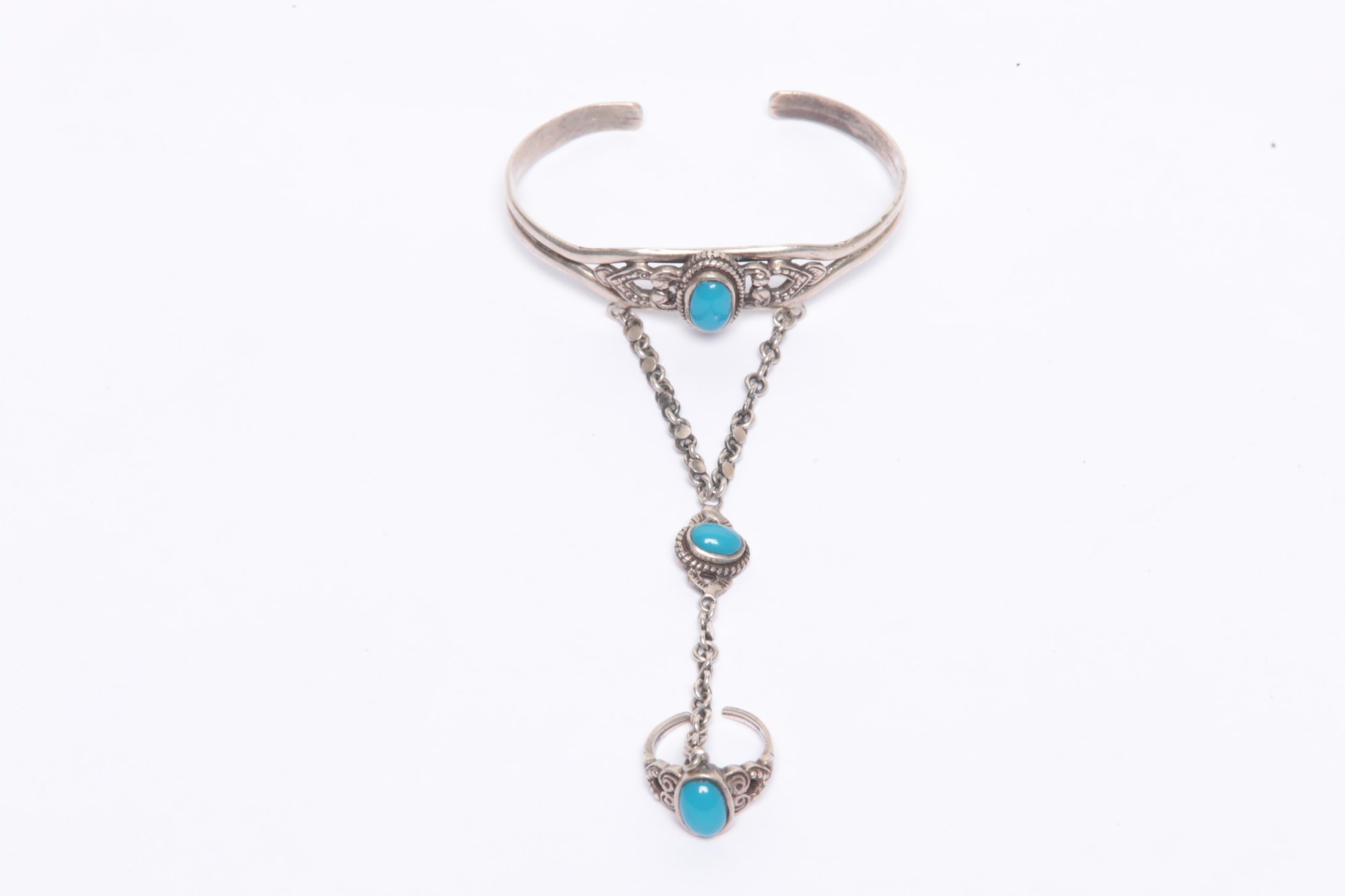 Heavy sterling silver and turquoise slave bracelet , excellent condition. Hallmarked.
