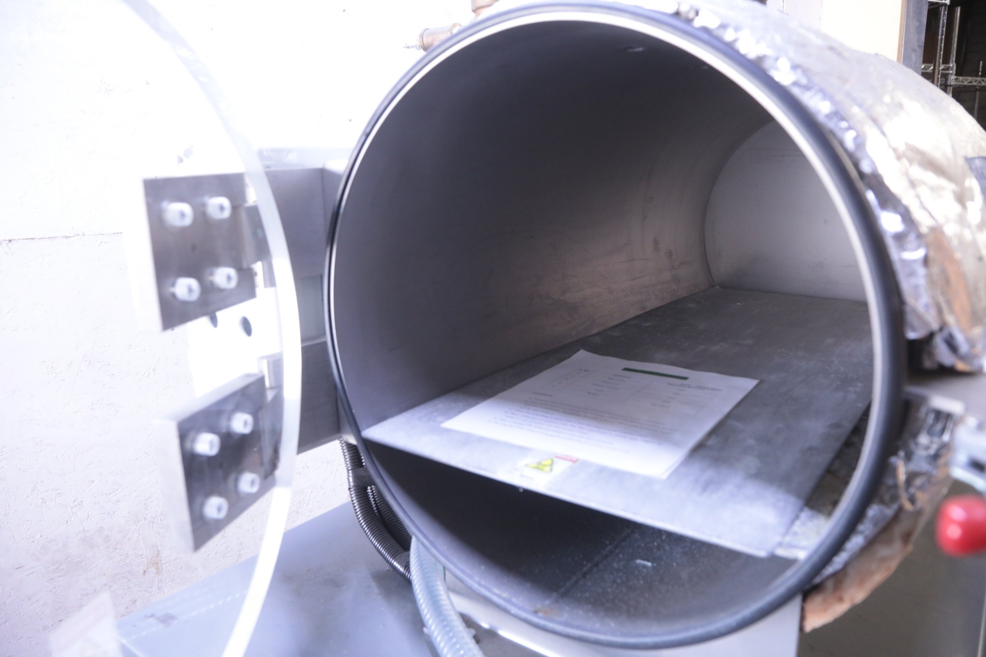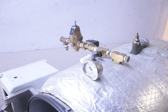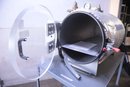 Horizontal Industrial Vacuum Chamber untested, sold as is. Chamber is mounted to table. See pictures carefully for details on size and condition.