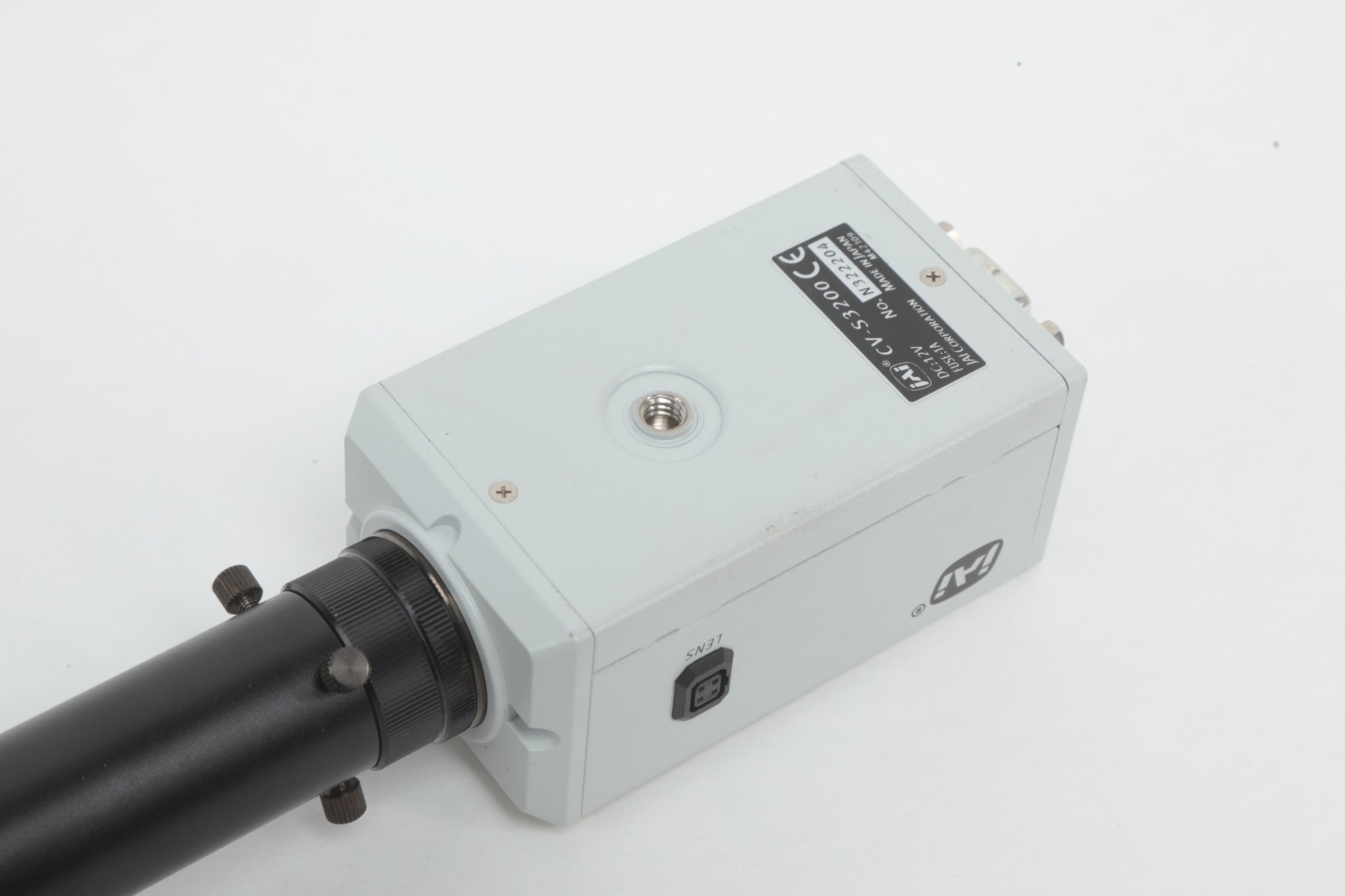 JAI CV-S3200 P CCD Industrial Camera W/Edmund Industrial Optics Lens. Both pieces are untested sold as is. See pictures carefully for details on contents included and condition.
