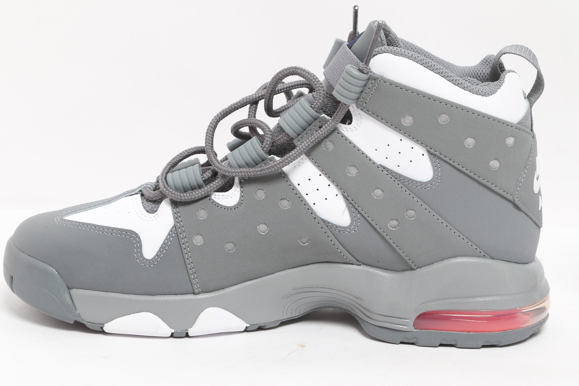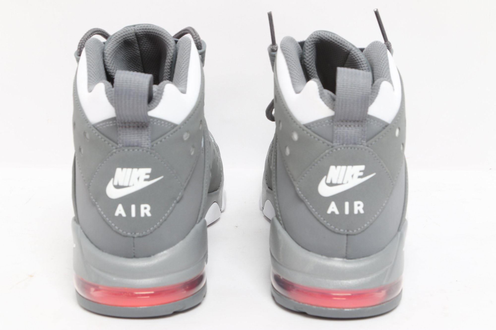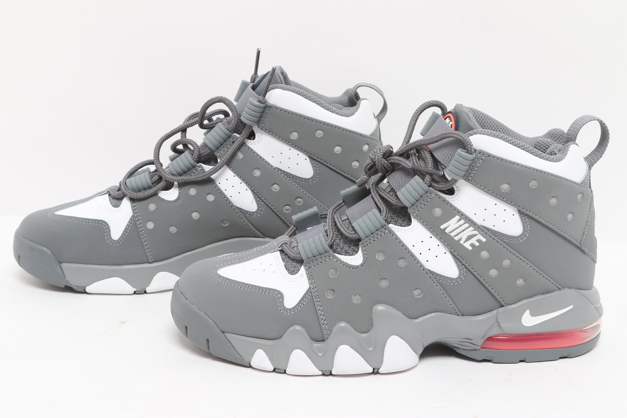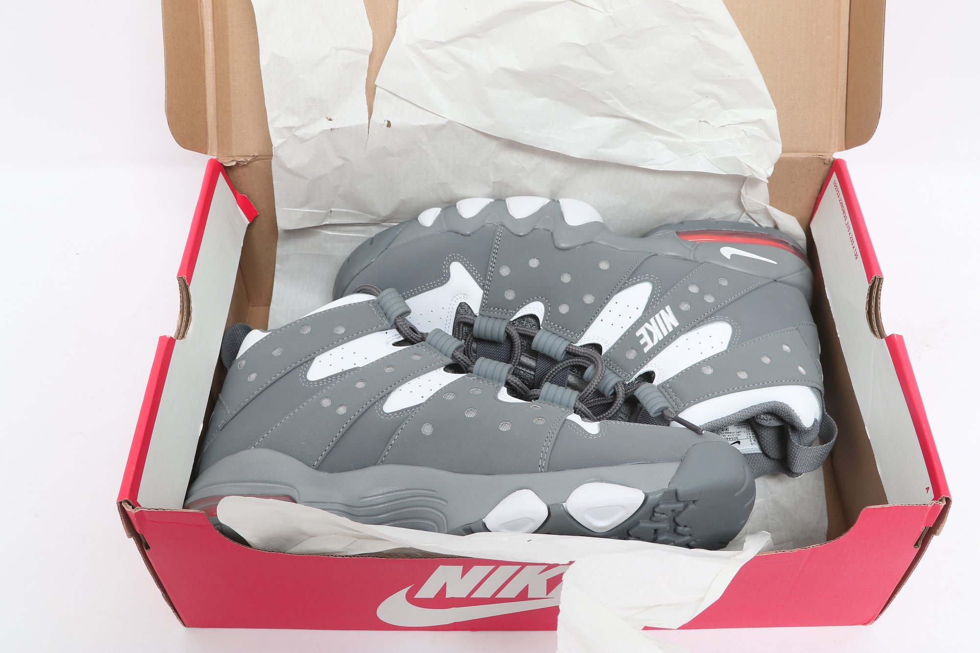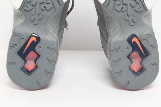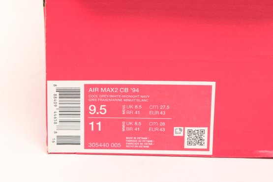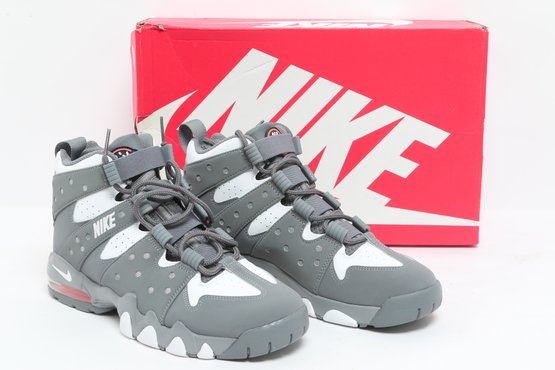 Nike Air Max CB 94 GS sneakers in gray and white colorway with visible Air cushioning and rugged outsole design. Includes original Nike box; pre-owned with light wear, great for casual or athletic use.