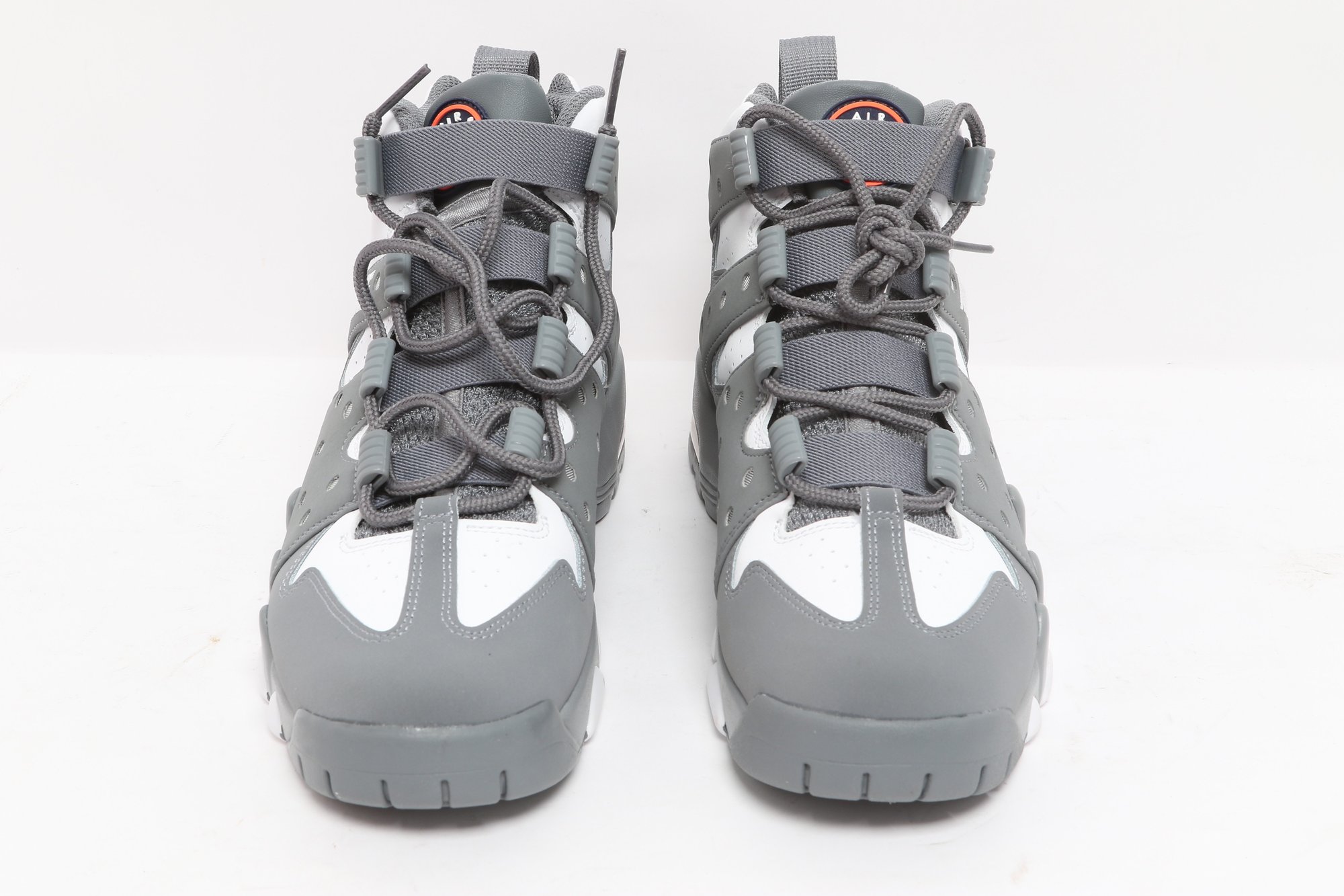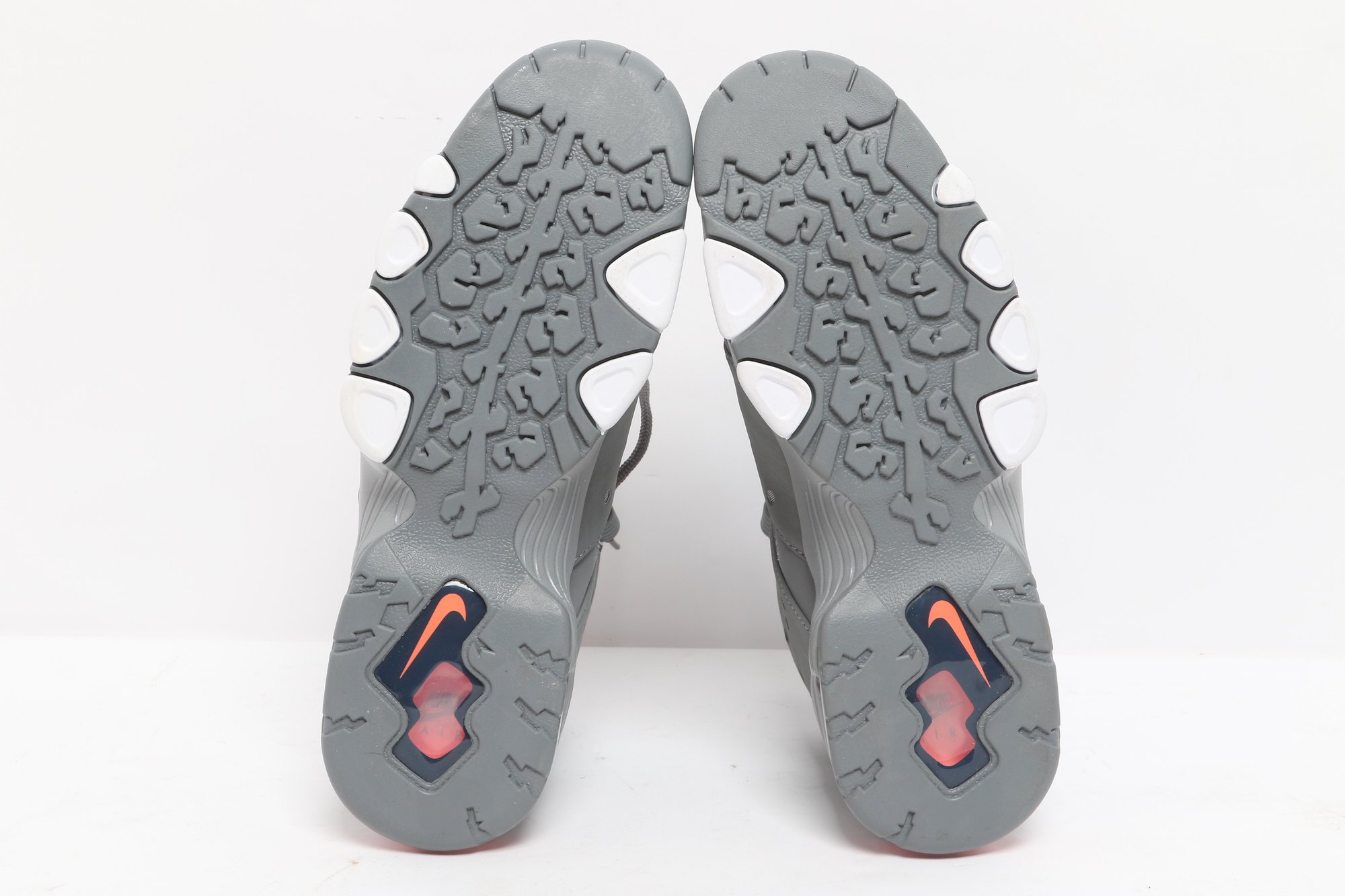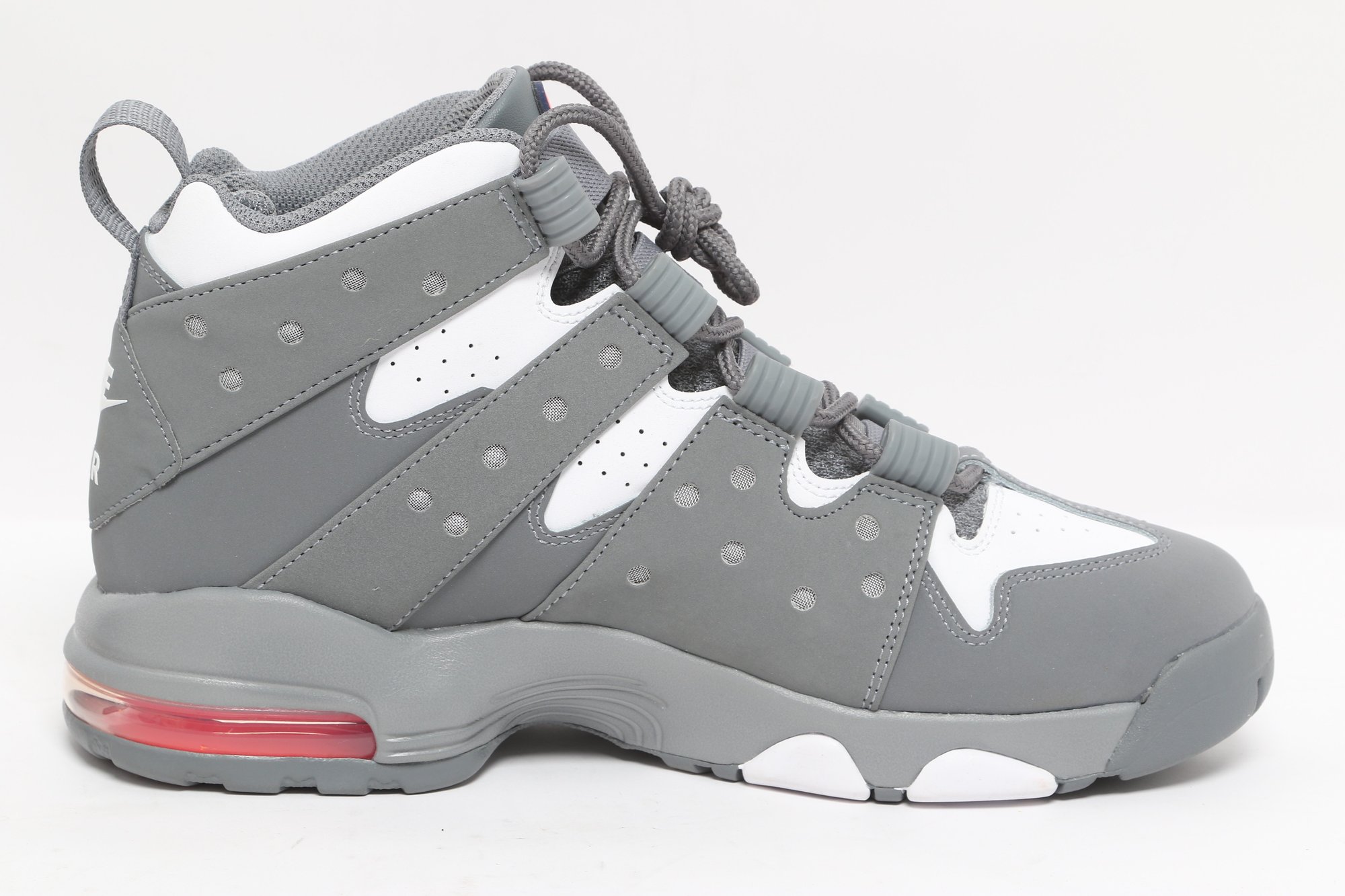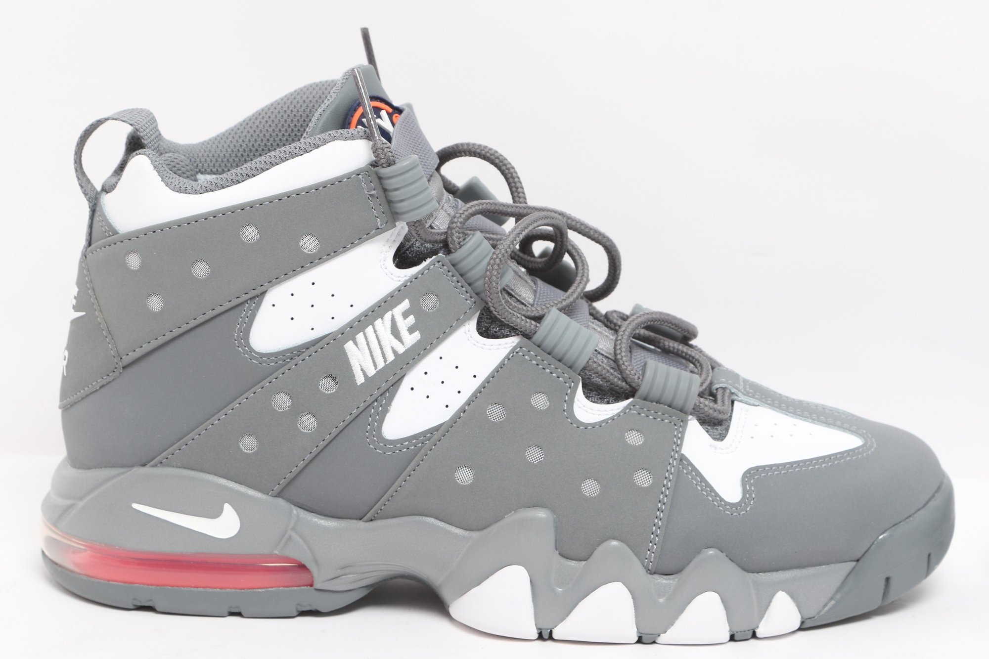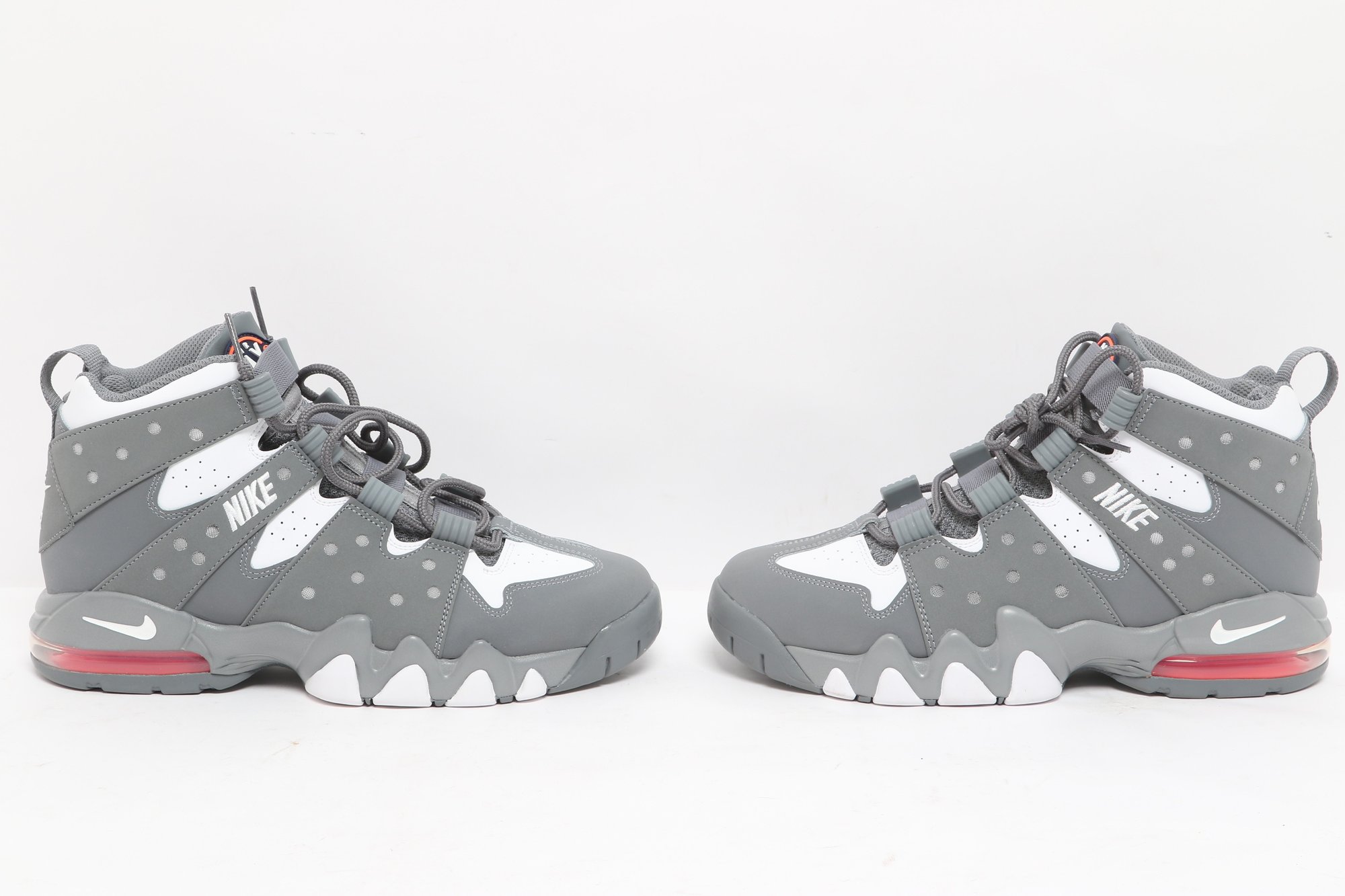Nike Air Max CB 94 GS sneakers in gray and white colorway with visible Air cushioning and rugged outsole design. Includes original Nike box; pre-owned with light wear, great for casual or athletic use.