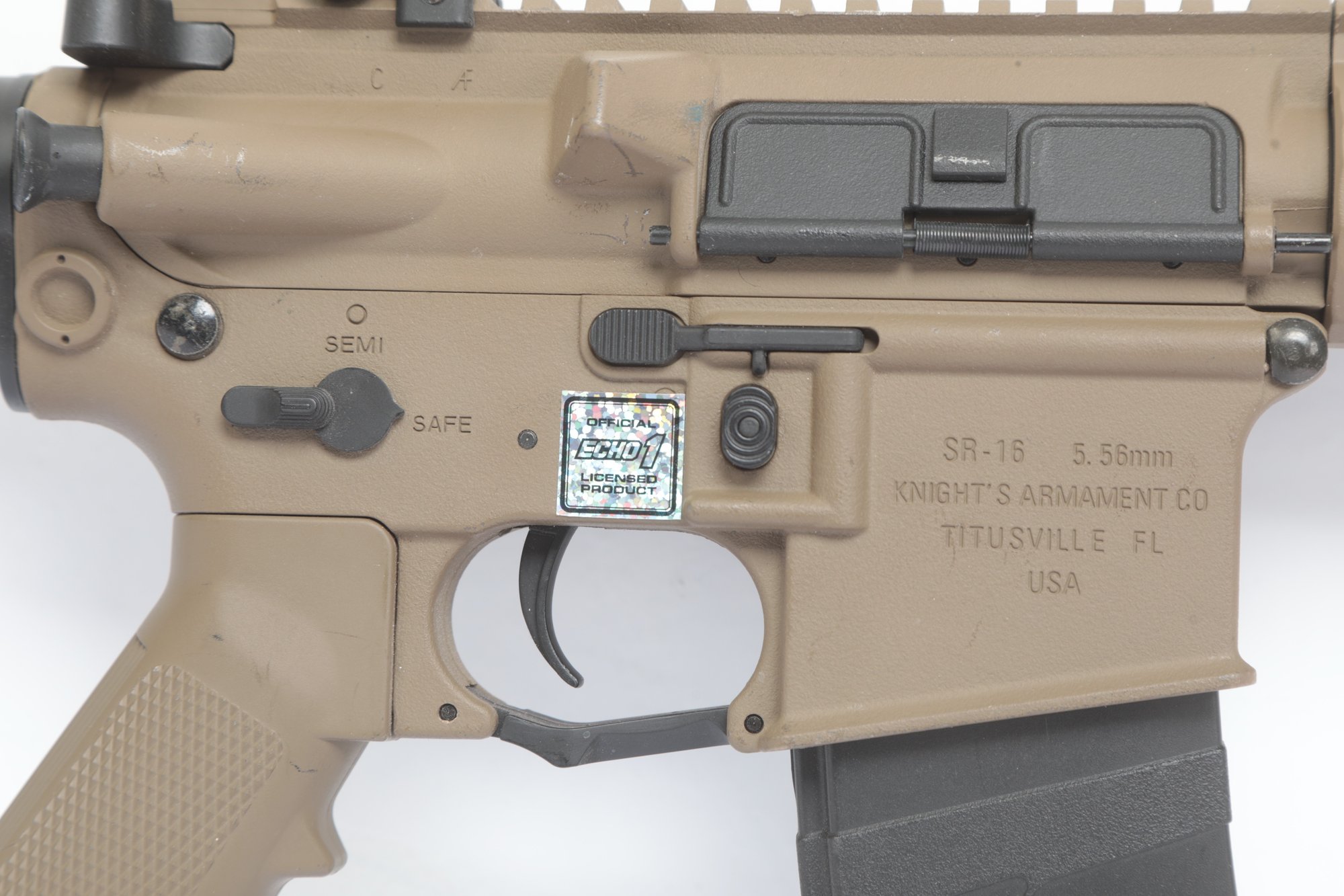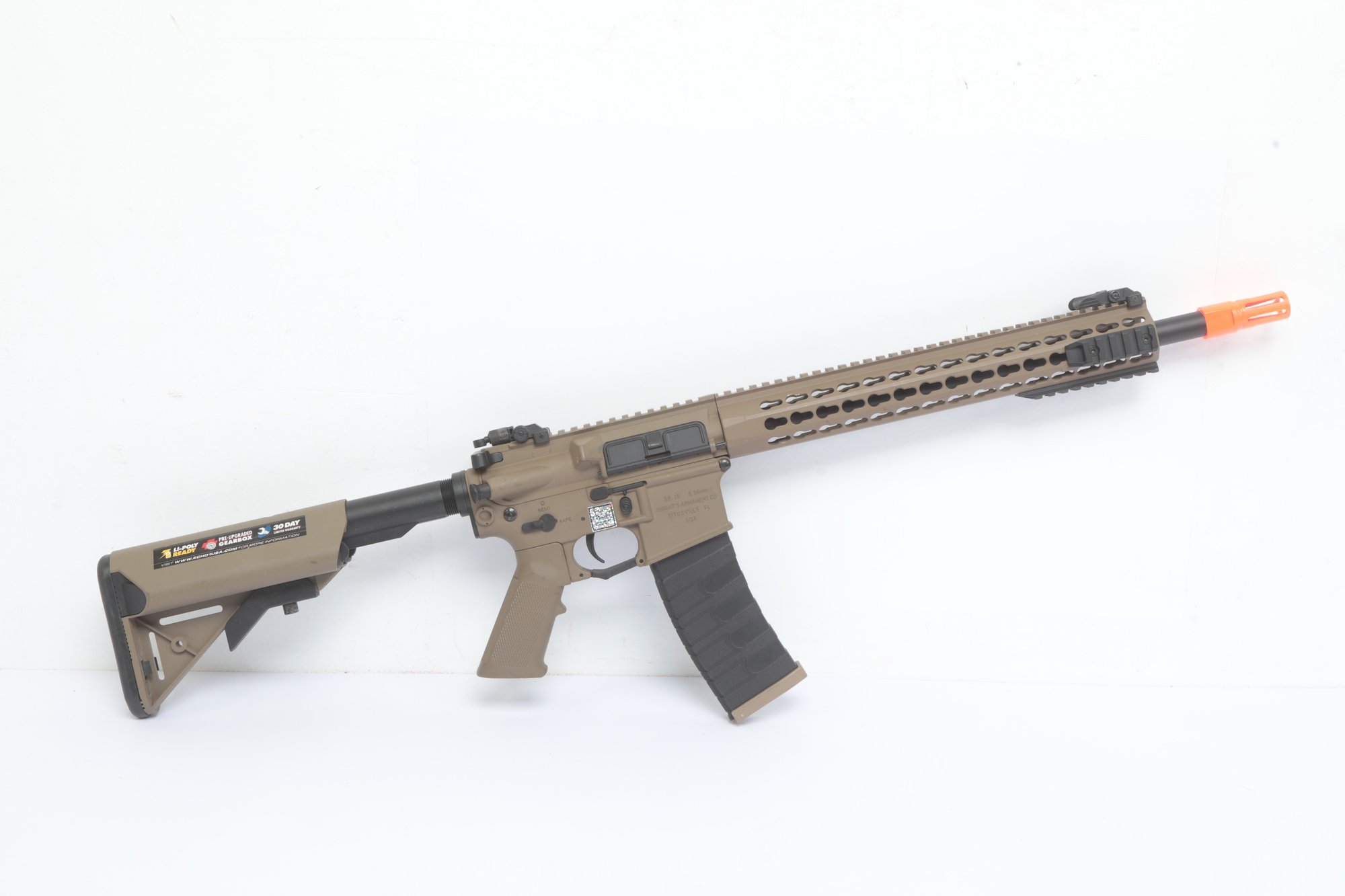 Knights Armament SR16 CQB Assault Rifle 5.56mm. Has some light wear and scratches from storage and use. See pictures carefully for details on size and condition. Untested, sold as is.