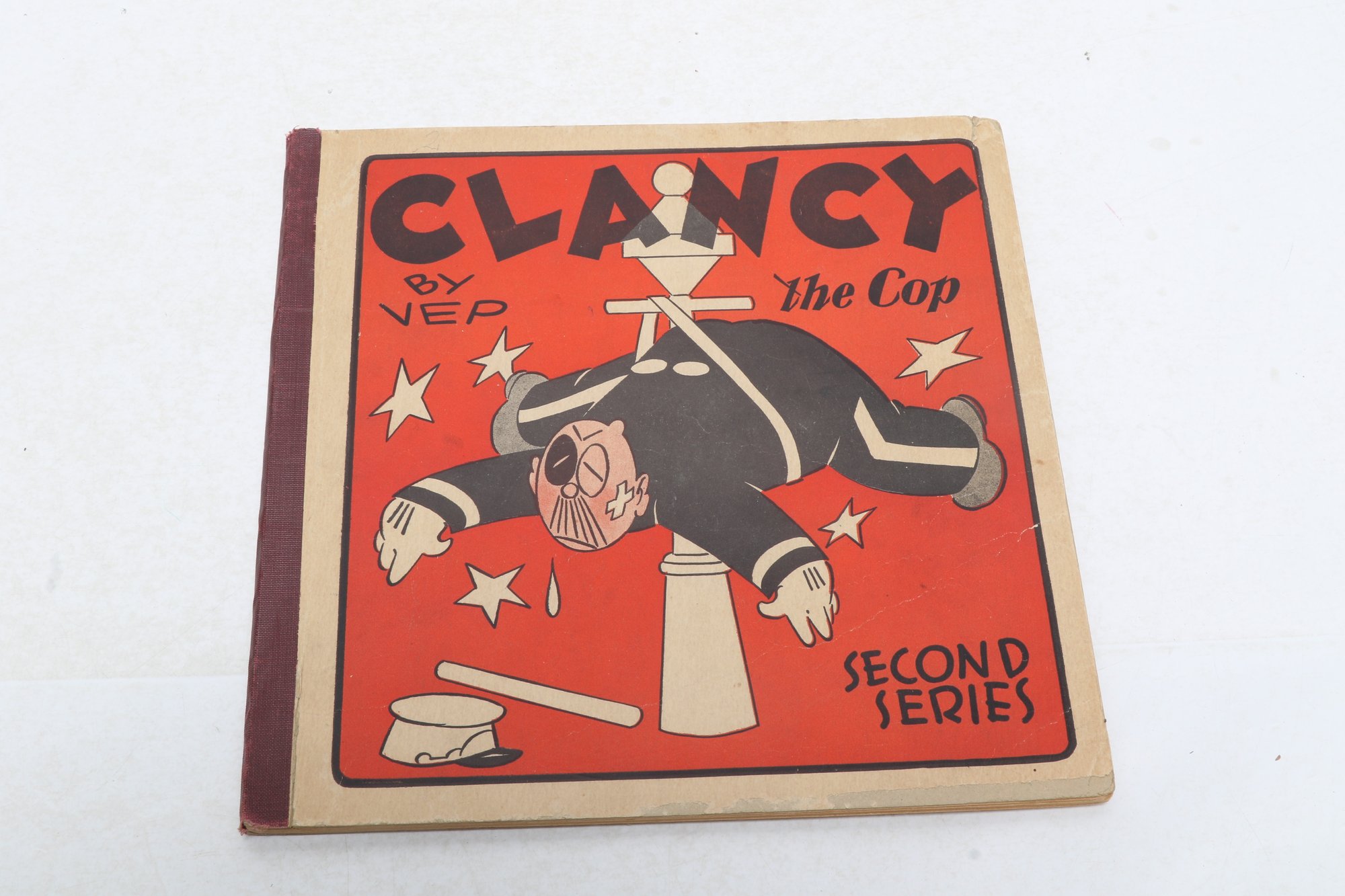 10x10" printed paper covers. This is the second series of Clancy The Cop, published by Dell Publishing Co. in 1931. Copy from the Dover Publishers archive, with the owner’s stamp. Scarce. Toning and light chipping, including gutter of first leaf (no text loss). If Dover reprinted the title, this was probably the master copy. View all photos FOR CONDITION before bidding.