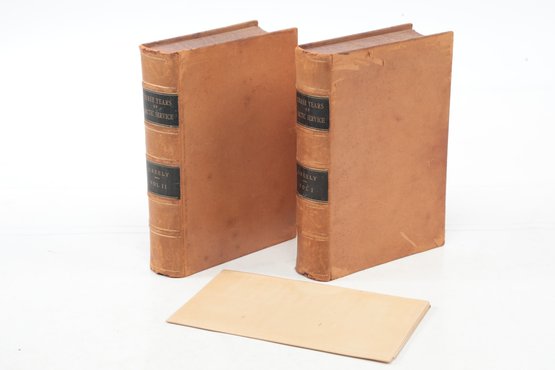 Original full sheep leather bindings, raised bands and labels on spines, Clean text, large folding Map in pocket at end of volume two. Profusely illustrated. Findings have wear to spine ends & stress to joints, but overall condition is good or better. View all photos FOR CONDITION before bidding.