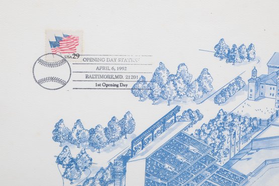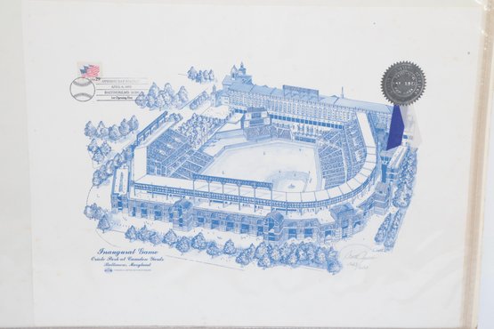 Limited Edition Signed Lithograph Inaugural Game Opening Day From Oriole Park April 2nd, 1992. Piece is signed by Scott Forst and numbered 223/600.