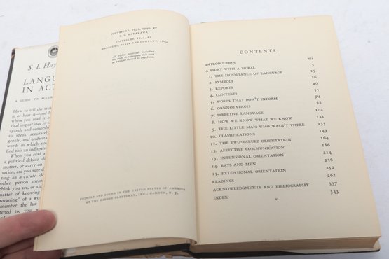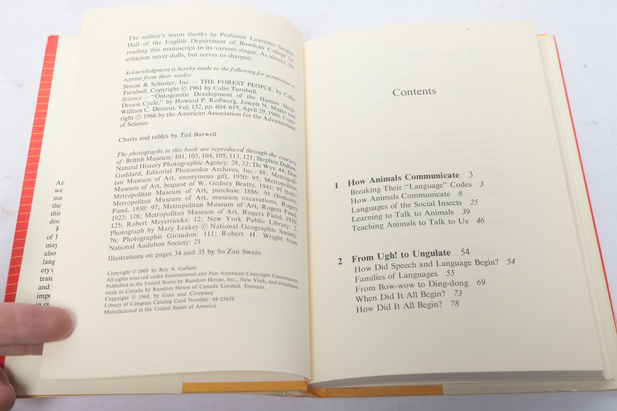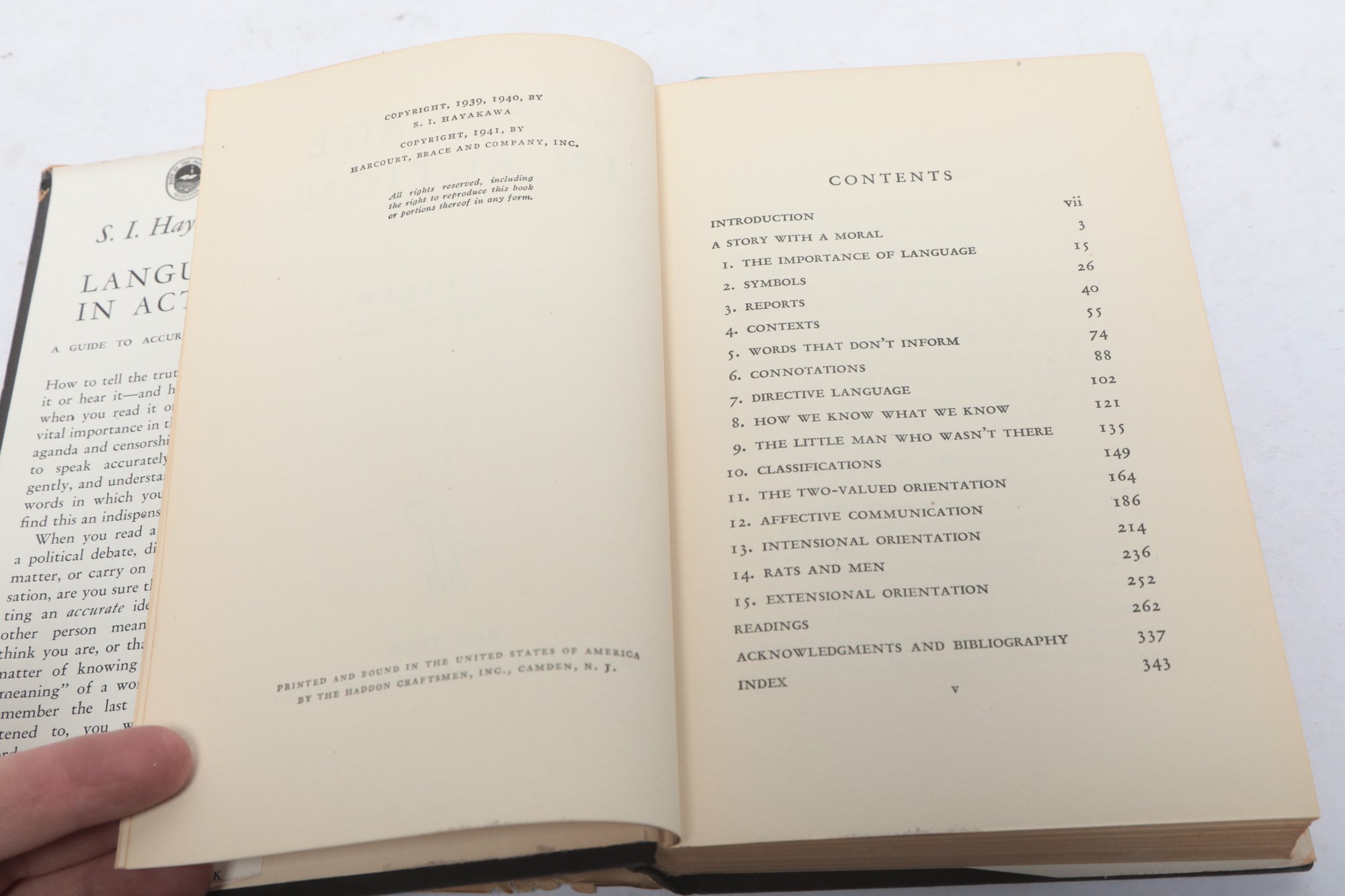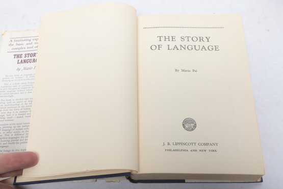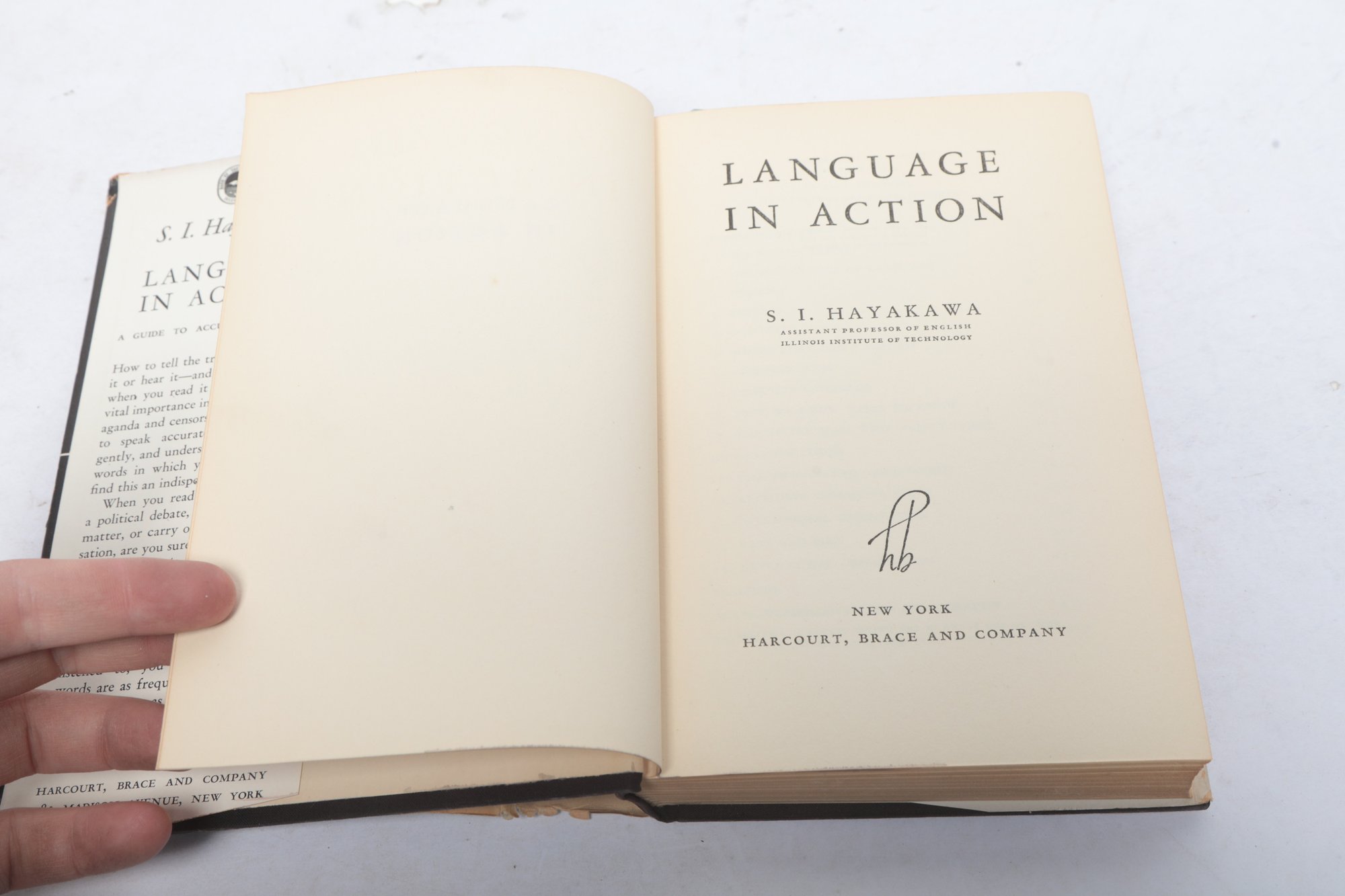 A trio of mid-century hardcover volumes exploring the history and mechanics of communication. Includes The Story of Language by Mario Pei, Man Must Speak by Roy A. Gallant, and S. I. Hayakawa’s seminal work Language in Action. These scholarly titles feature original dust jackets and cover a range of linguistic history and general semantics.