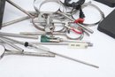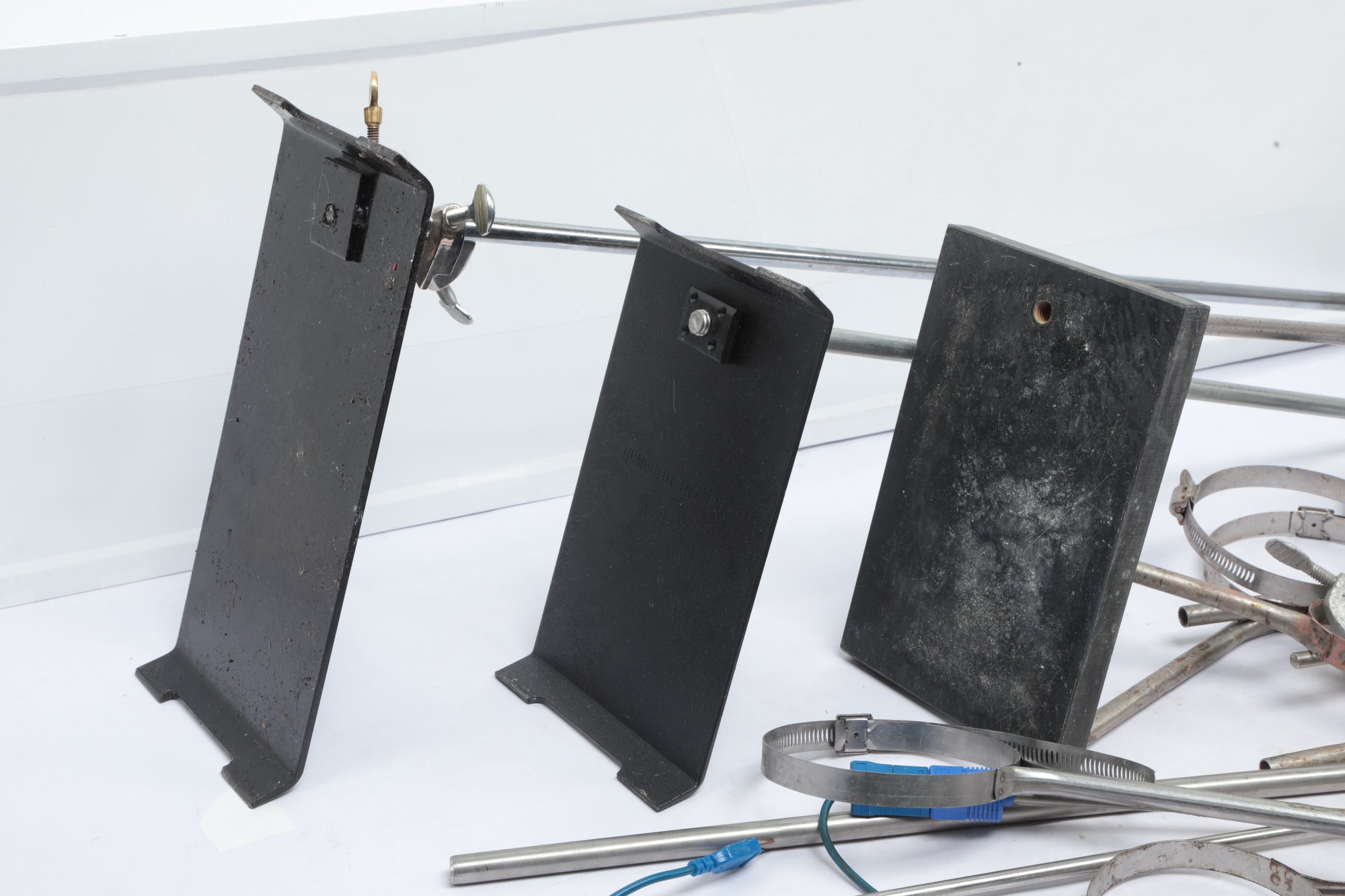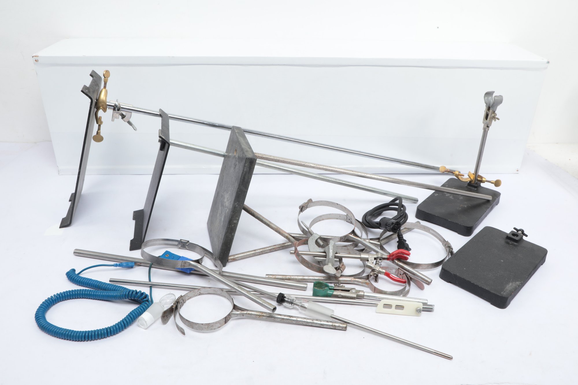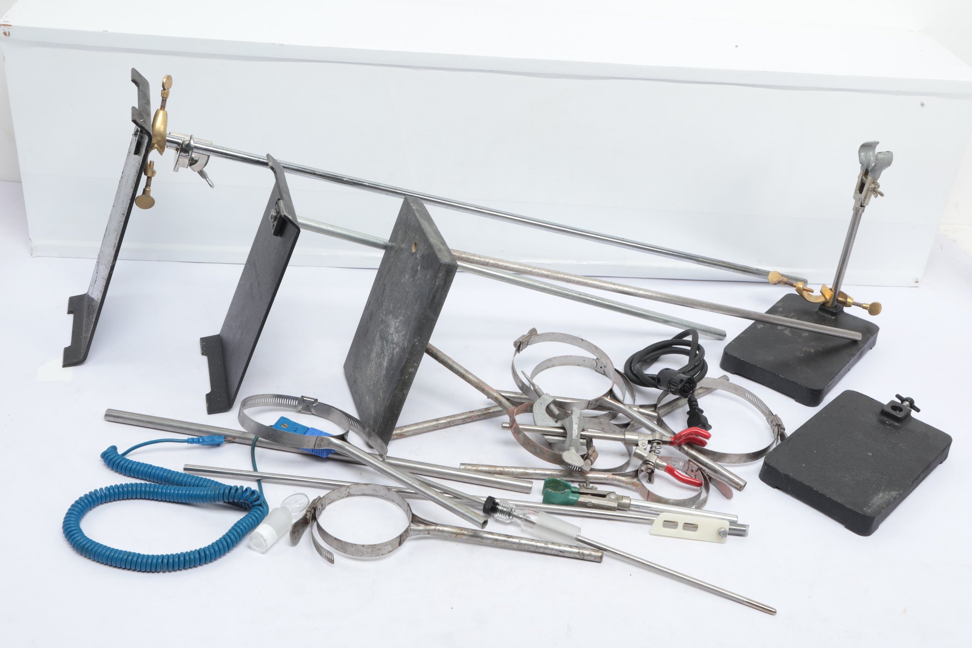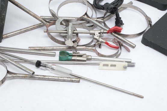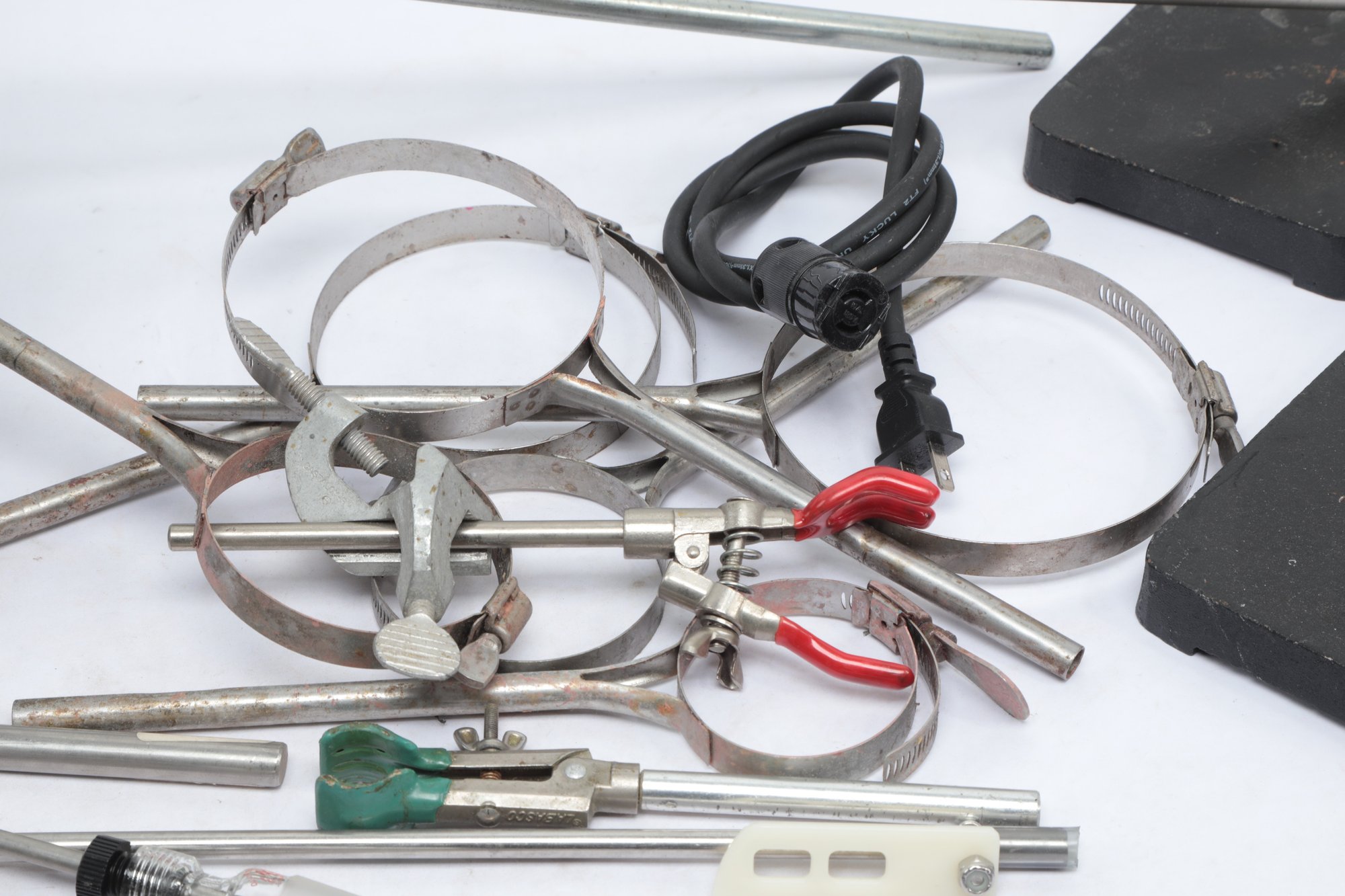 Lot Of Assorted Laboratory Rods, Clamps And Stands. See pictures carefully for details on contents included with lot and condition.
