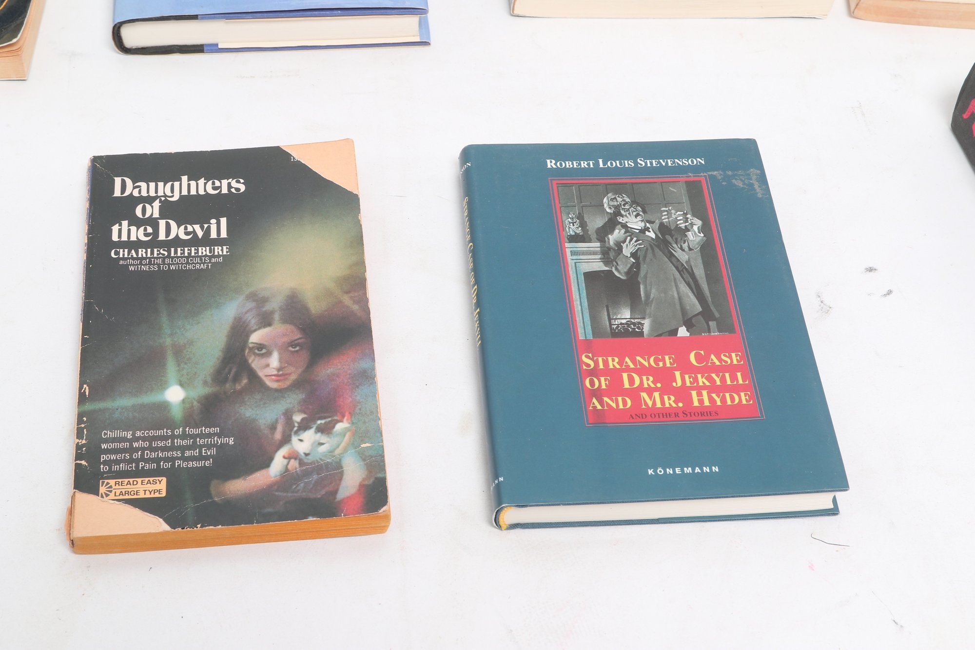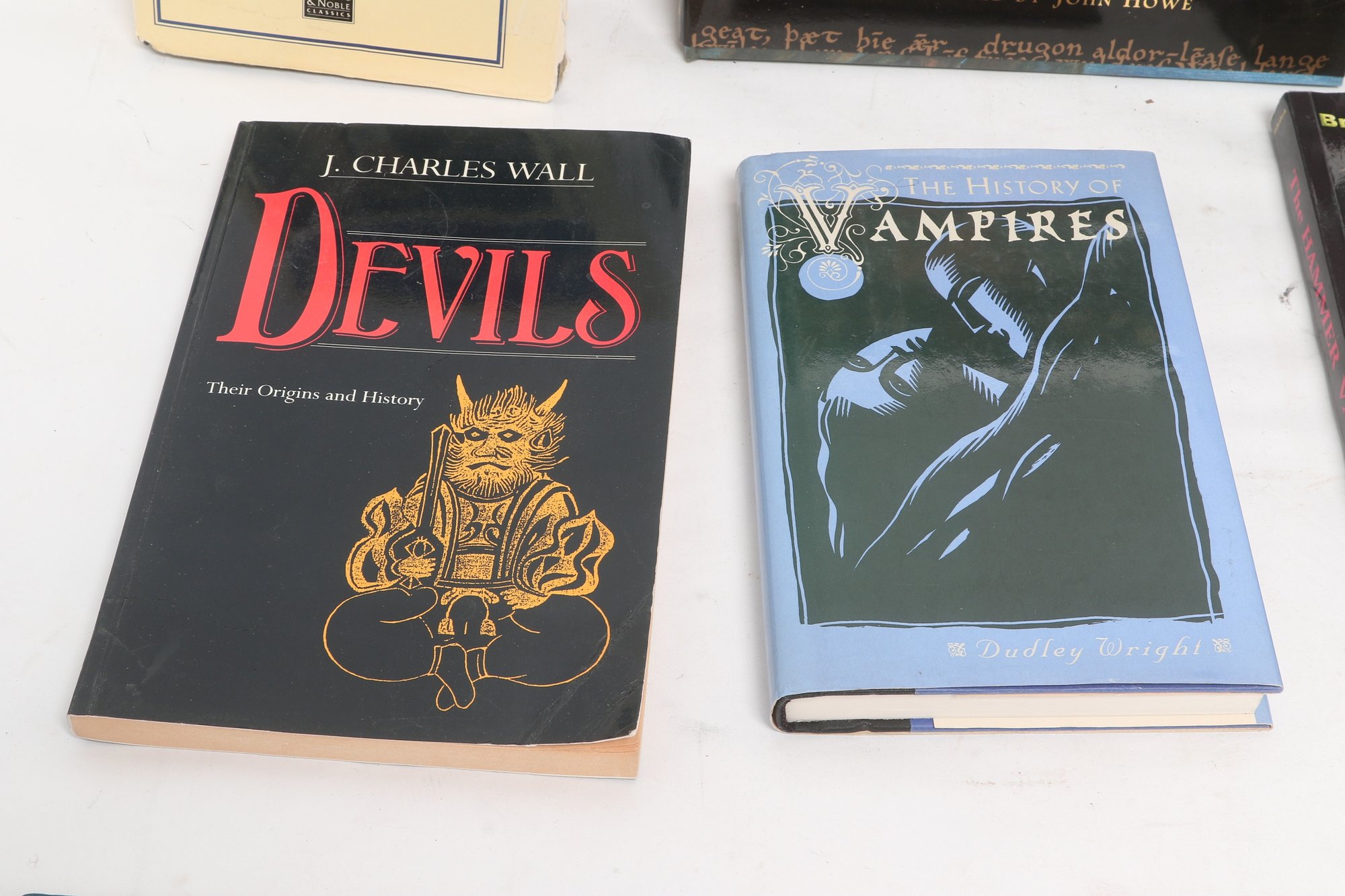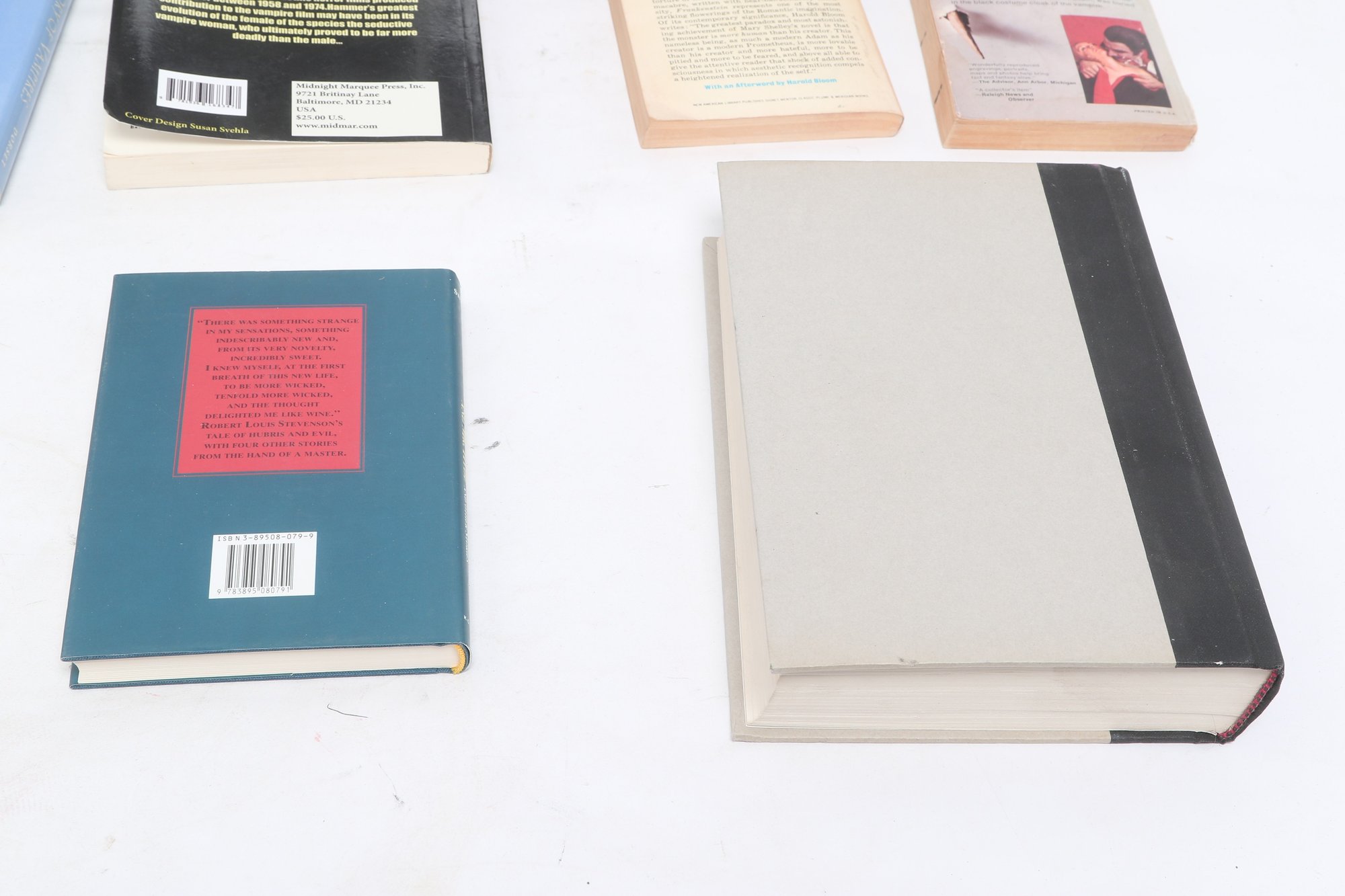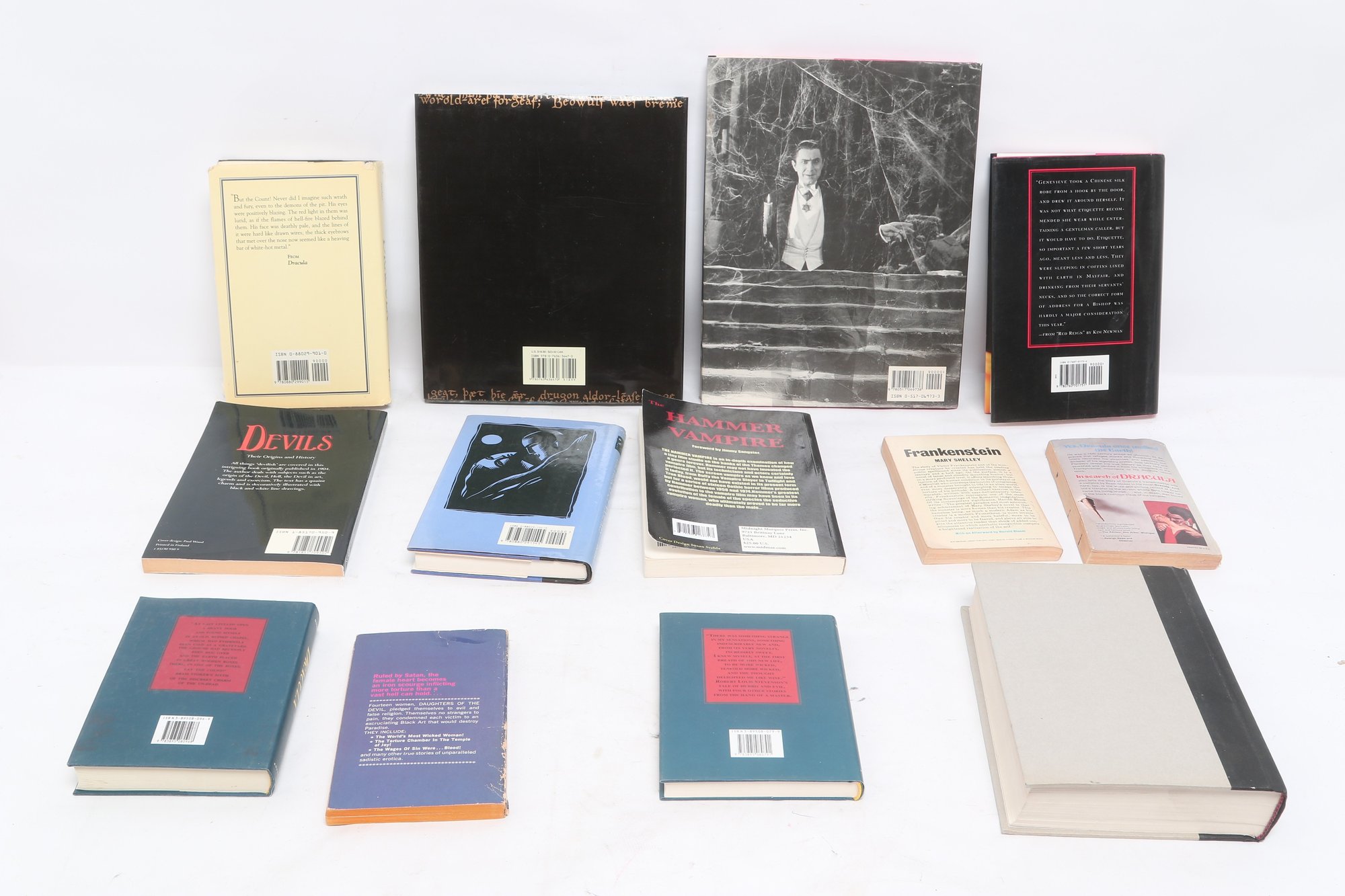 Mixed lot of horror and gothic literature books featuring titles related to Dracula, vampires, and Beowulf. Includes paperbacks and hardcovers with classic and modern editions. Books show typical pre-owned wear with some edge and cover wear; overall a solid reading or collector’s lot.