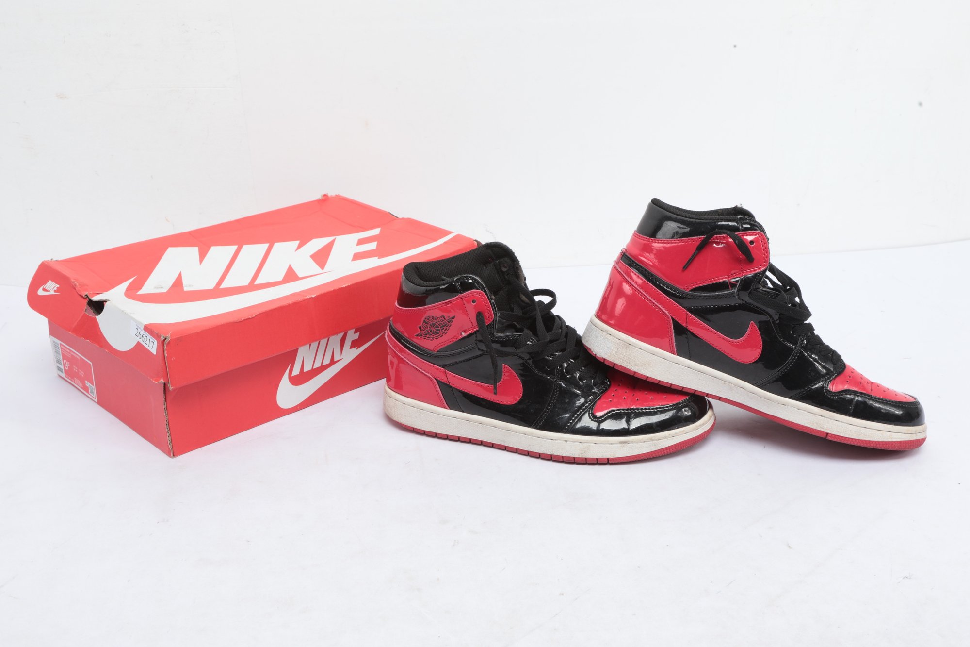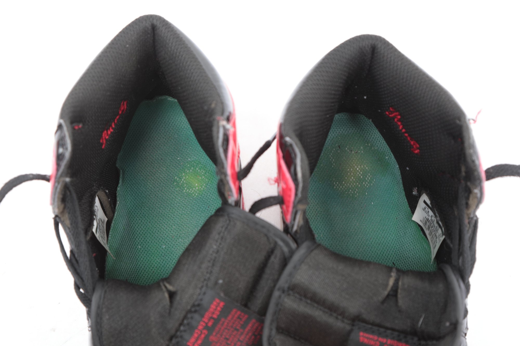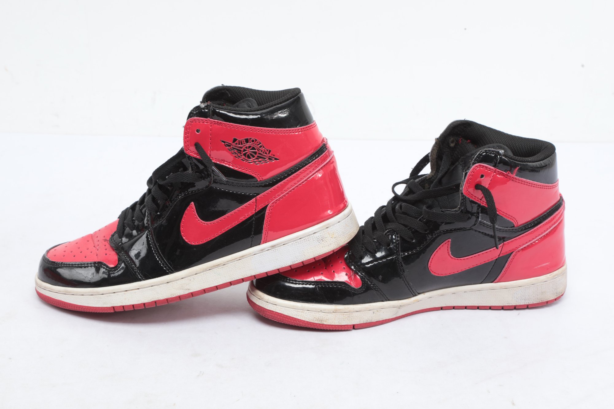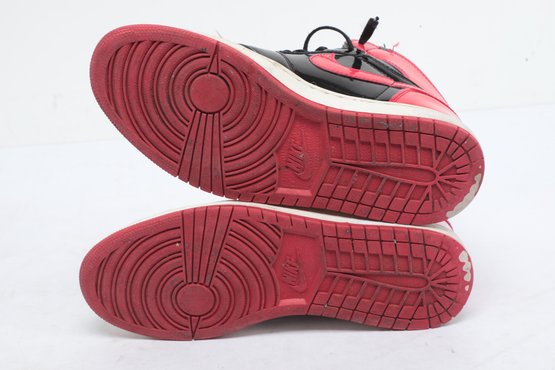 Mens 9.5 Red And Black Air Jordans with wear from use. See pictures carefully for details.