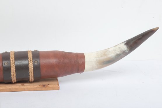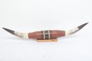 Mounted Bull Horns measuring approximately 38" long. See pictures carefully for details on size and condition.