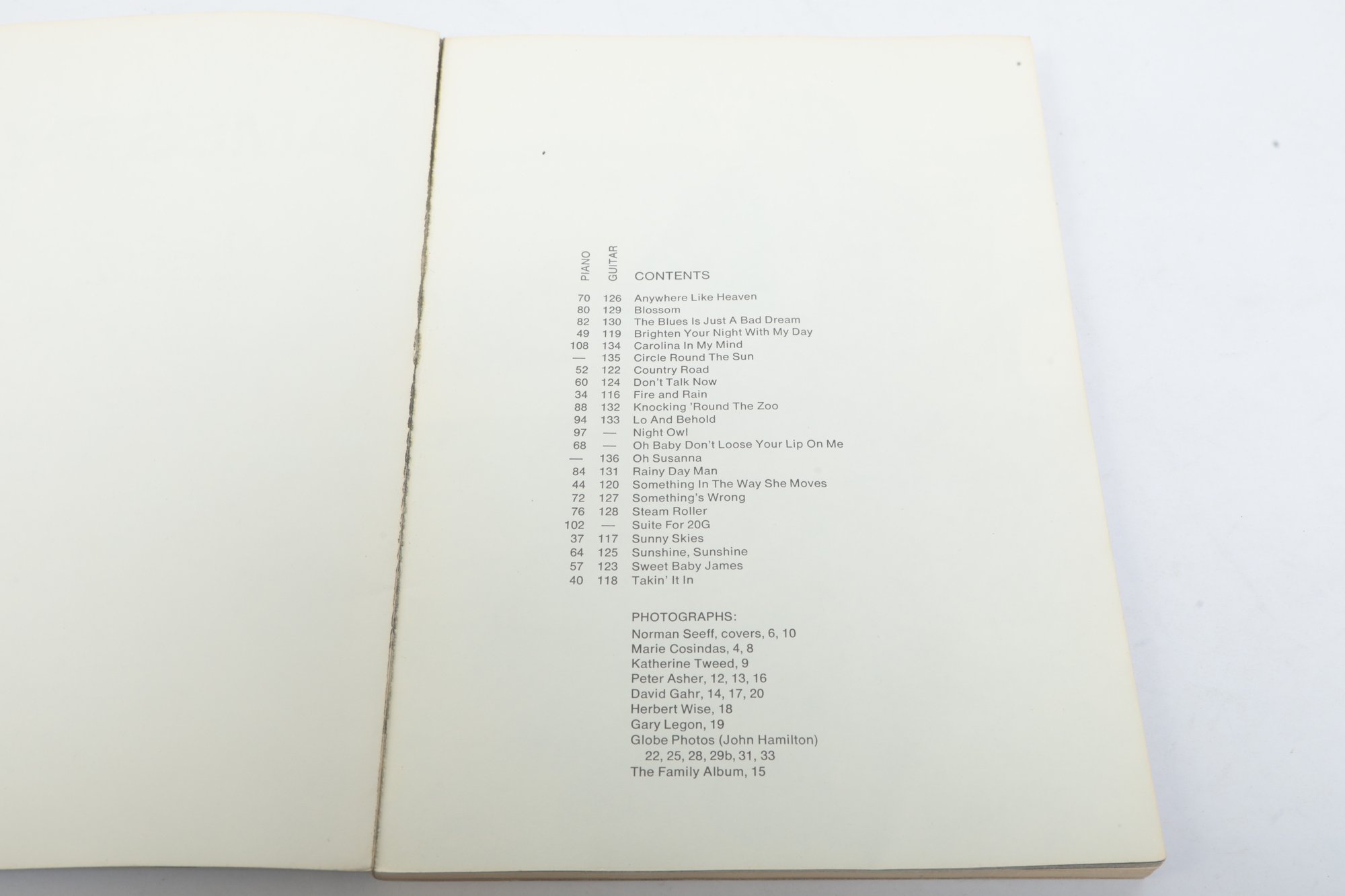 New York: Amsco Music Publishing Company, 1971. Softcover in paper wraps. Features piano and guitar arrangements with credits to Happy Traum and Leo Alfassy.