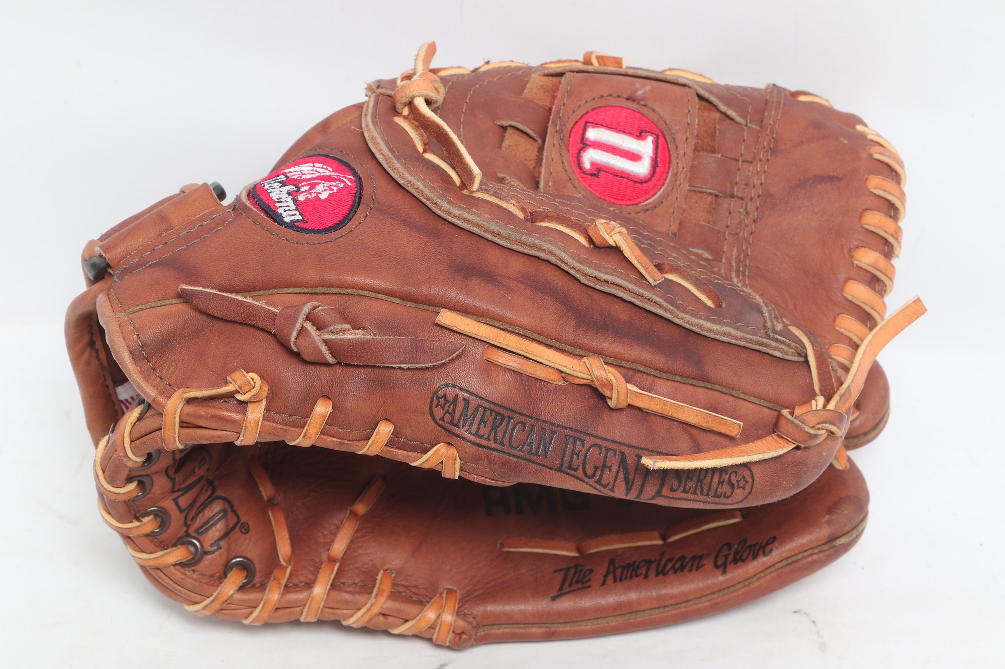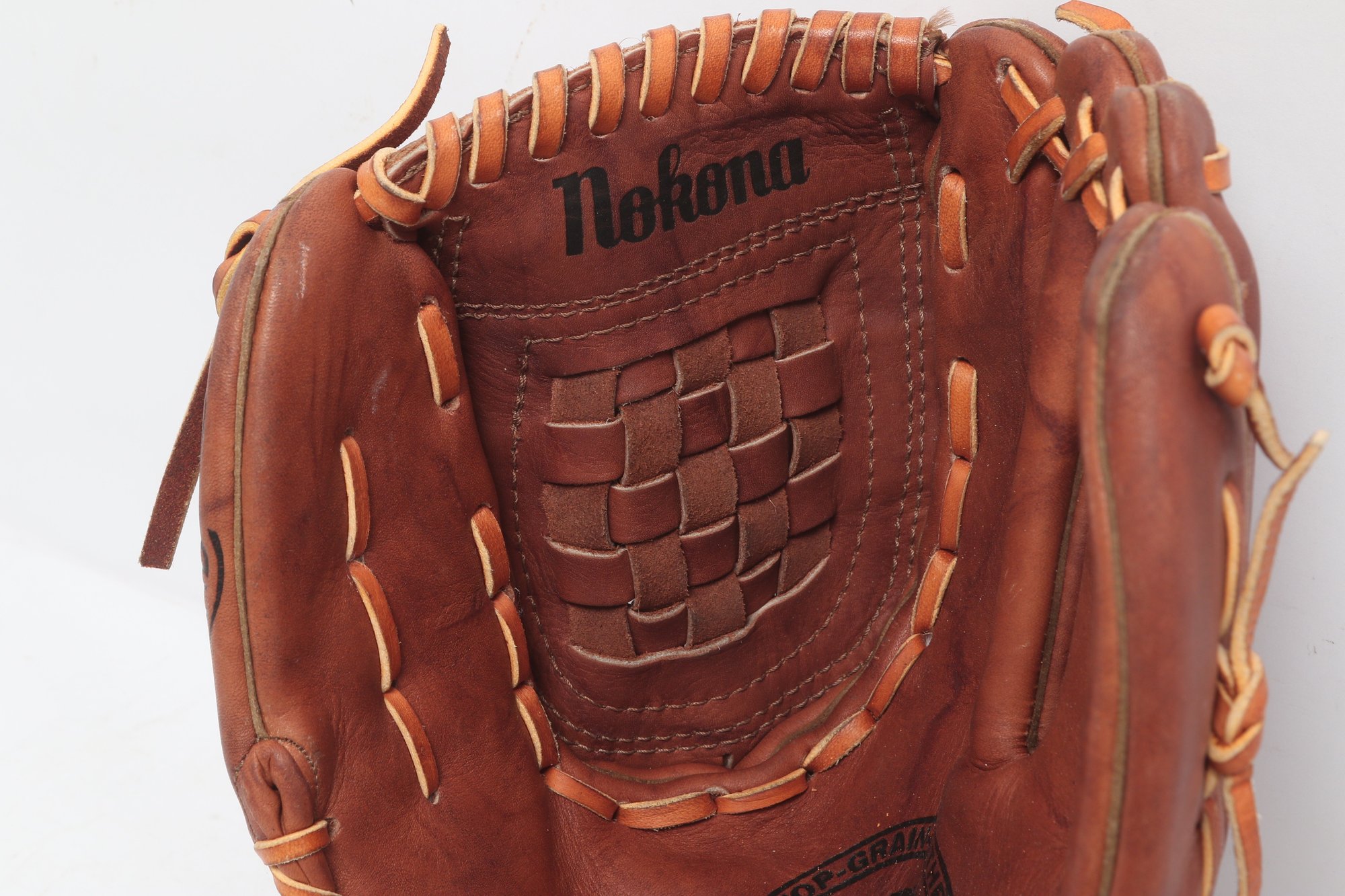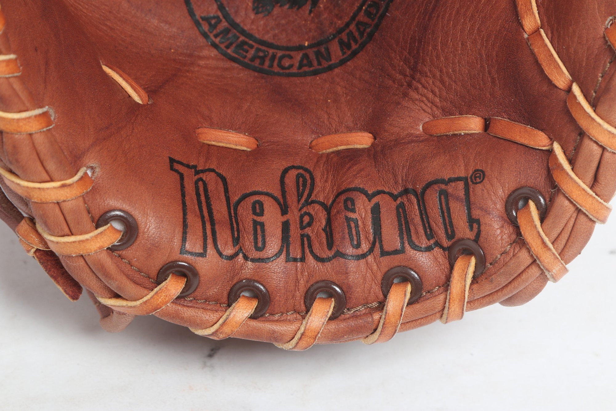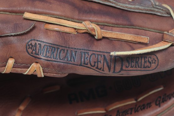 Nokona American Legend Series baseball glove, 12.5 inches, crafted in the USA from premium leather. Features “Professional Model” marking with classic brown leather, durable lacing, and deep pocket design. Shows light to moderate use with attractive patina, remaining in solid playing condition.