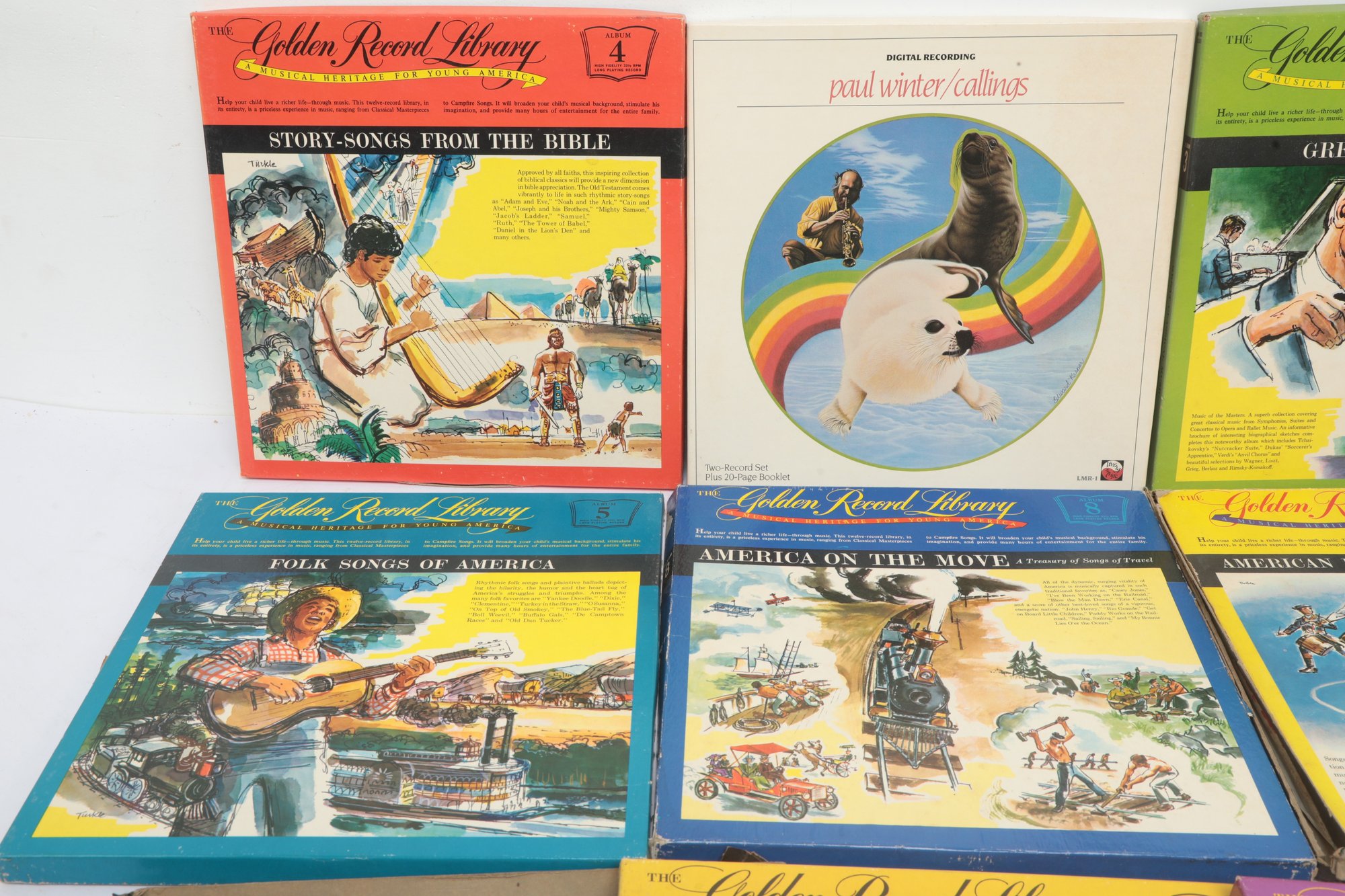 Golden Records Library Lot including 10 records plus a Paul winter/Callings record. See pictures carefully for details on records included and condition. Some of the sleeves have wear and tear.
