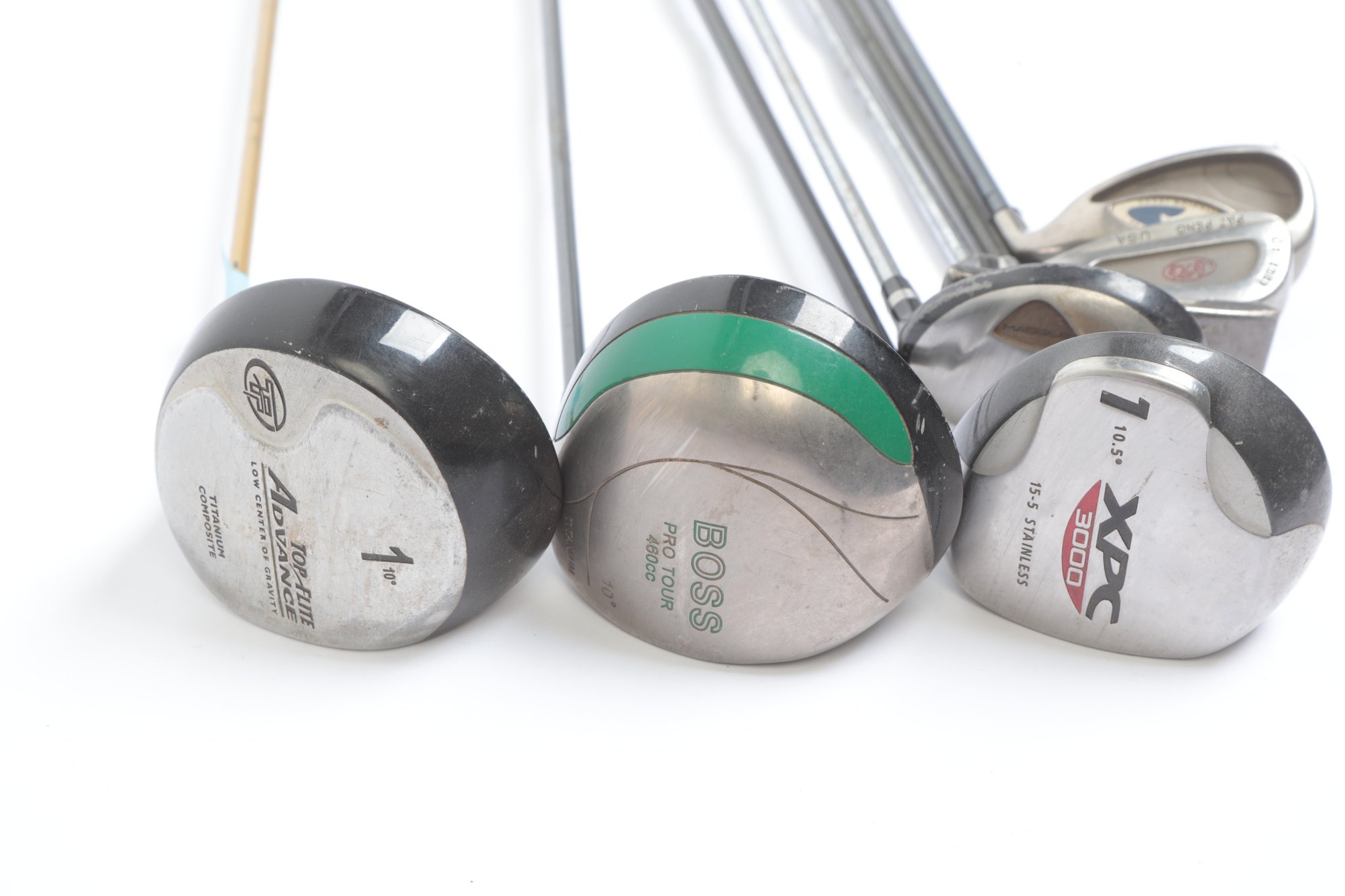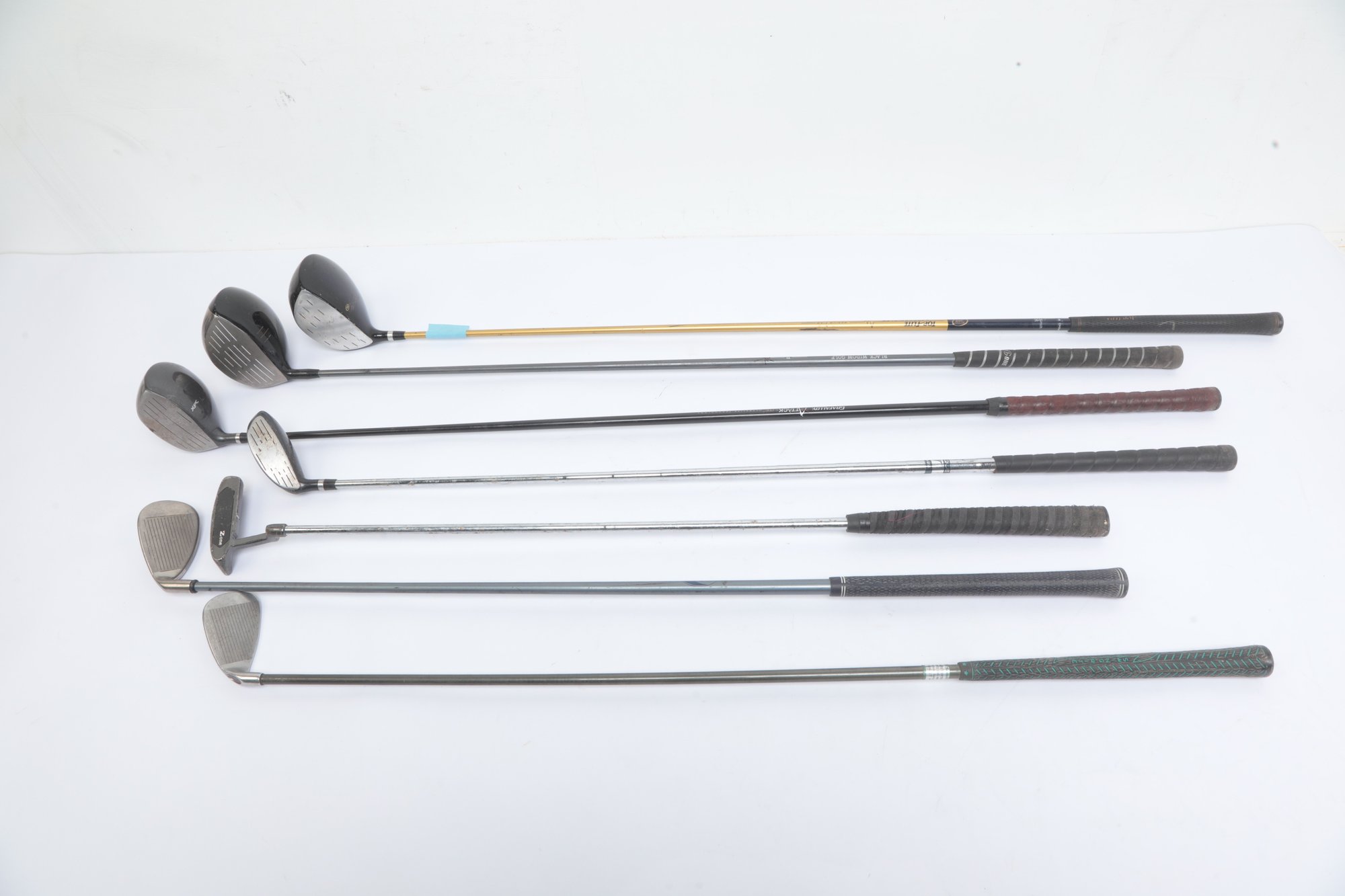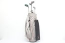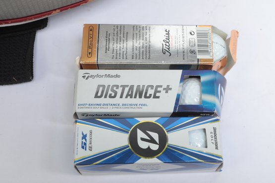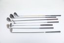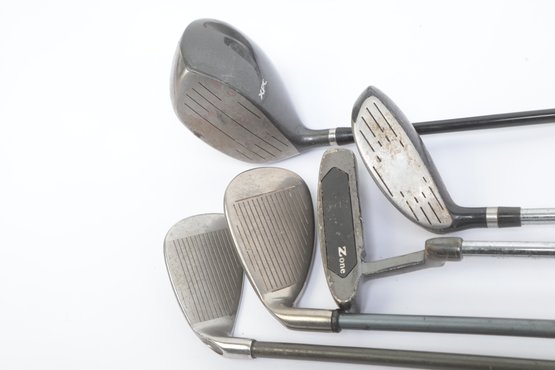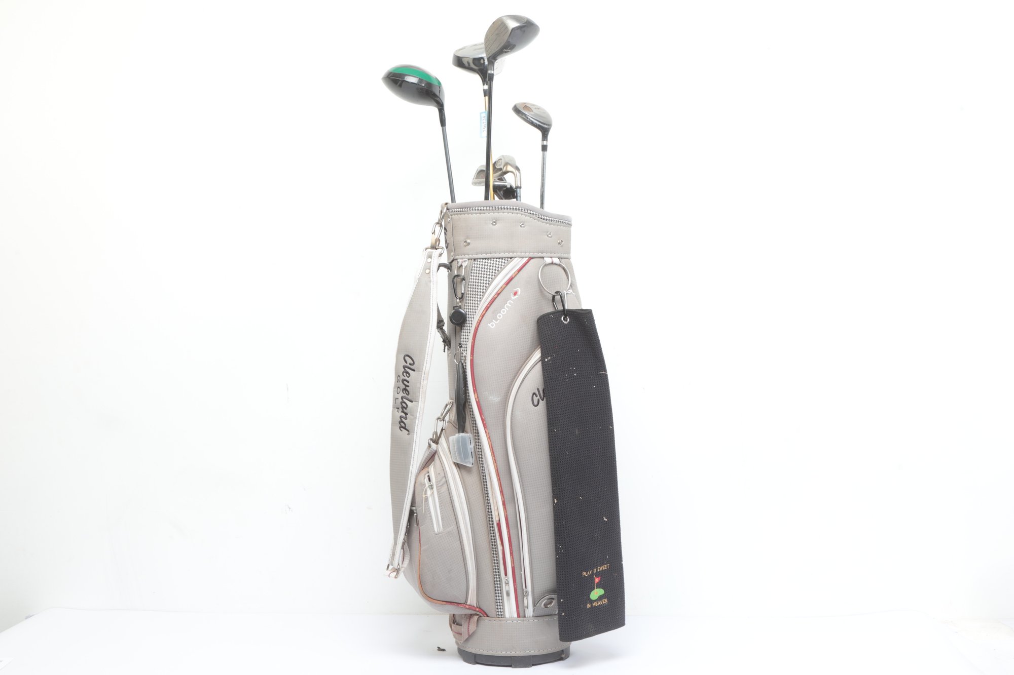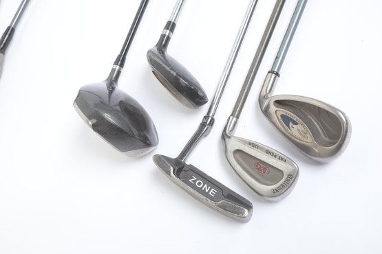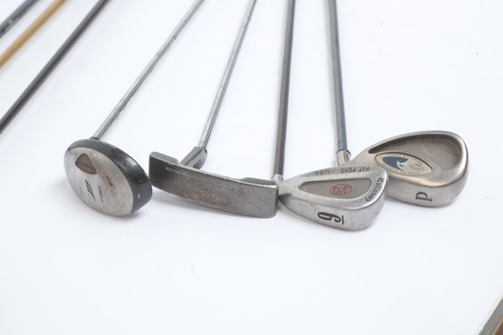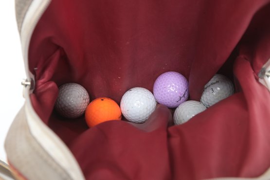 Golf Clubs W/ Balls, bag, towel and ball brush. See pictures carefully for details on contents included with lot and condition. Lot has been well loved.