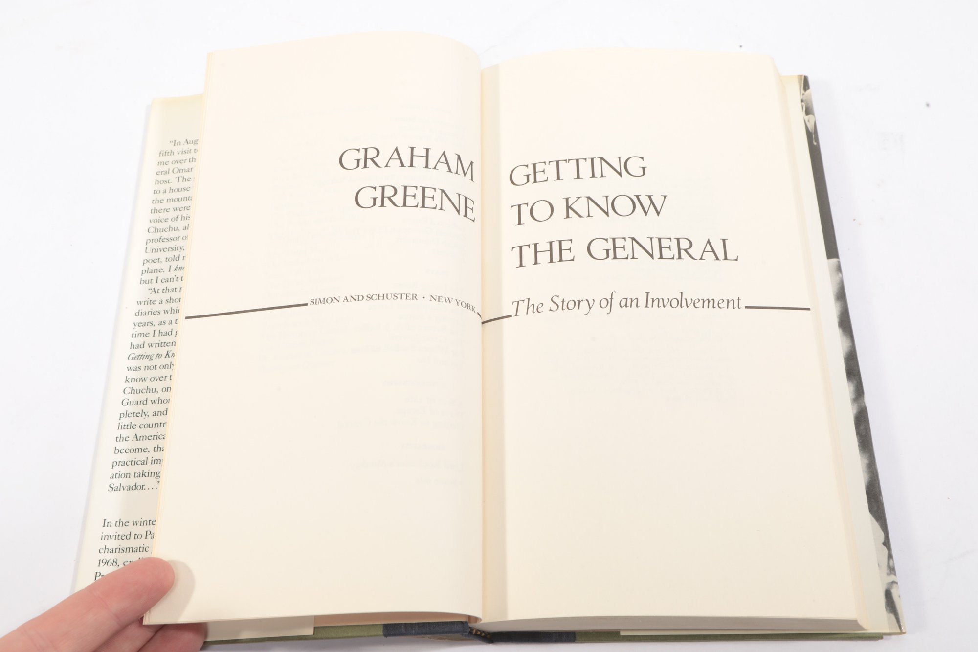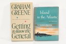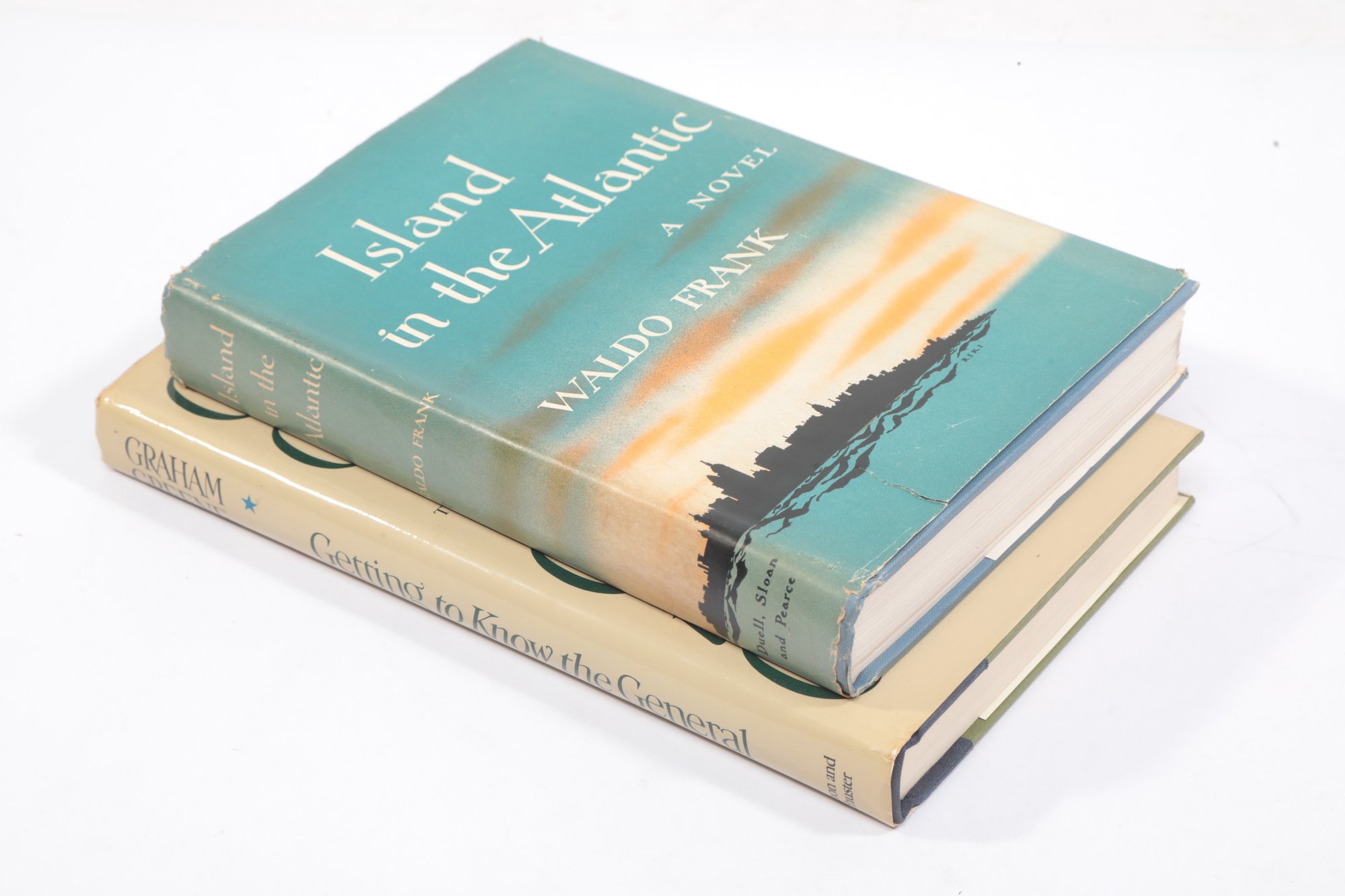 Greene (Graham). Getting to Know the General: The Story of an Involvement. New York: Simon and Schuster, 1984. First edition, dedicated to friends of Omar Torrijos in Nicaragua, El Salvador and Panama. WITH: Frank (Waldo). Island in the Atlantic: A Novel. Dust jacket with illustrated cityscape. Two volumes, first in dust jacket with minor wear, second with rubbed and chipped jacket, both internally clean.