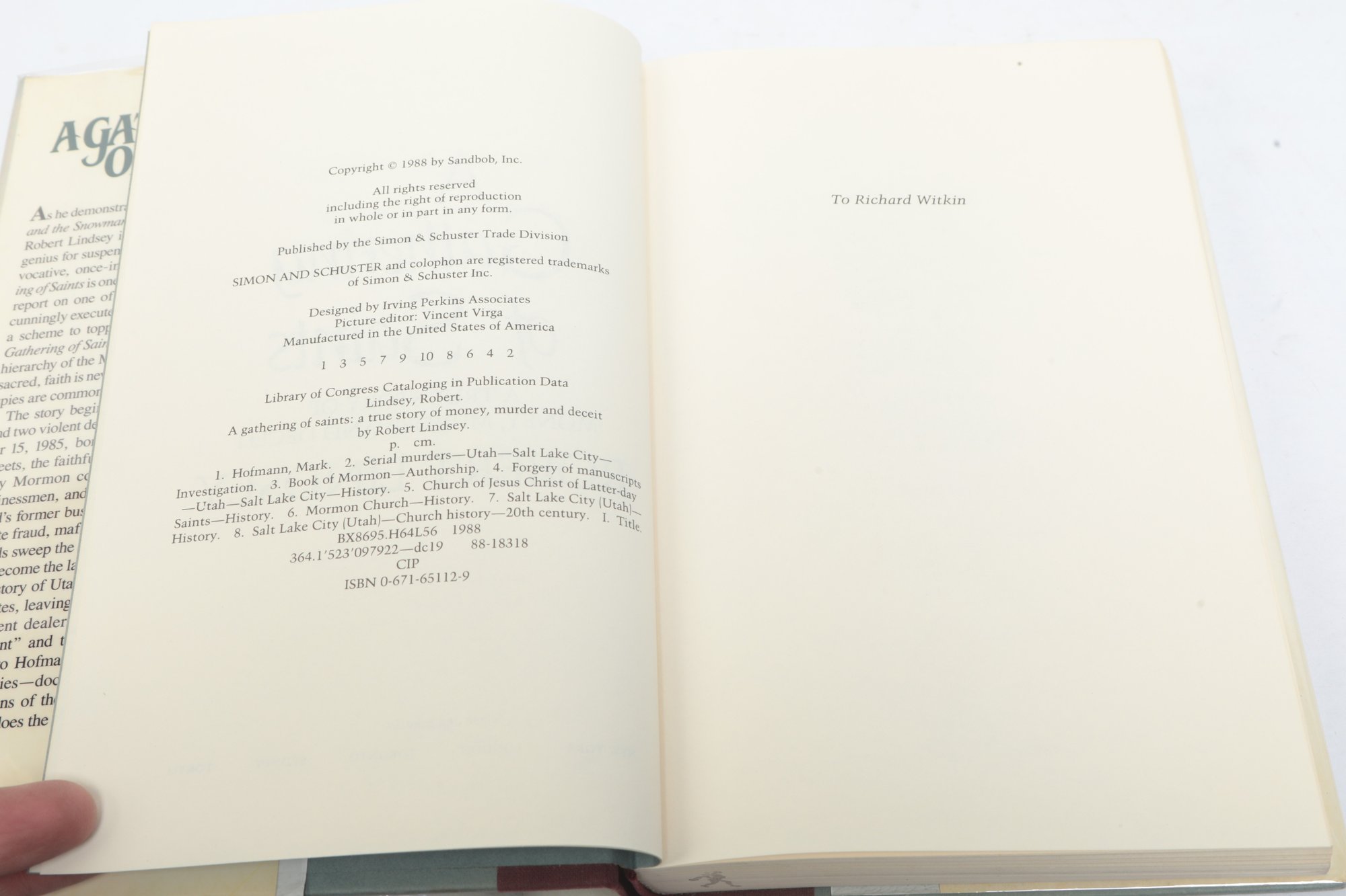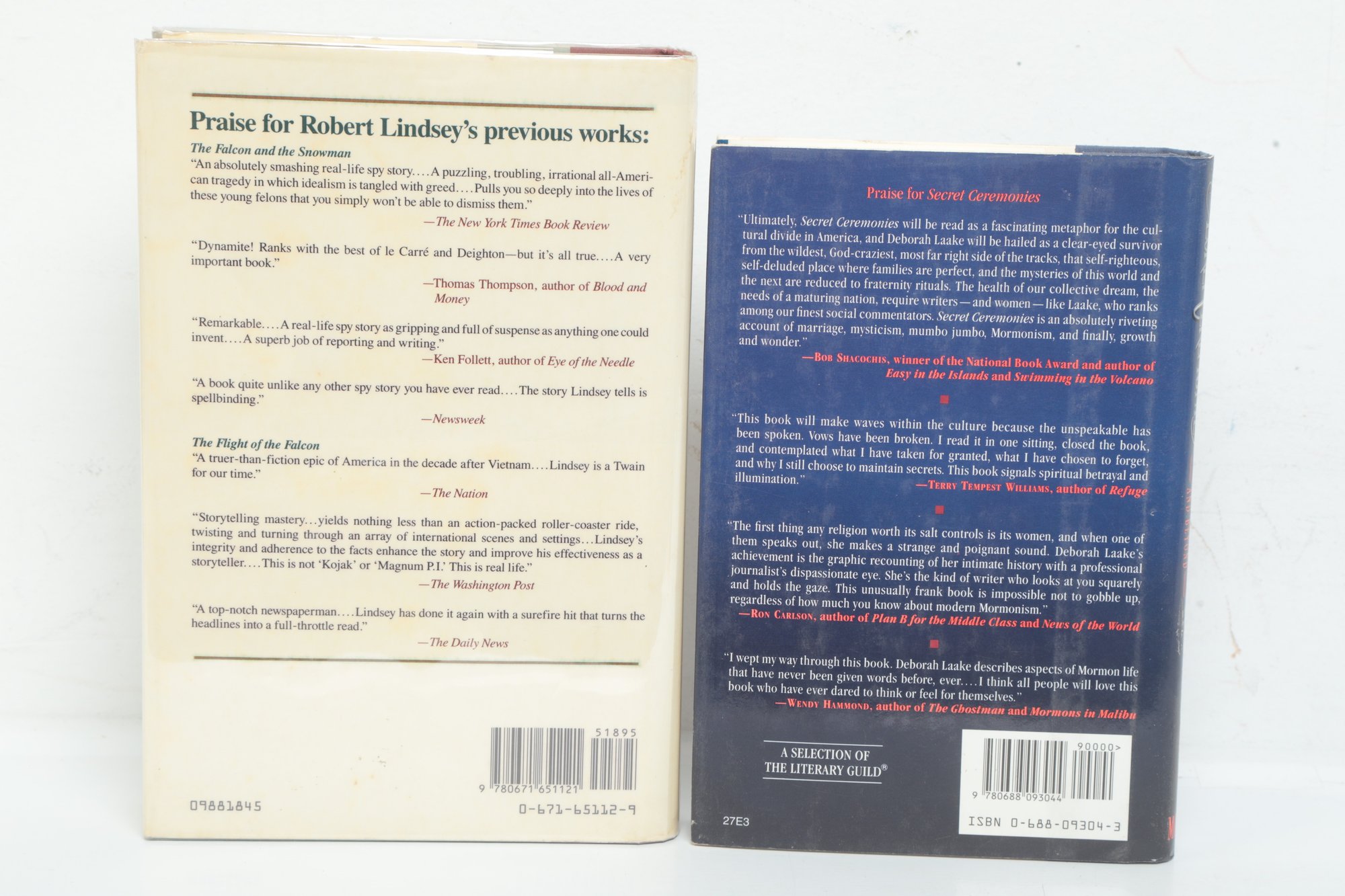 New York: Simon & Schuster and William Morrow & Co. 1988; 1993. Hardcovers in dust jackets. Lot includes A Gathering of Saints by Robert Lindsey and Secret Ceremonies by Deborah Laake.