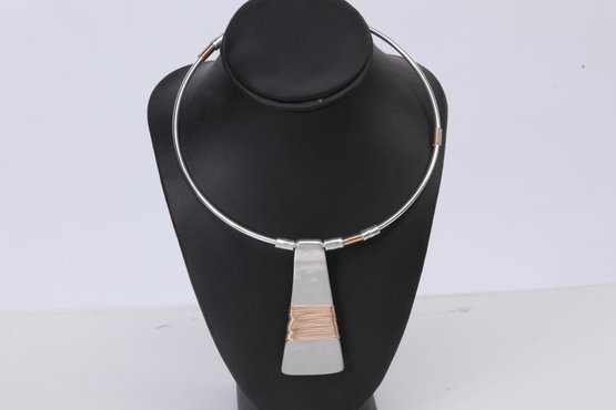 Silver and wrapped brass with pendant, diameter 5 1/2", hangs to 7 1/2"View all photos for condition before bidding.