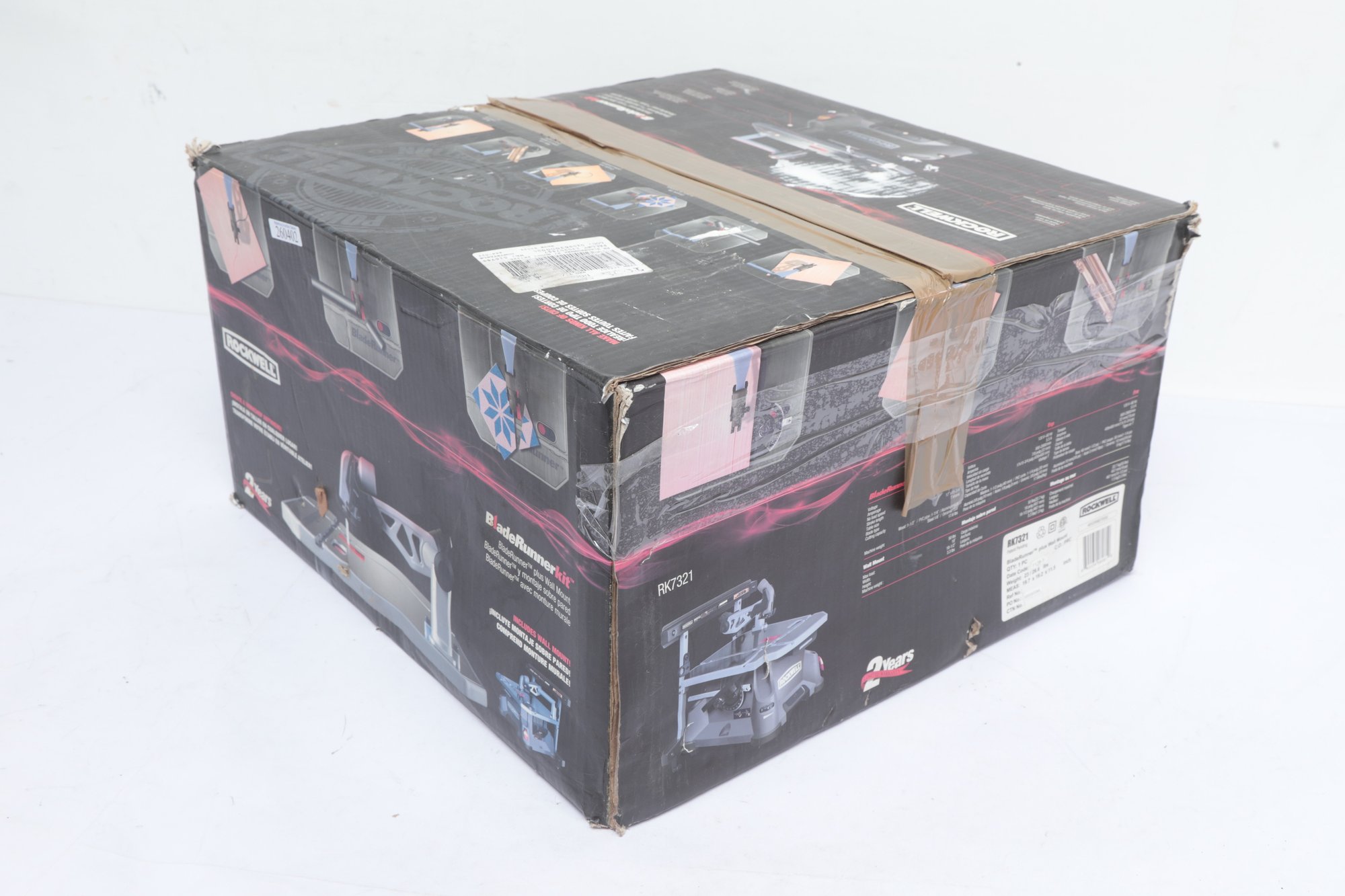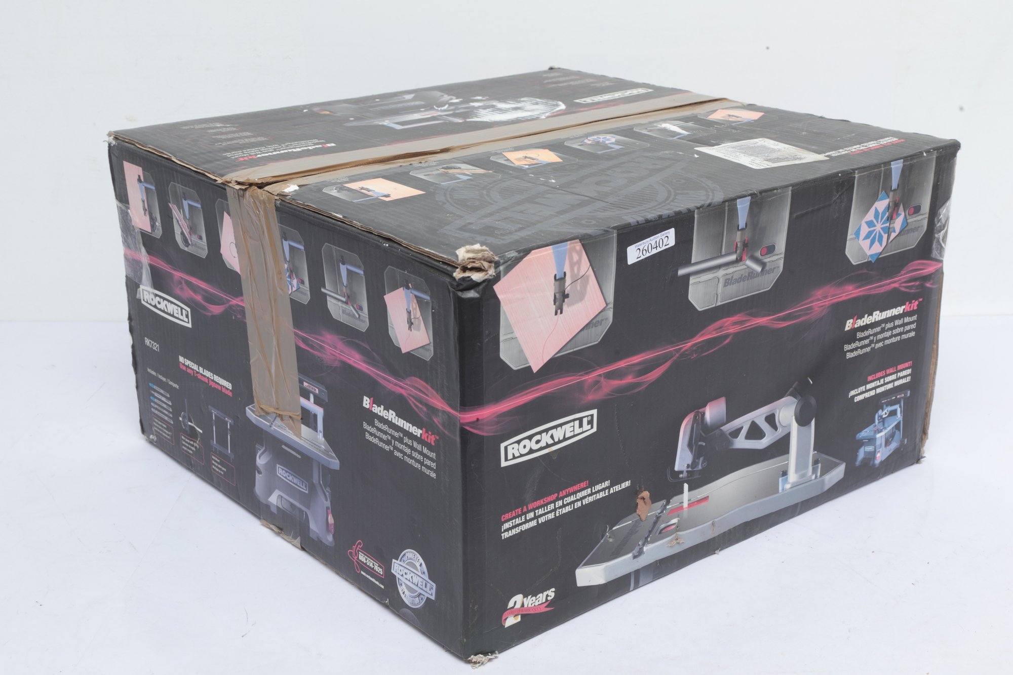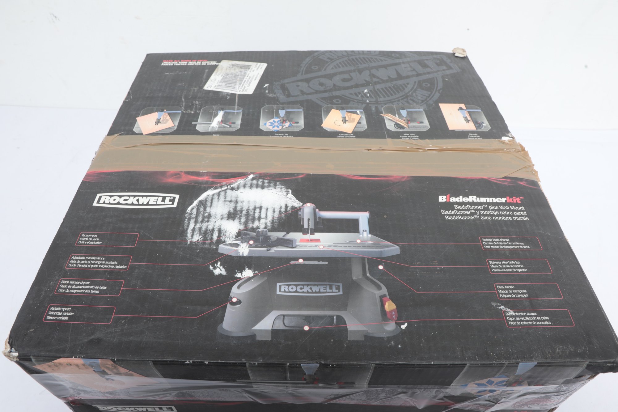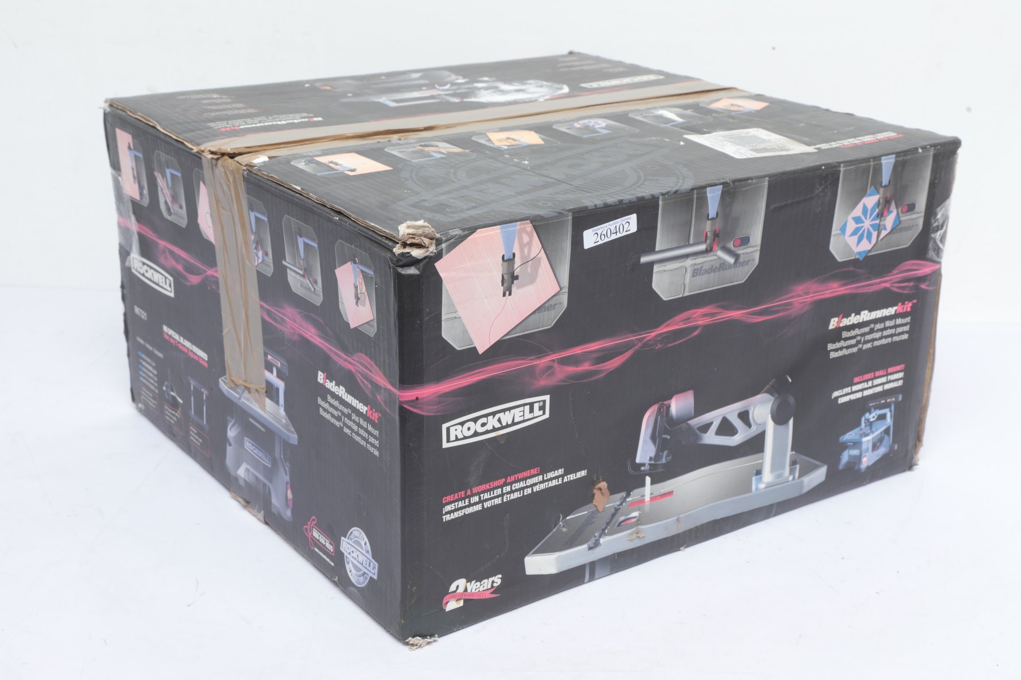 Rockwell RK7321 BladeRunner Kit Plus Wall Mount Portable Tabletop Saw used in original box. Saw is untested and has light wear consistent with use. See pictures carefully for details on size and condition,