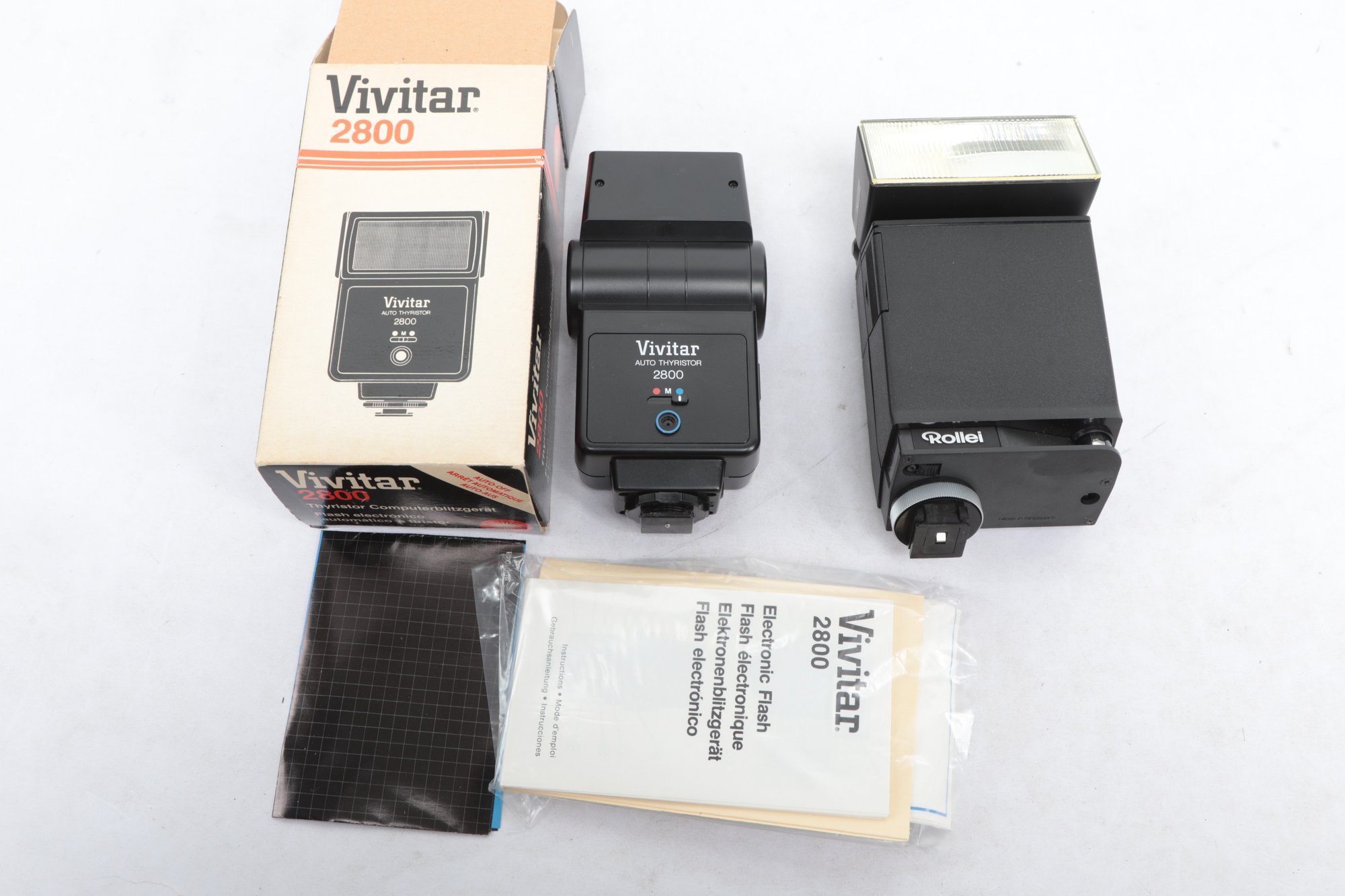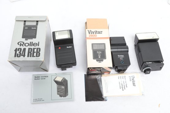 Rollei Beta 5 And 134 REB Flash W/ Vivitar 2800 Flash. All are untested, sold as is. See pictures carefully for details on contents included with lot and condition.