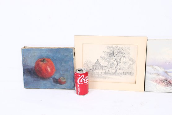 Group Of 4 Small Paintings Some Signed By Artists - See Images