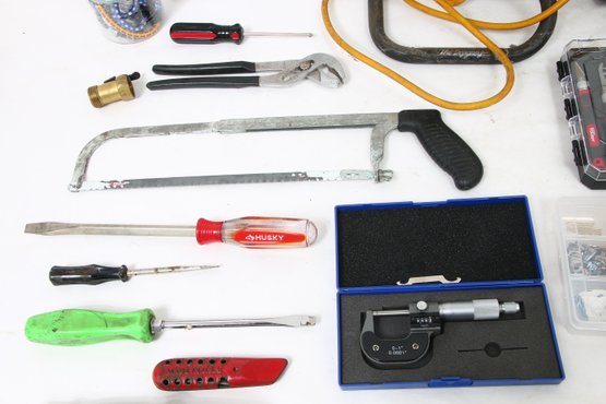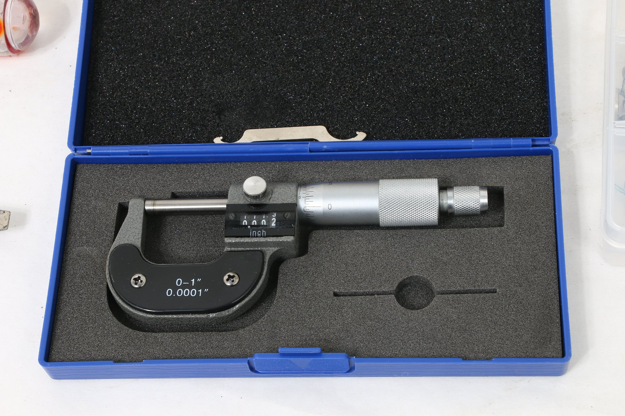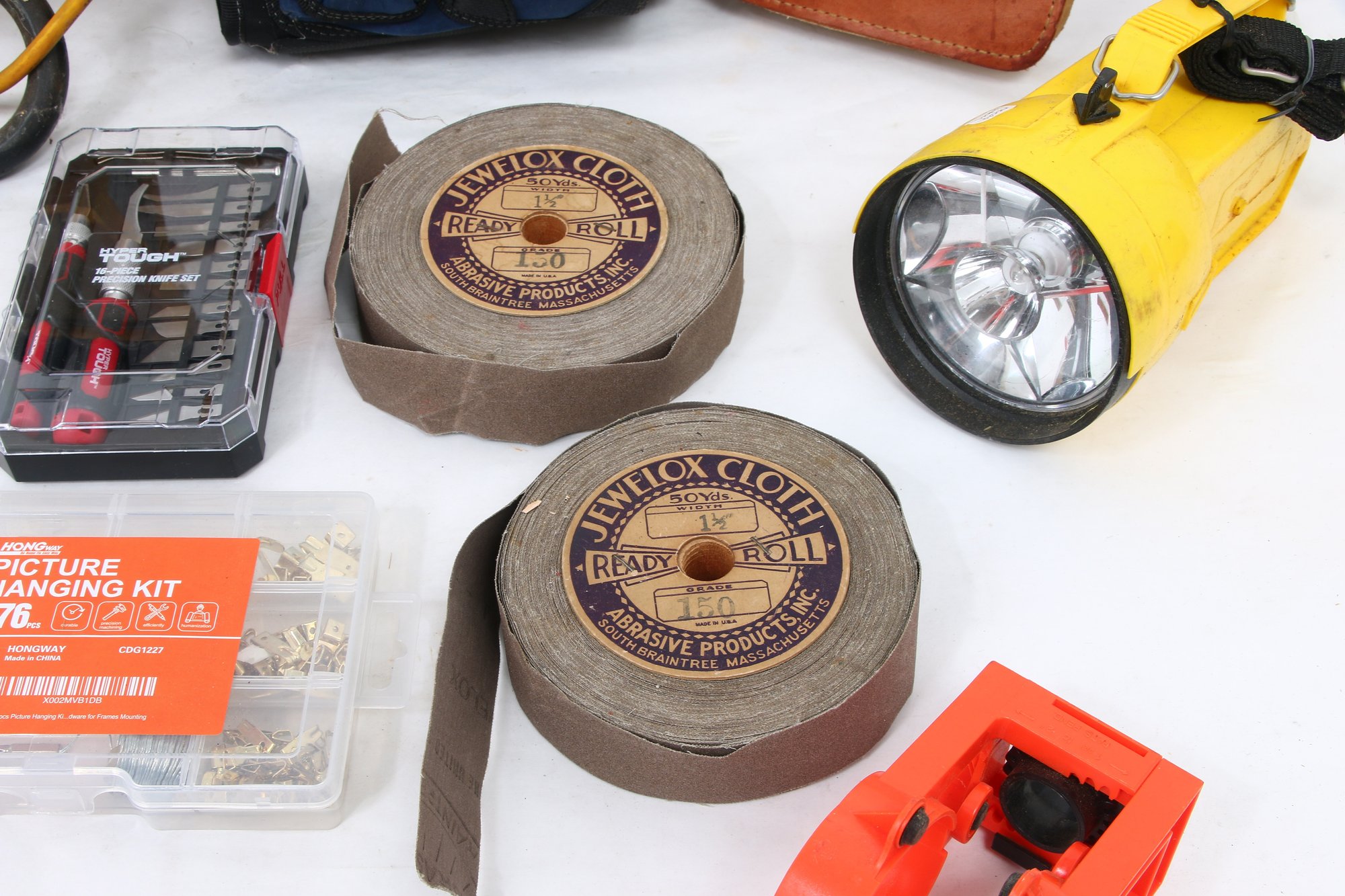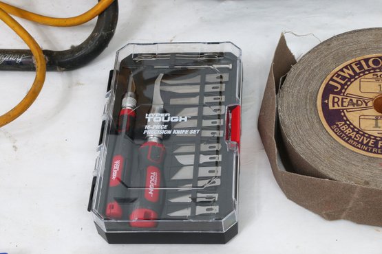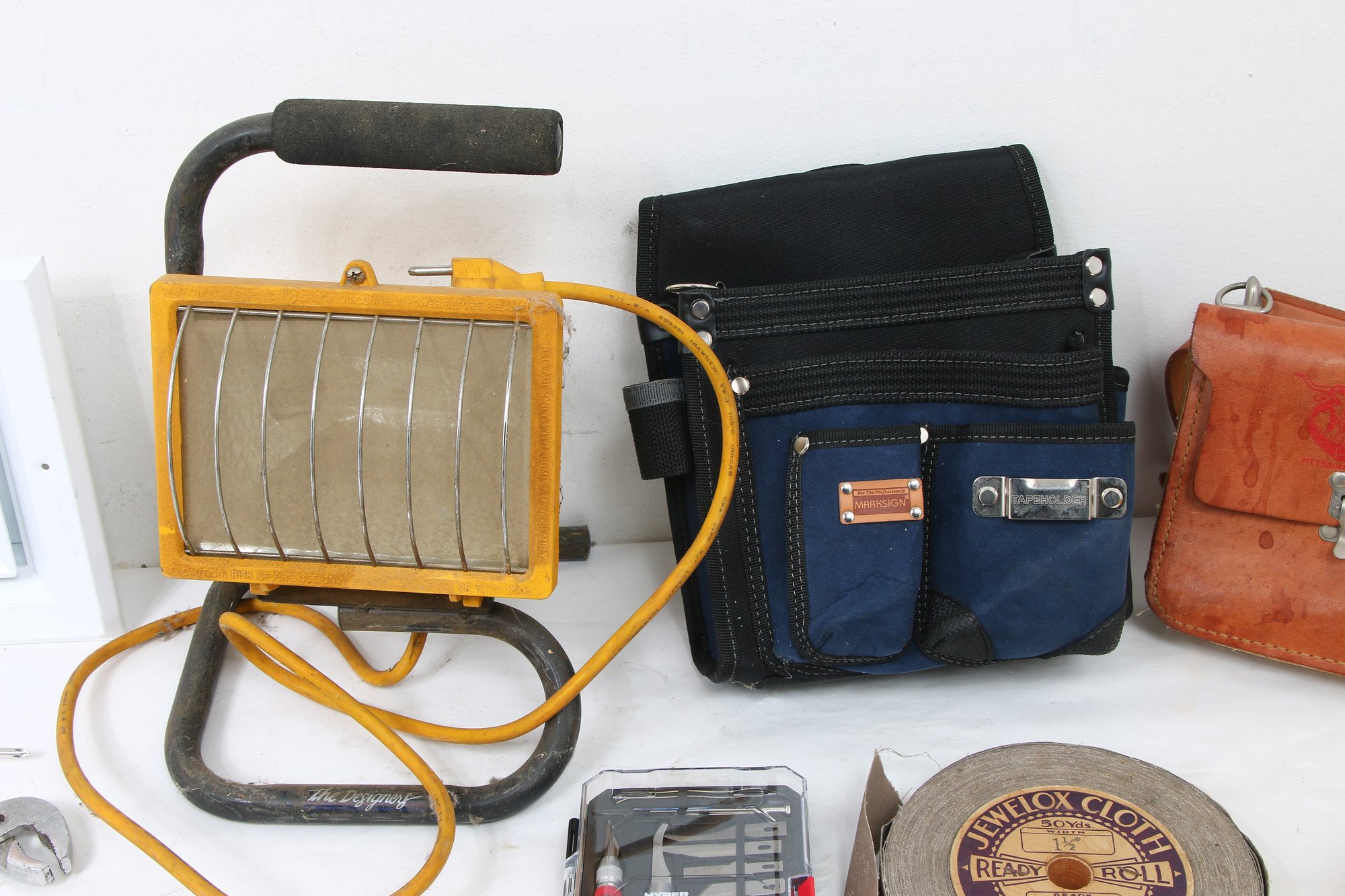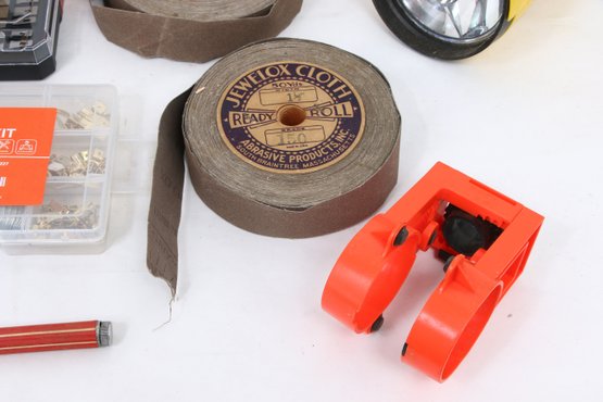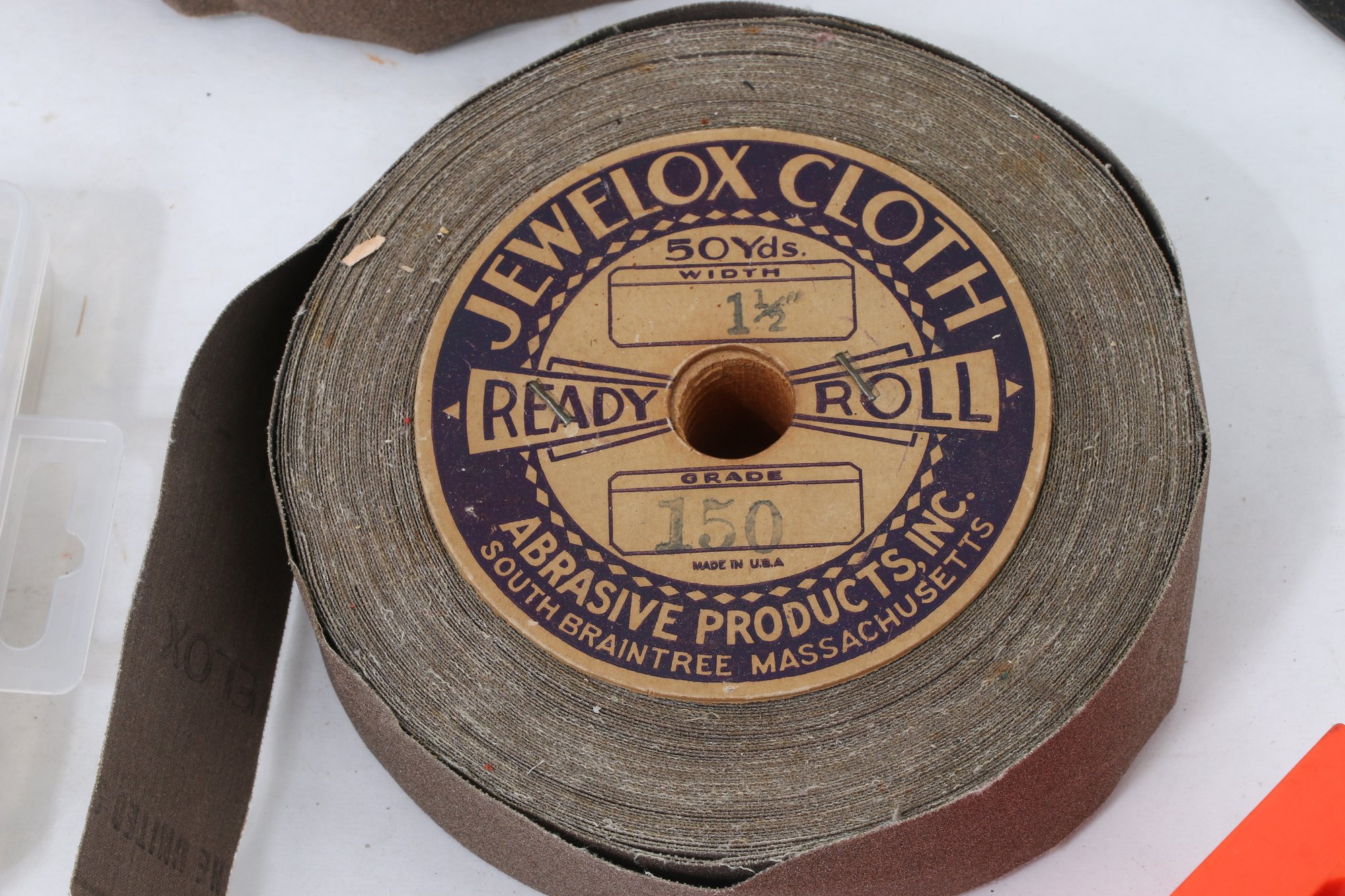 Group Of Various Tools Including Micrometer, Jewelox Sanding Cloth Rolls, Tool Belts & More