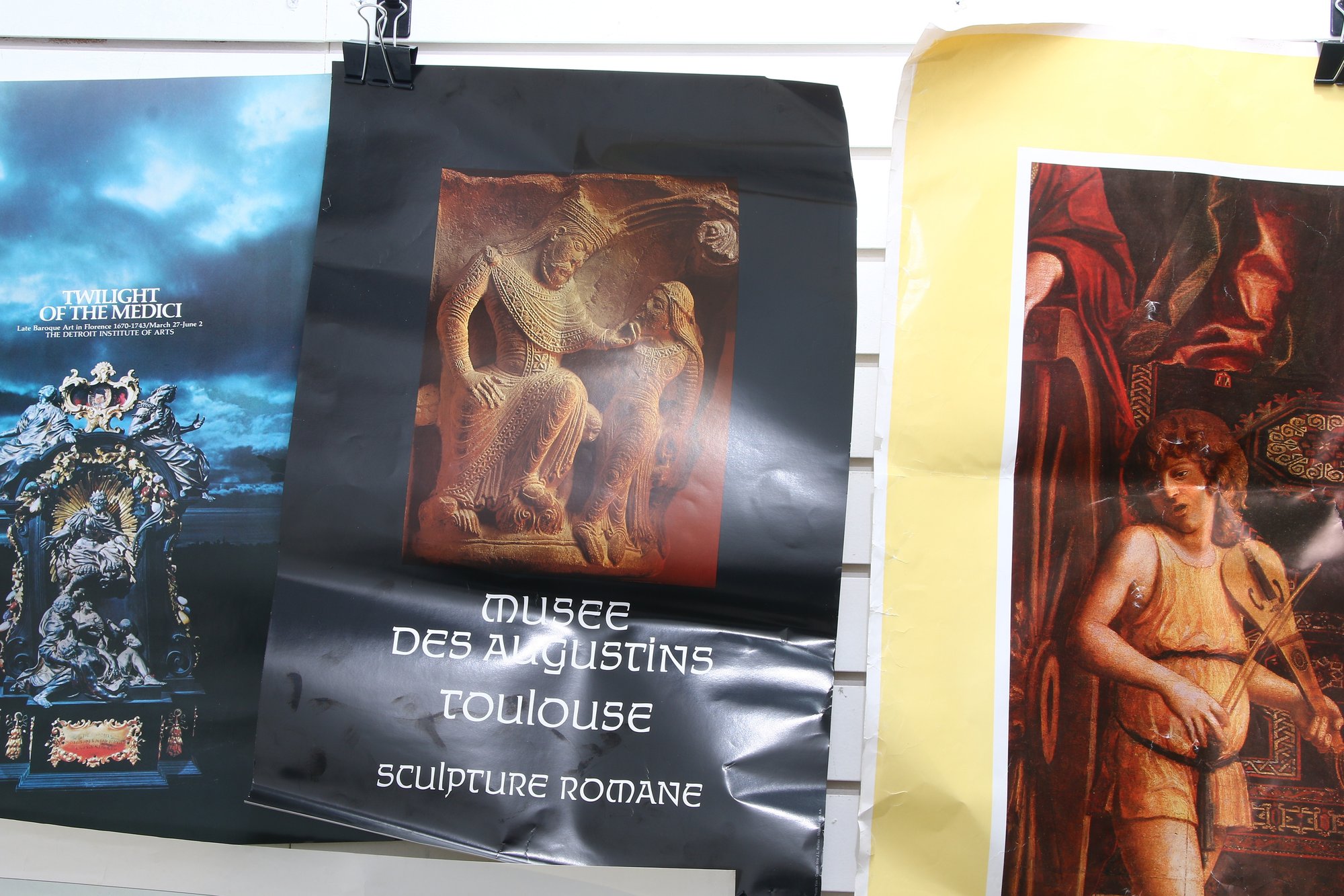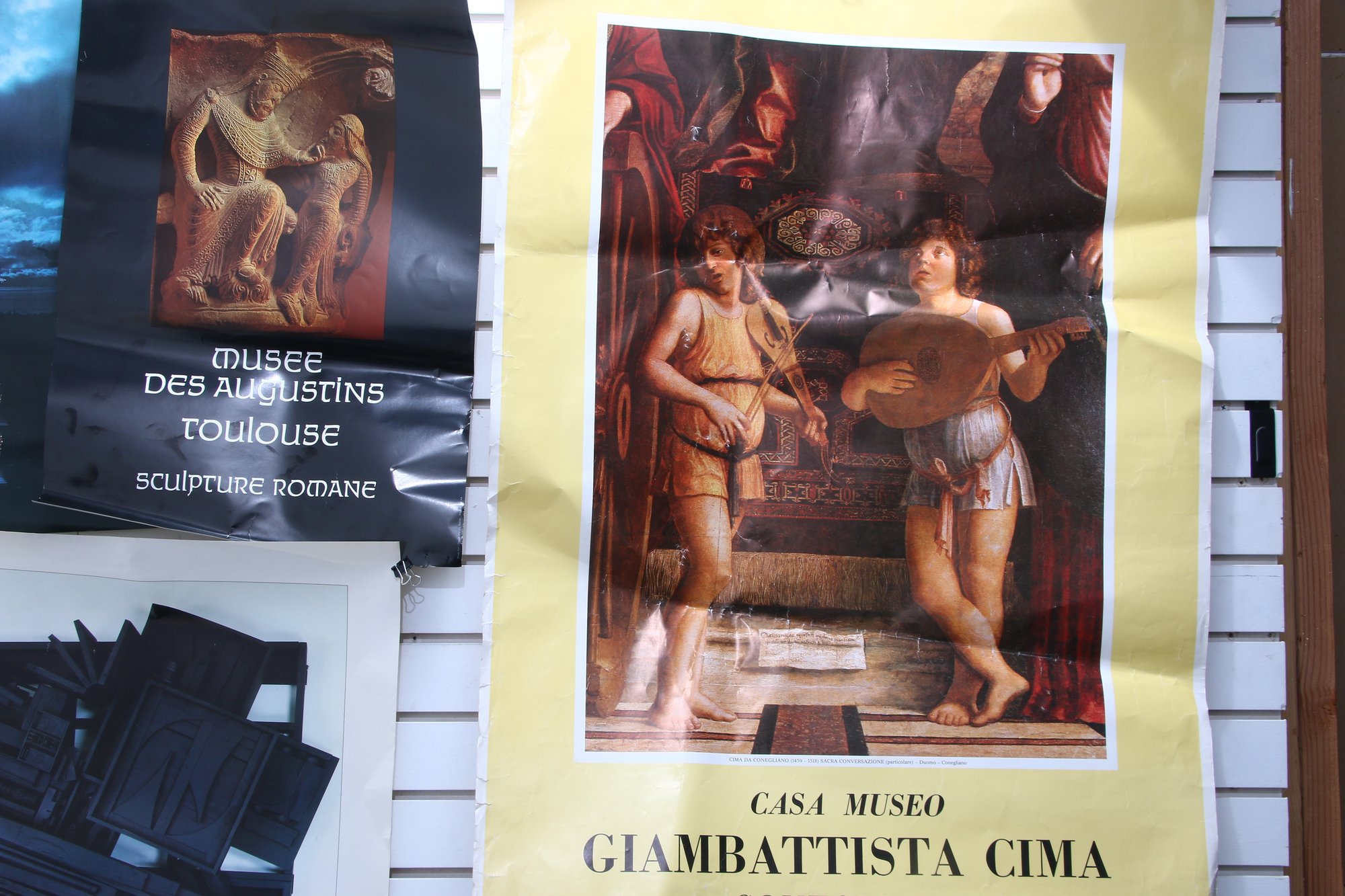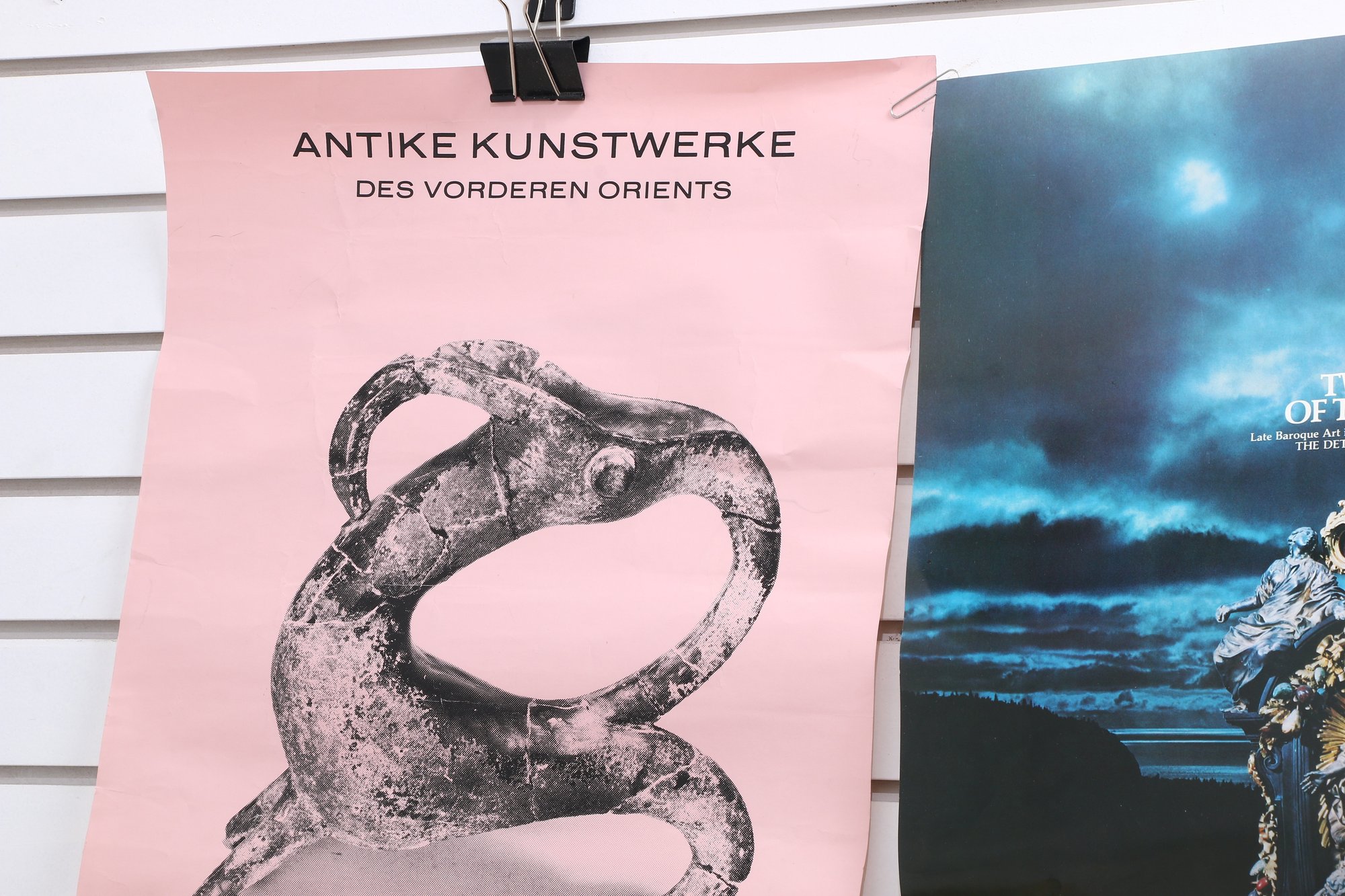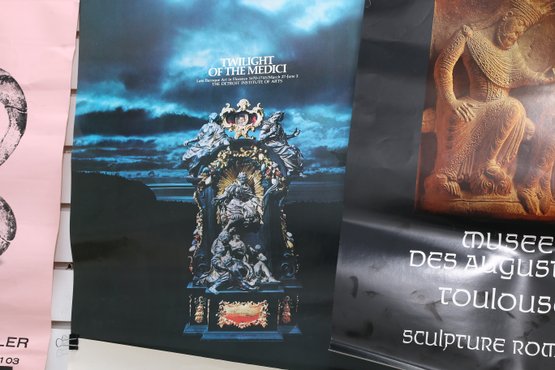 as seen in the images. a few rips are visible. some edge wear is present and a few posters have a pin holes.