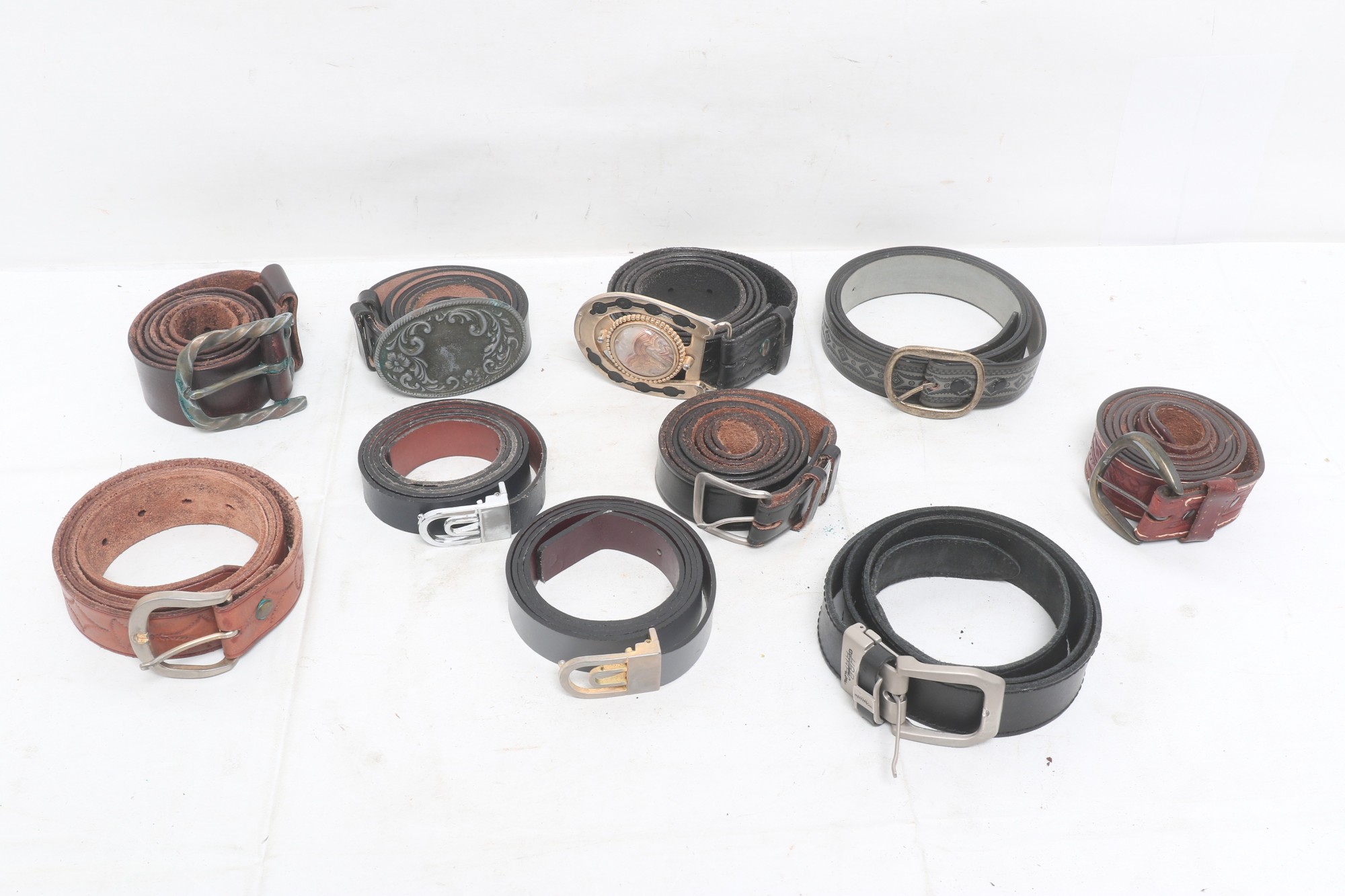 Group Of Vintage Leather Belts With Belt Buckles