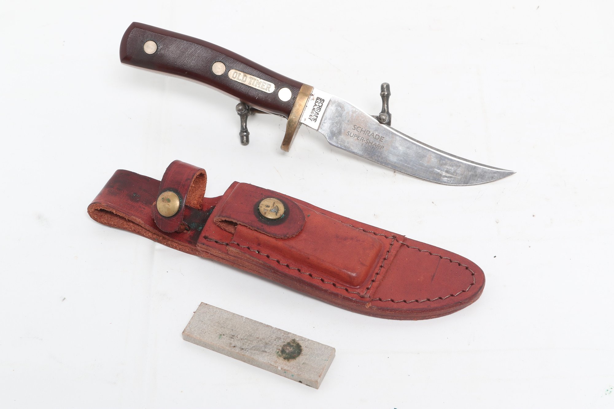 Schrade USA "old Timer 165" Woodsman Knife With Leather Sheath And Honing Stone