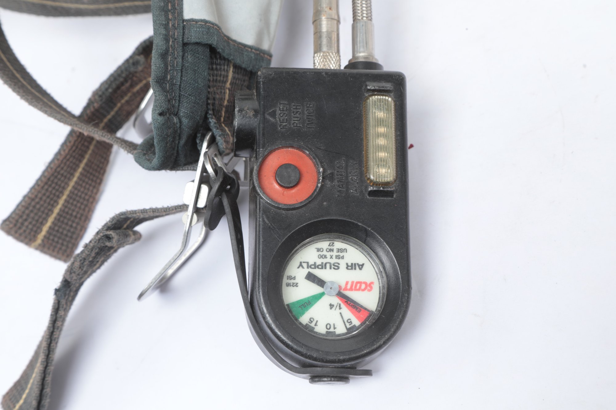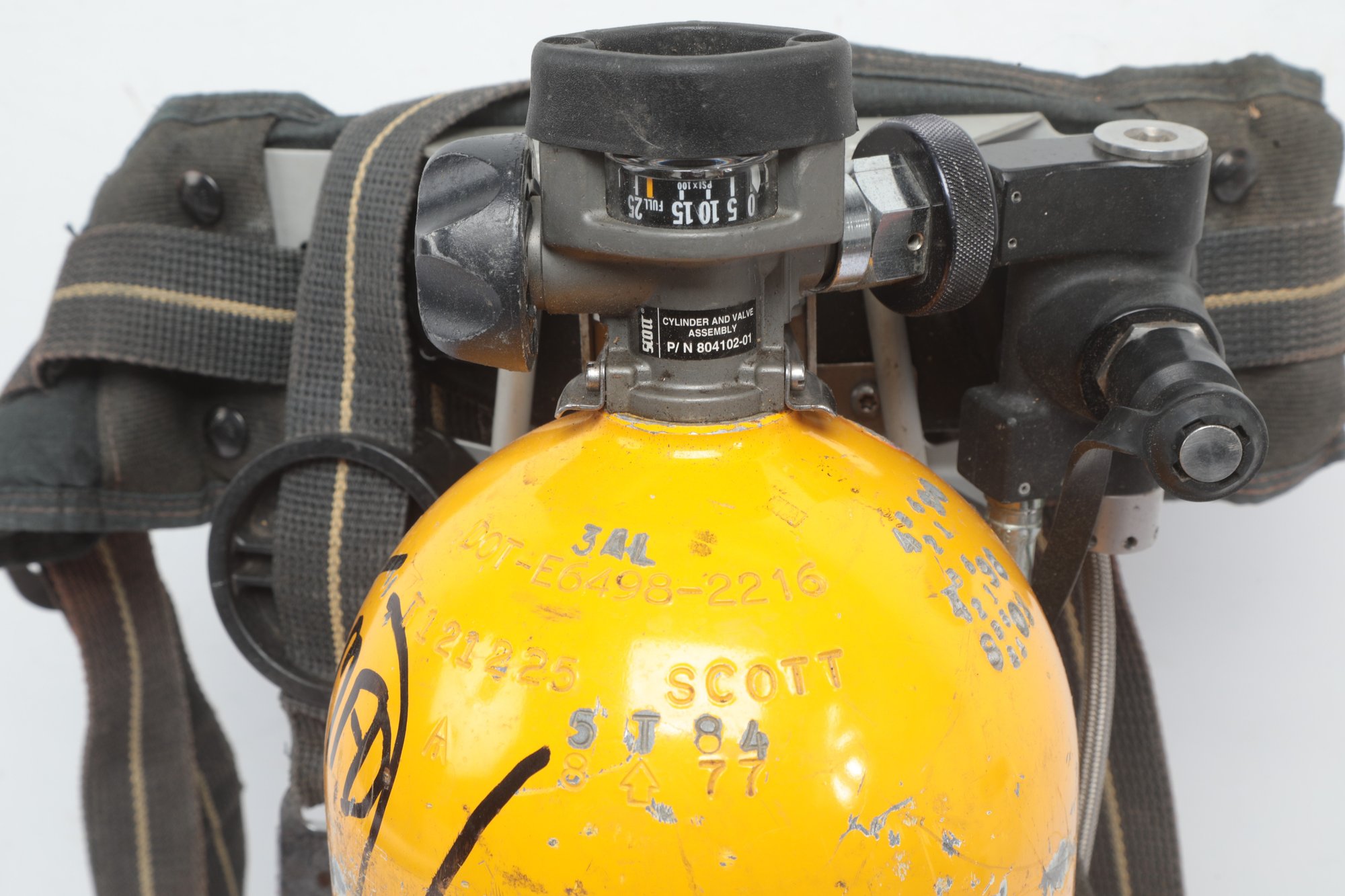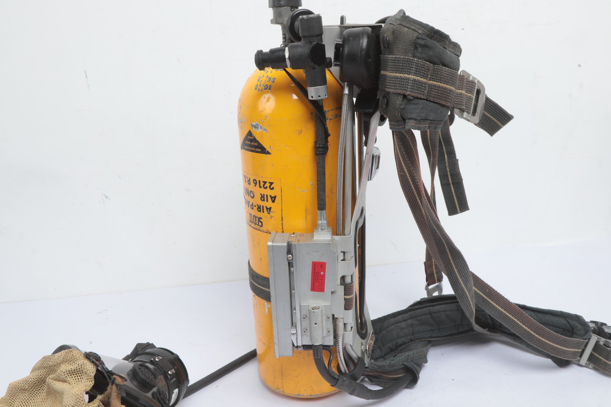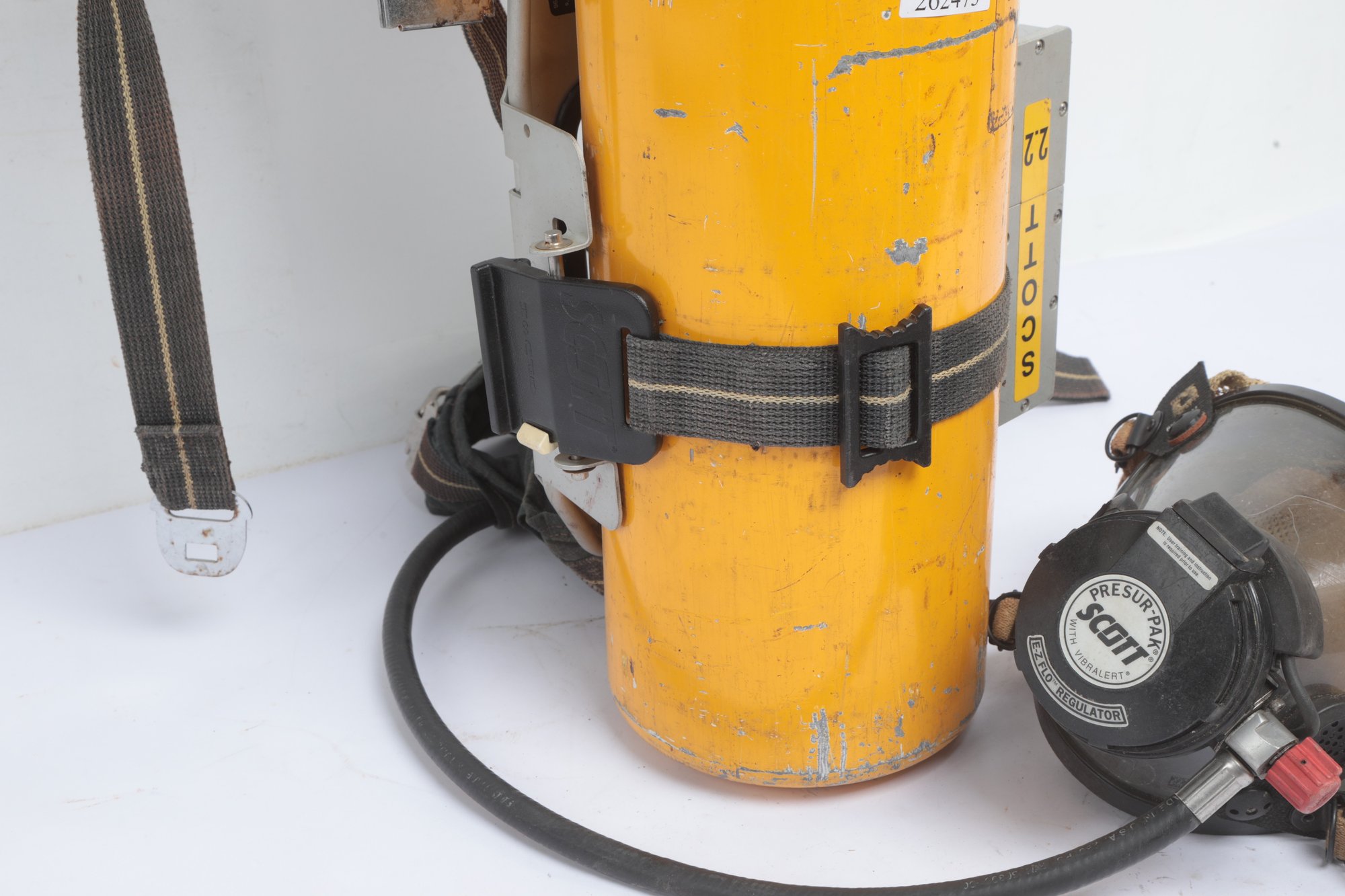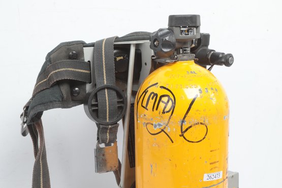 SCOTT SAFETY TANK 2216 PSI UNLOO2 LENGTH 1FT.9" HARNESS And Mask. Well used. Tank and Mask are untested Sold as is. See pictures carefully for details.