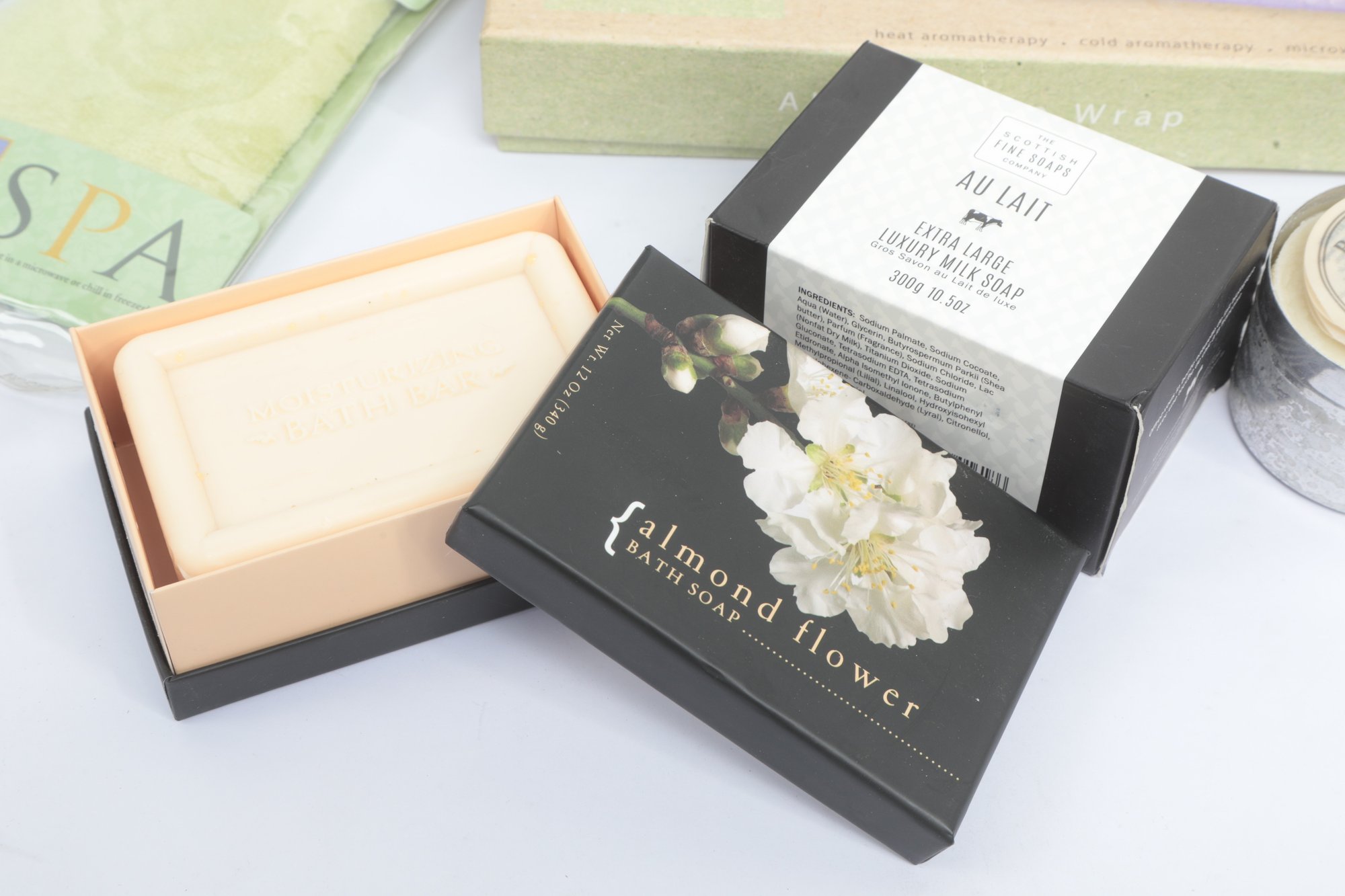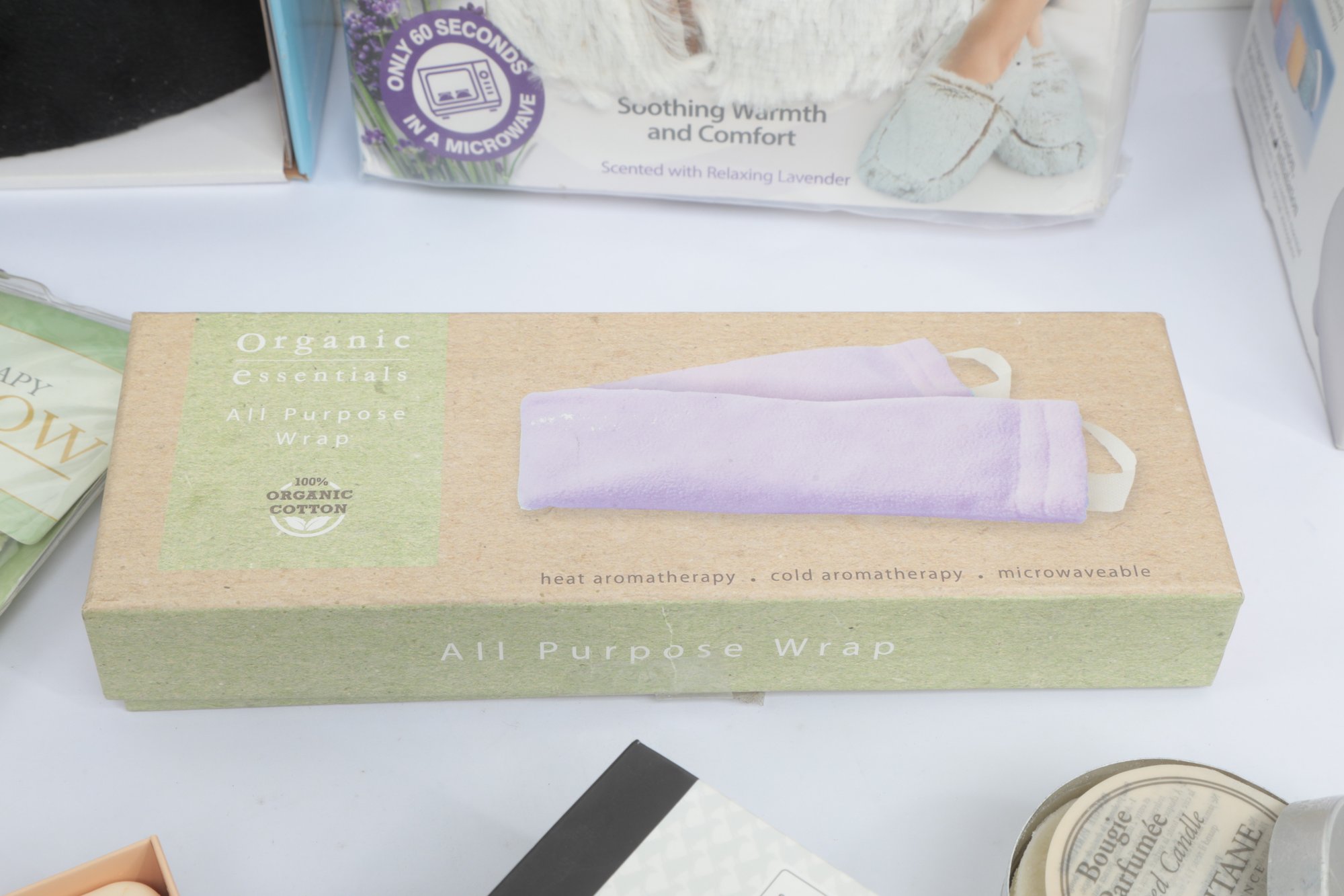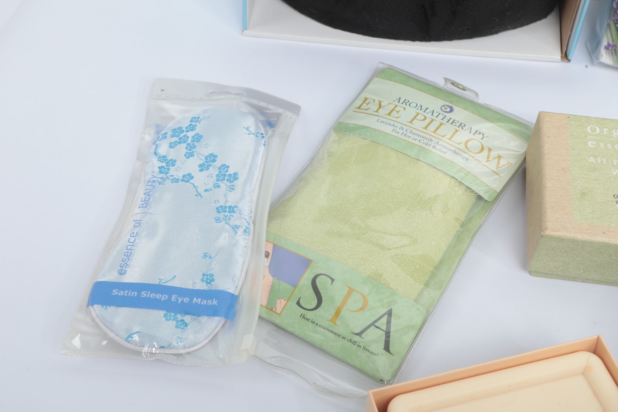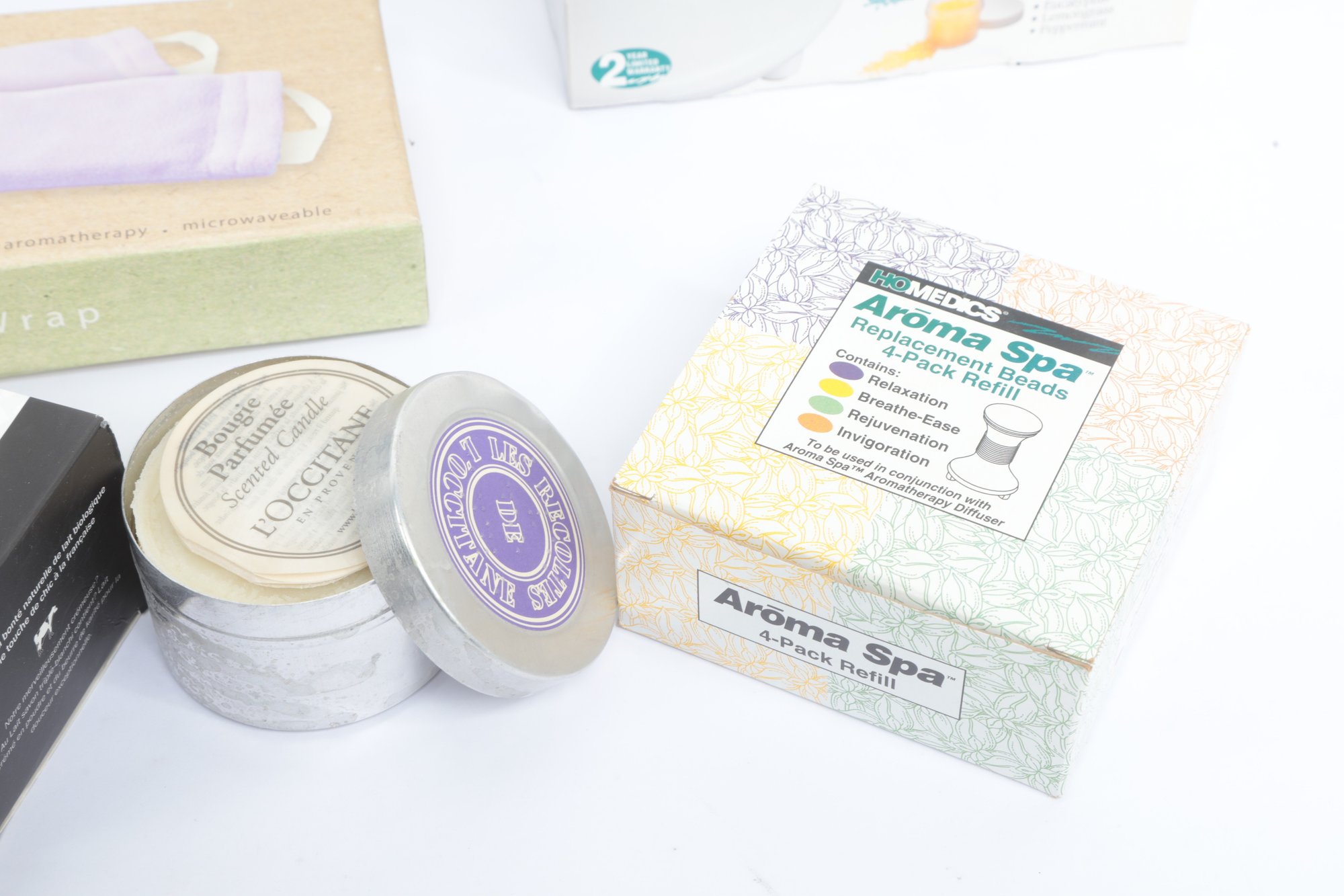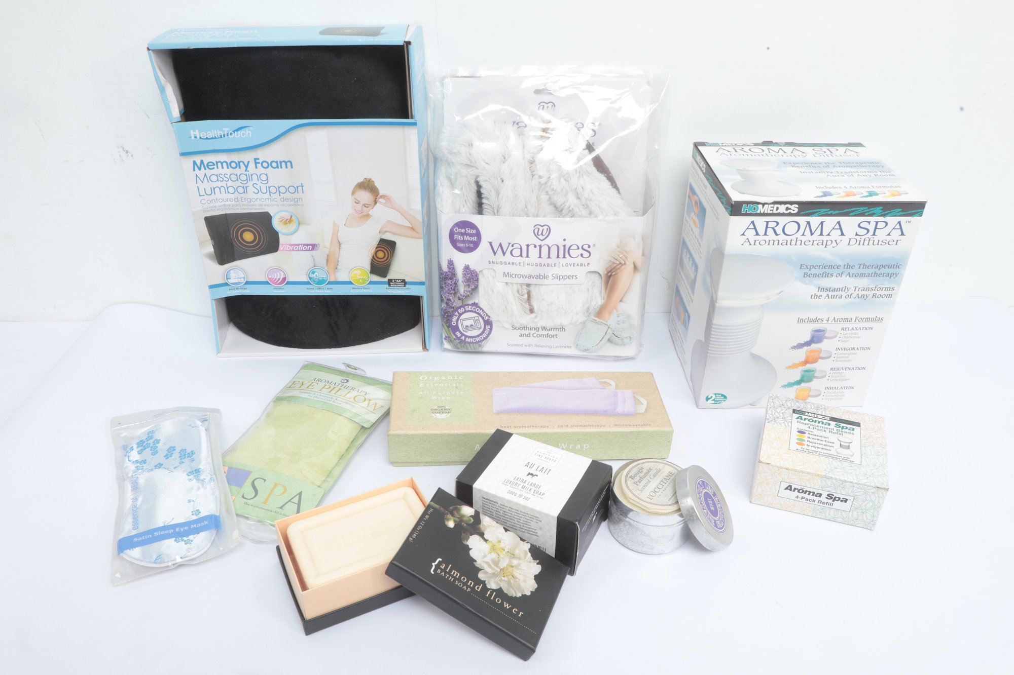 Self Care Lot W/ Candle, Massager, Eye Masks, Etc. See pictures carefully for details on contents included with lot and condition. All items are unused.