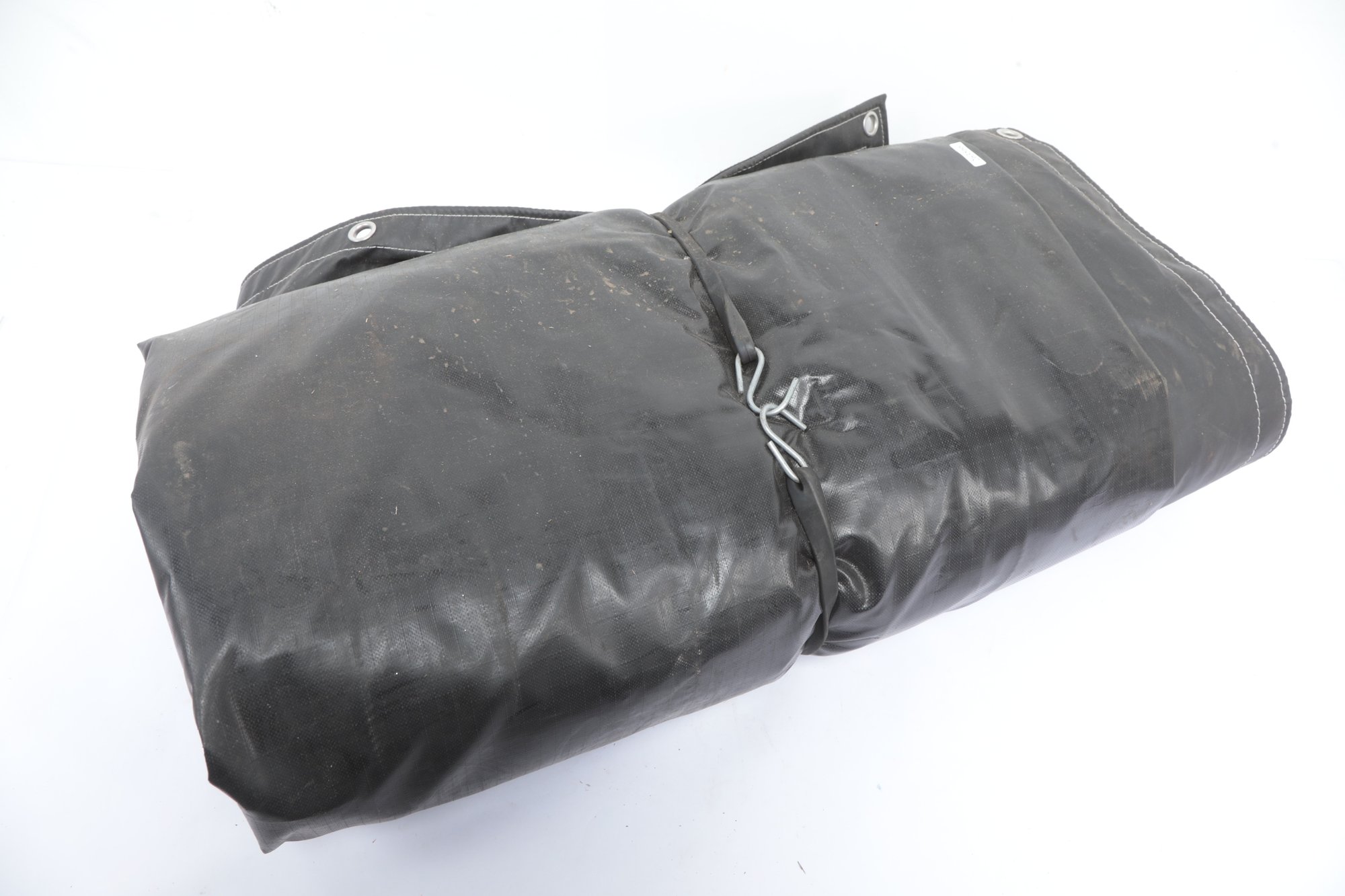 Semi Trailer Cargo Tarp, size unknown. Heavy duty tarp, may need light cleaning. See pictures carefully.