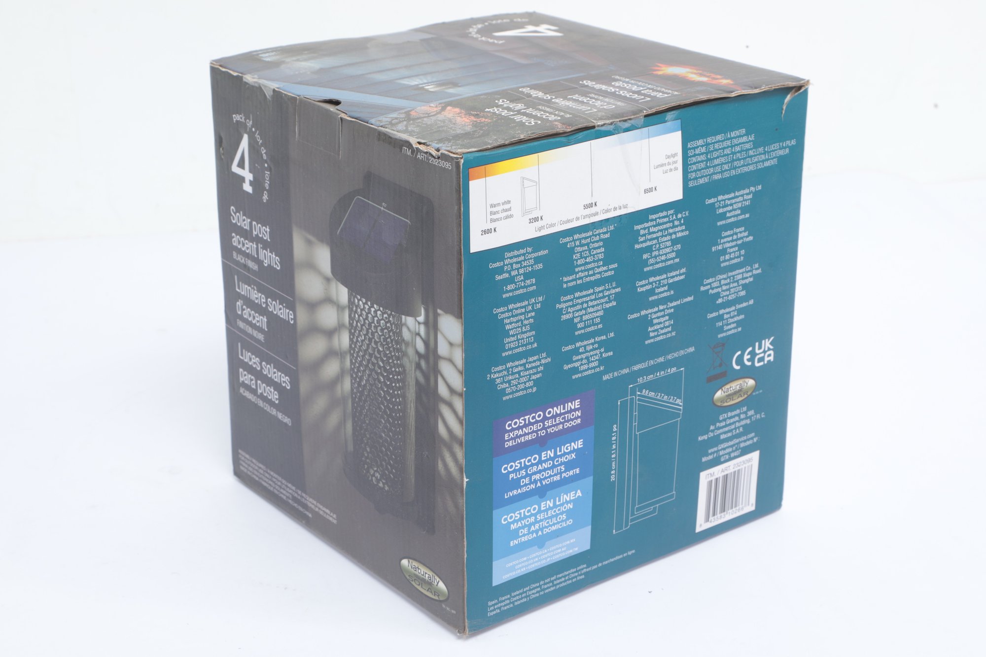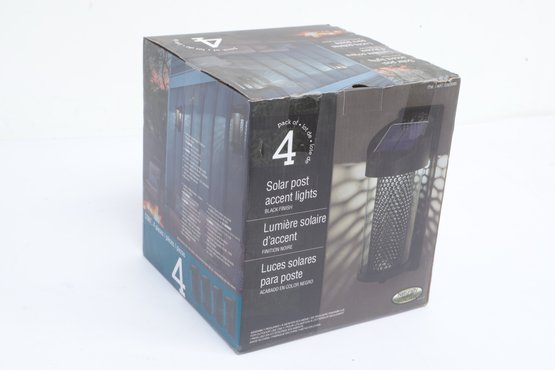Set Of 4 Black Solar Post Accent Lights sealed in original box. See pictures carefully for details on size of lights.