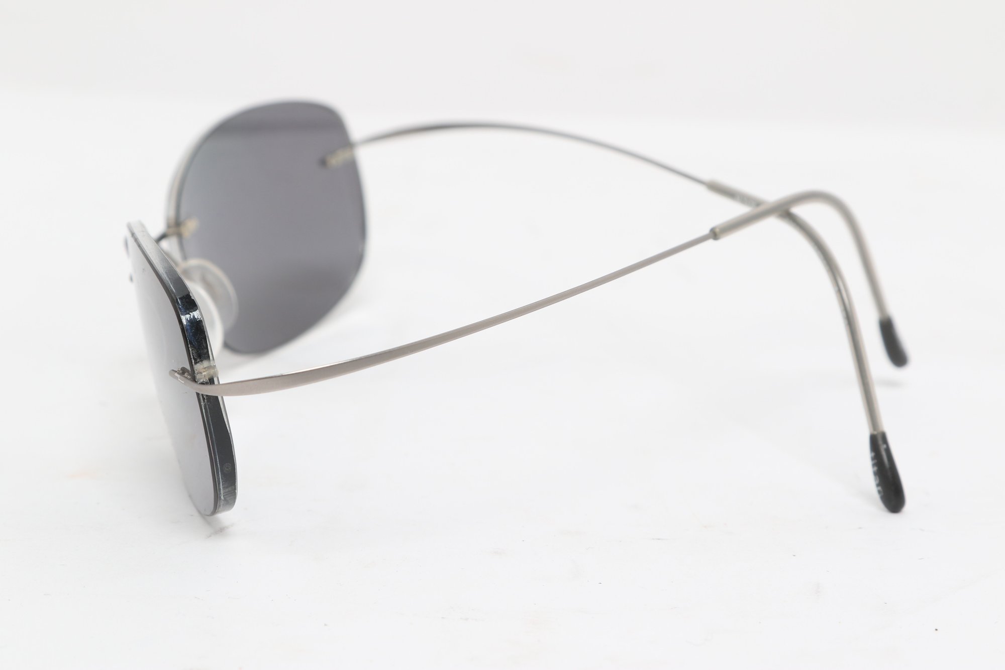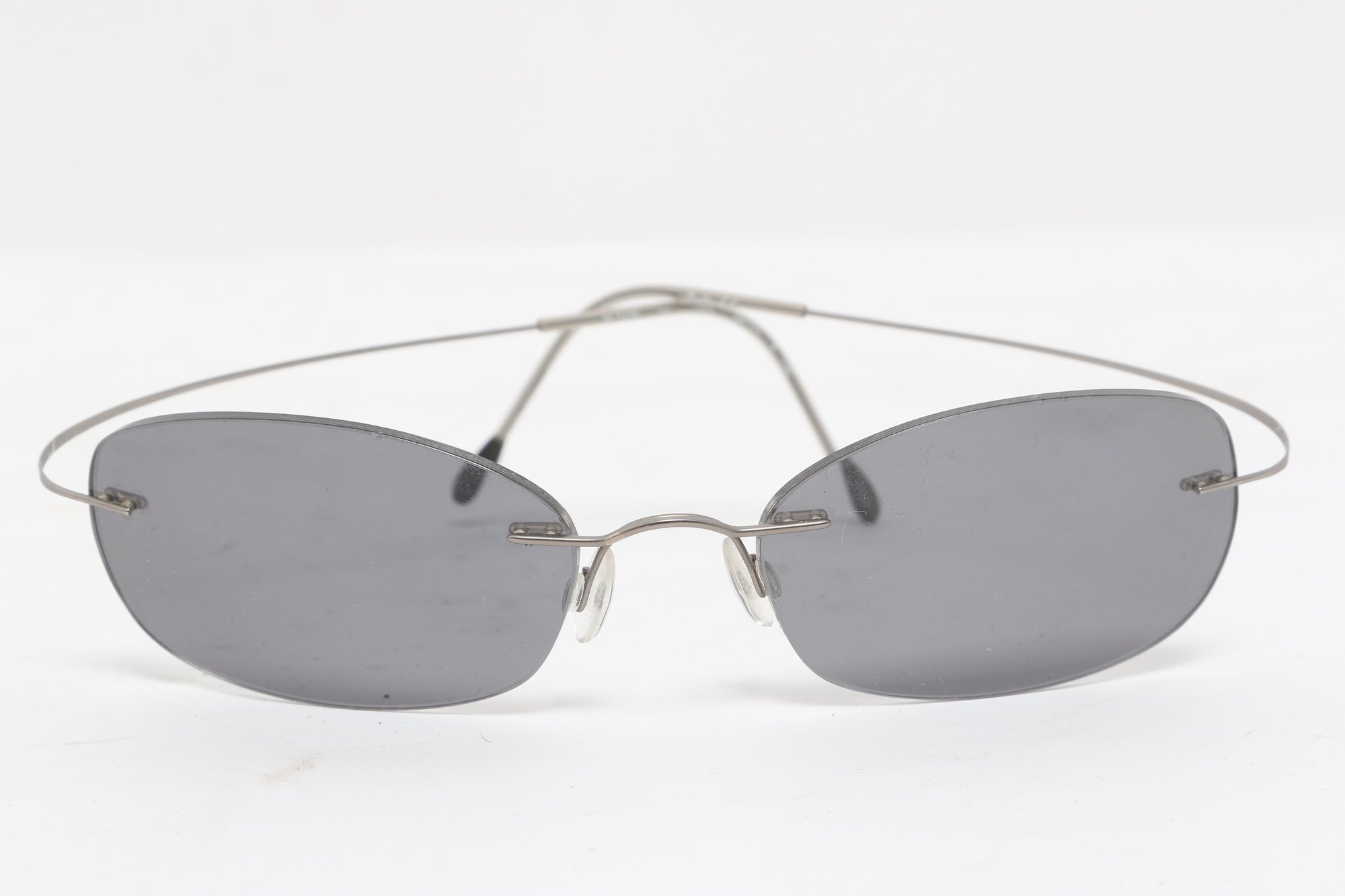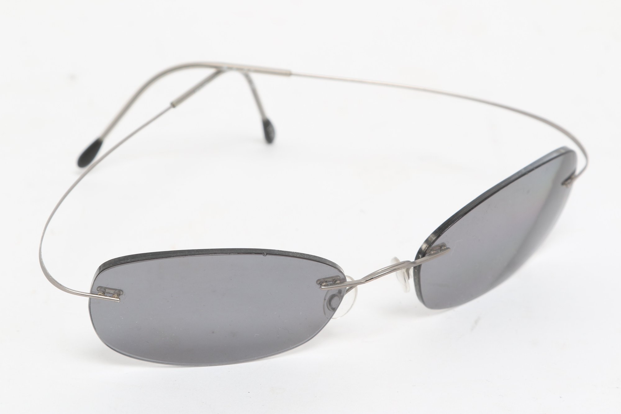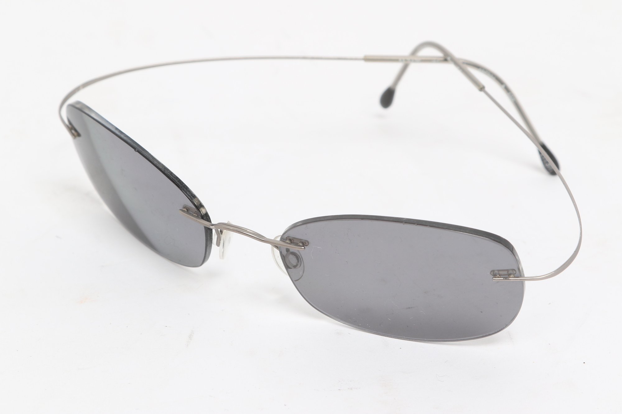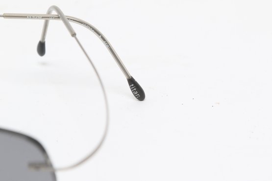 Silhouette rimless eyeglasses featuring lightweight titanium frames and minimalist design. Currently fitted with prescription lenses (frames only value); lenses should be replaced. Pre-owned with light wear.