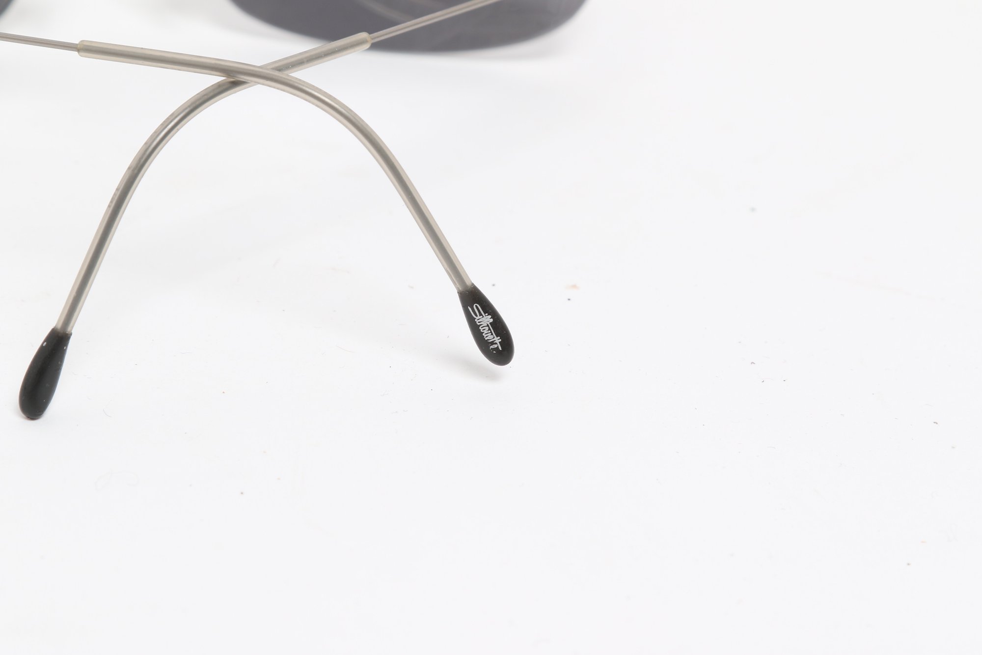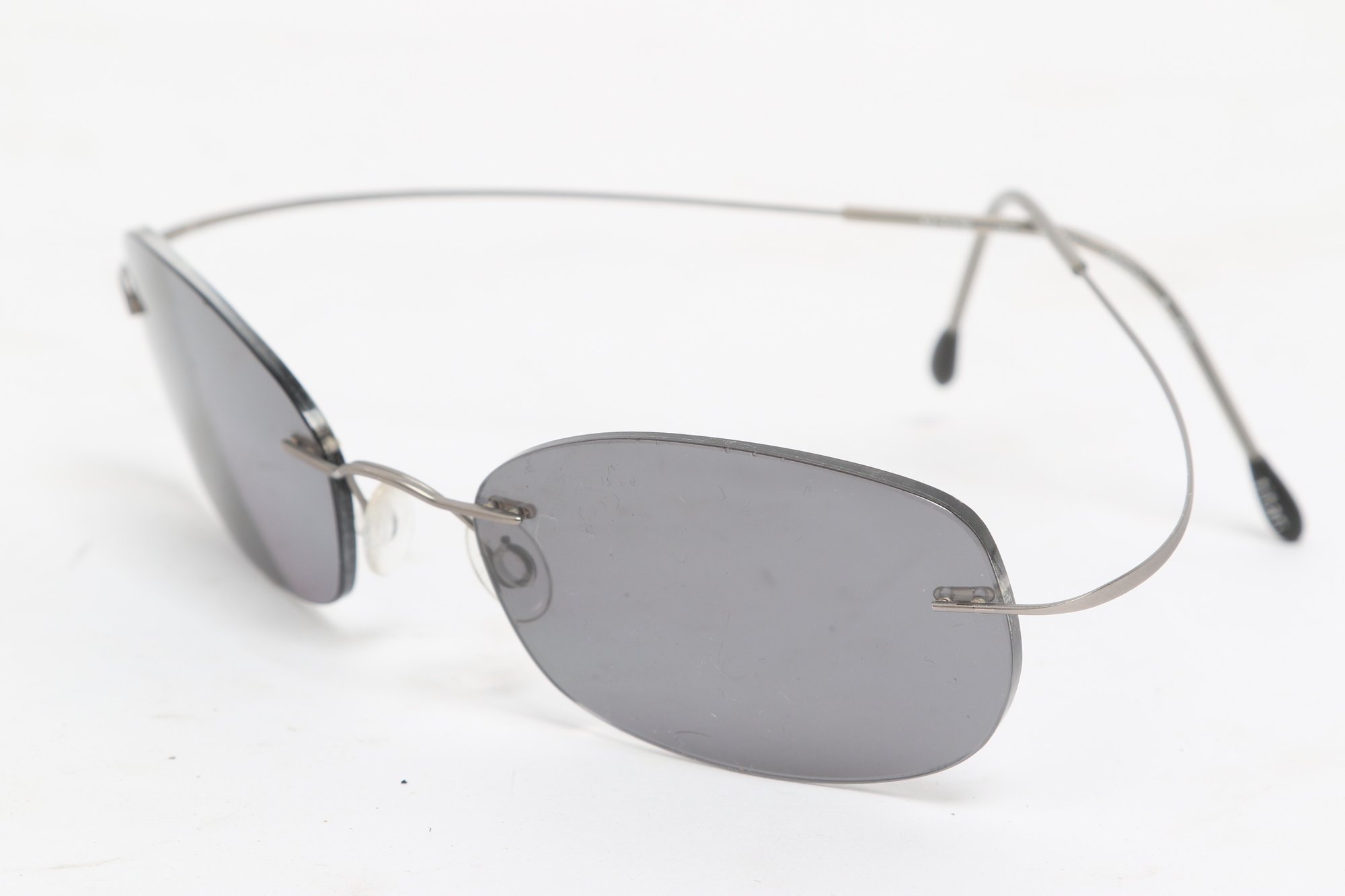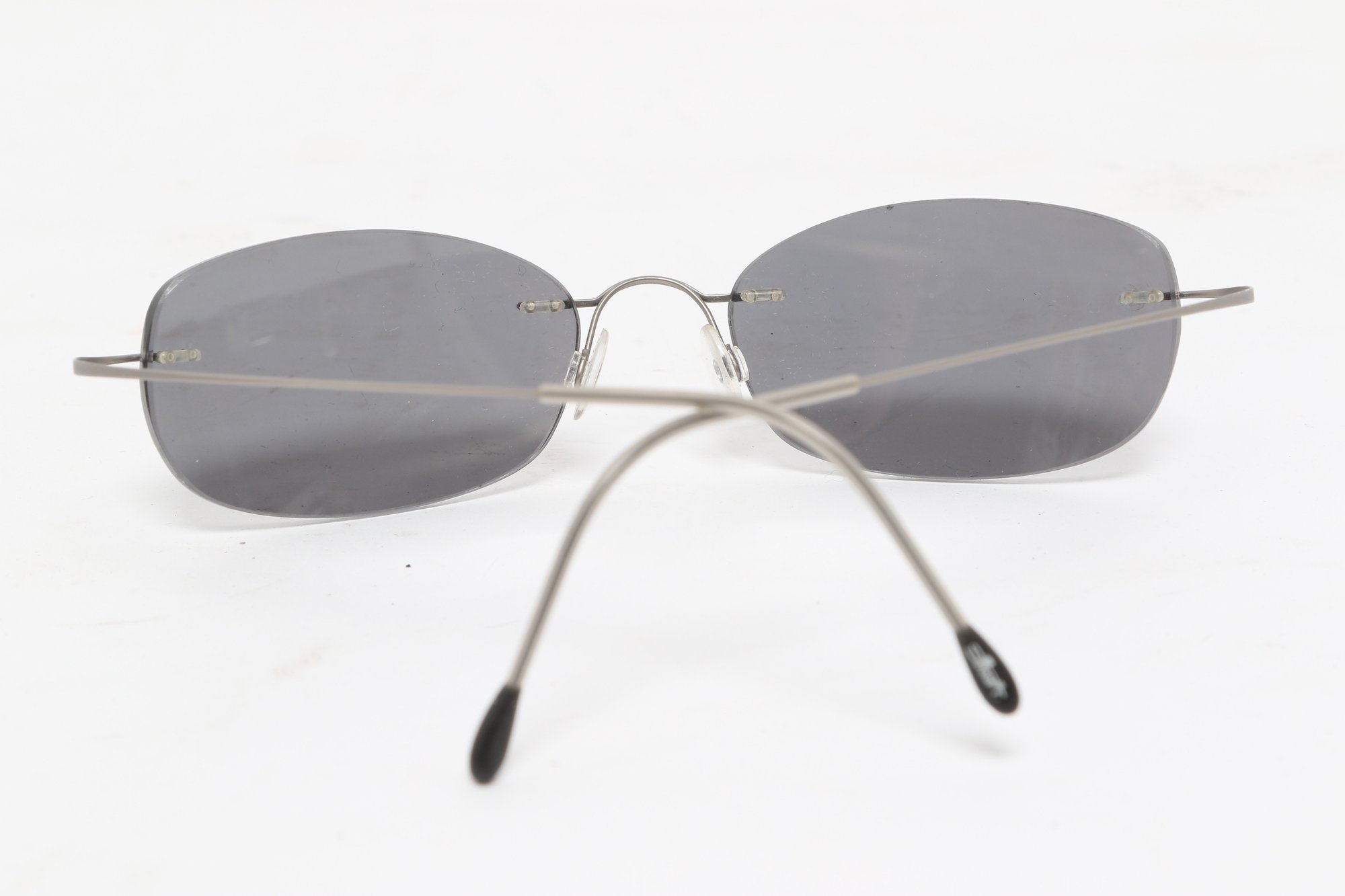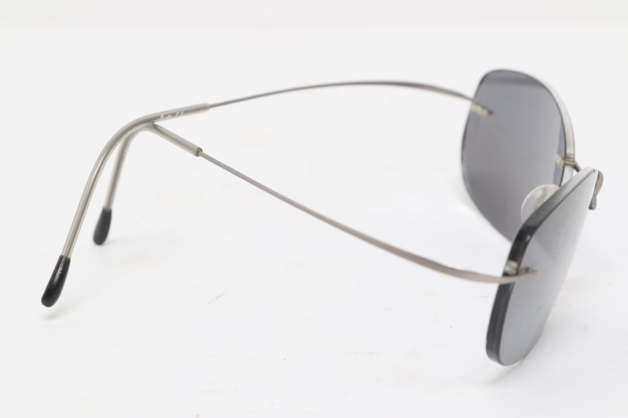 Silhouette rimless eyeglasses featuring lightweight titanium frames and minimalist design. Currently fitted with prescription lenses (frames only value); lenses should be replaced. Pre-owned with light wear.