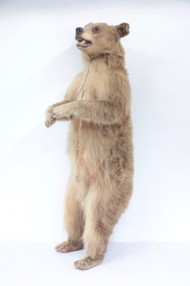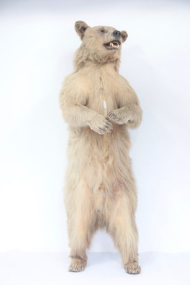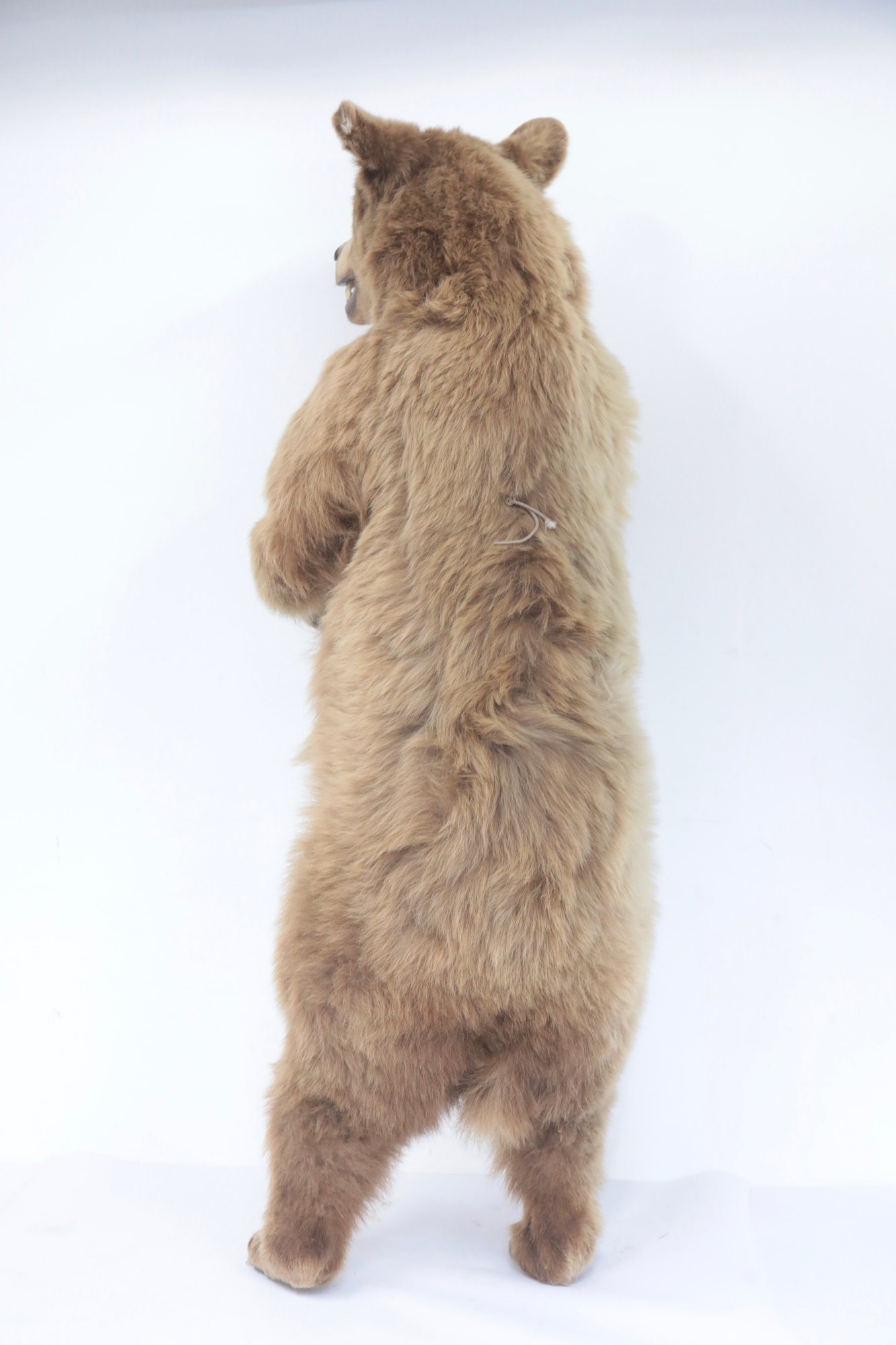 Standing Taxidermy Bear measuring approximately 5' tall. See pictures carefully for details on size and condition. Taxidermy is beginning to split.