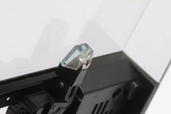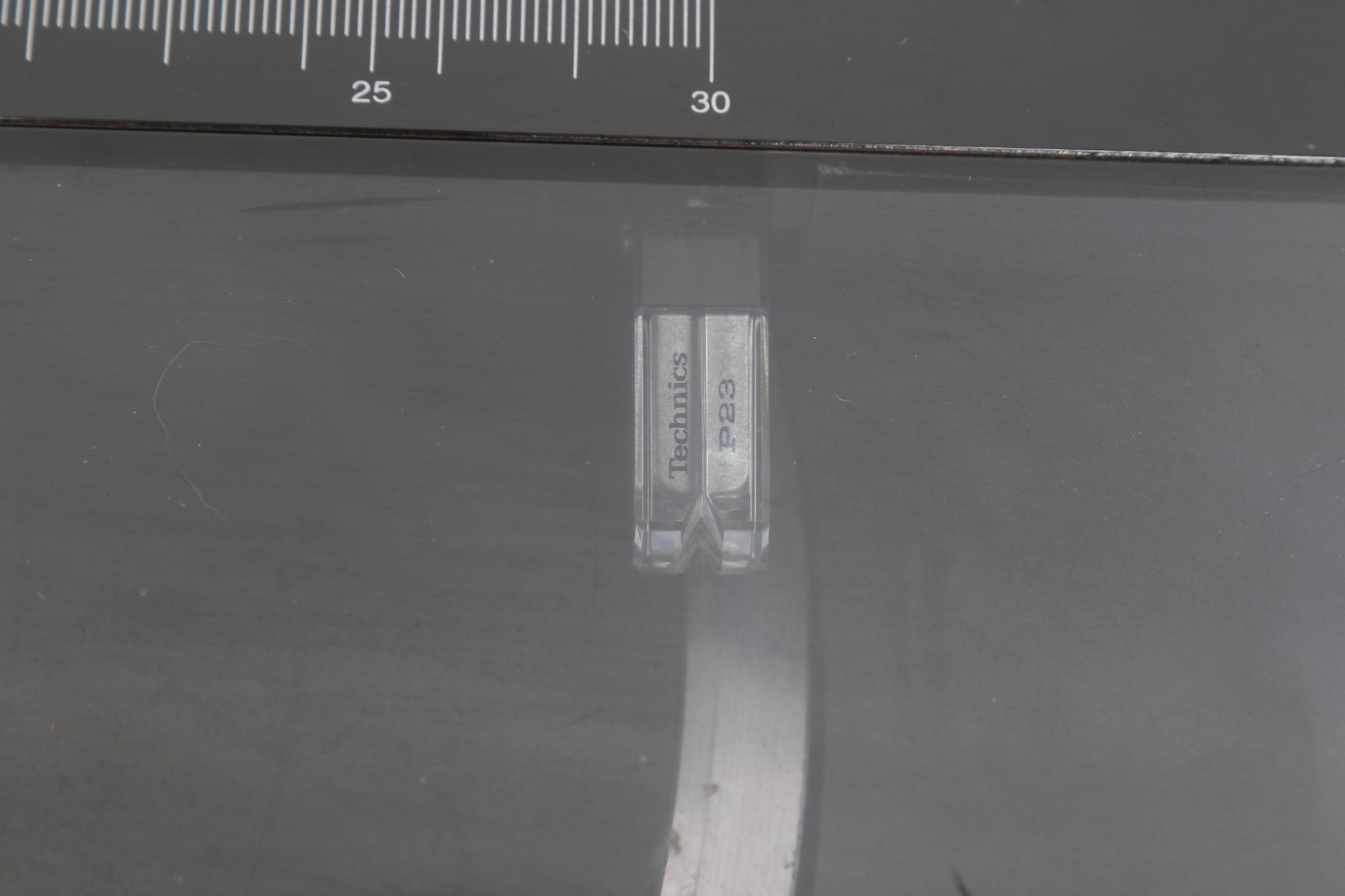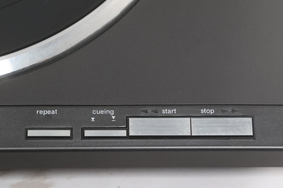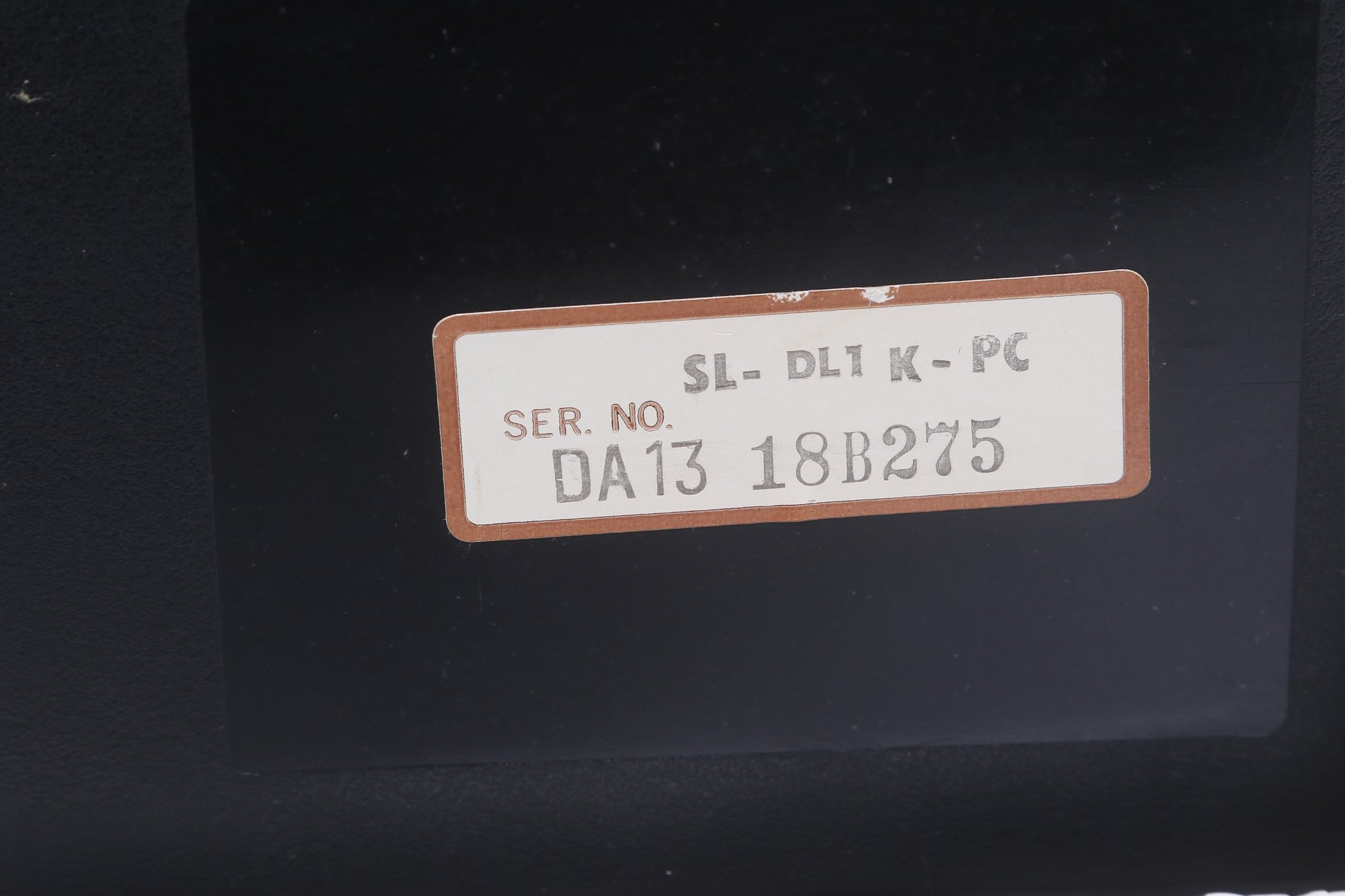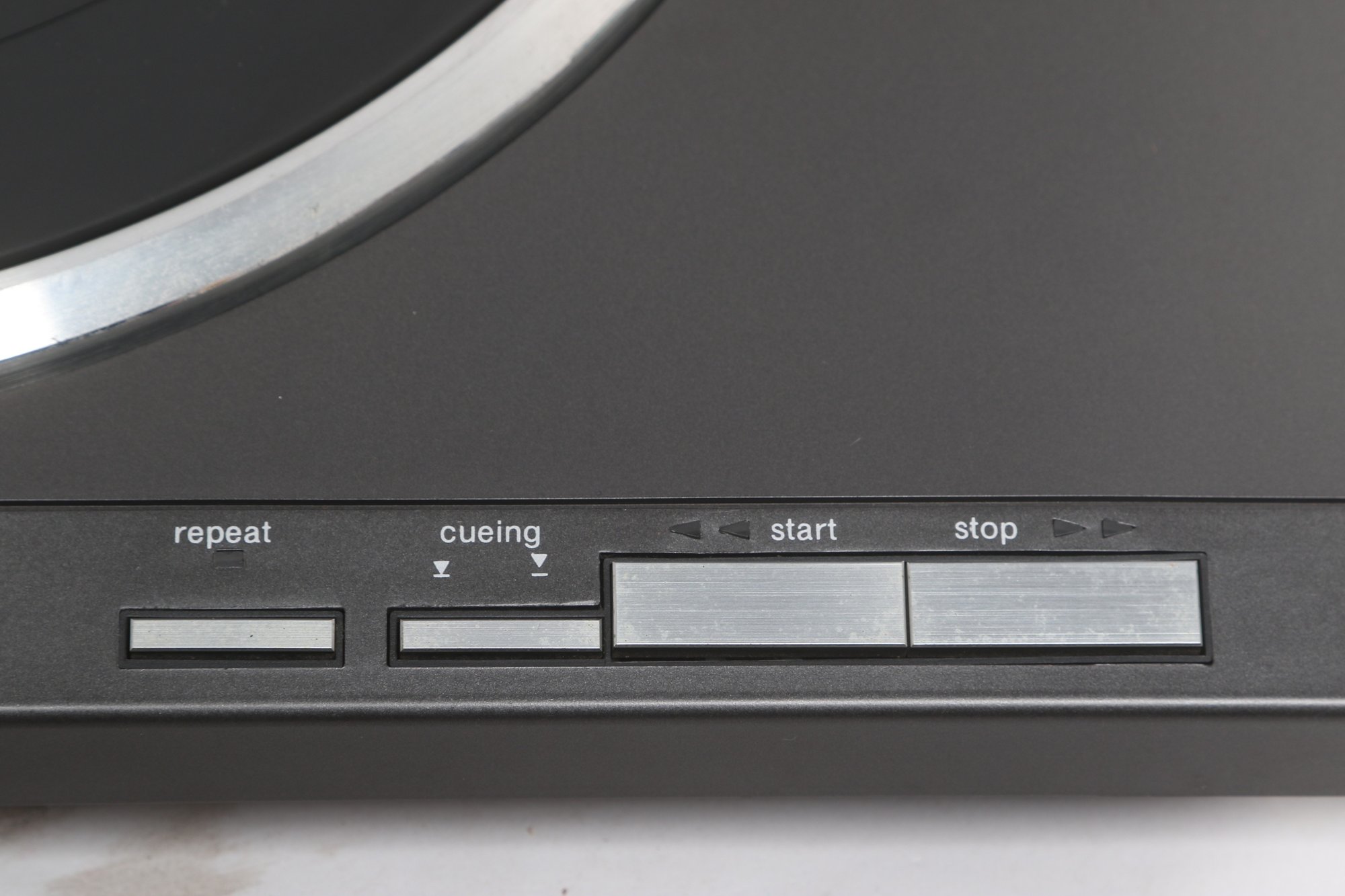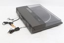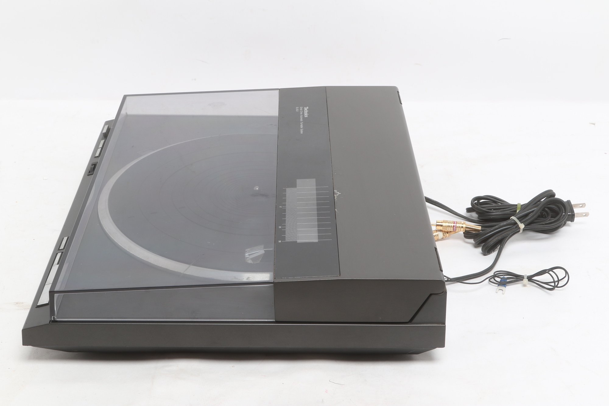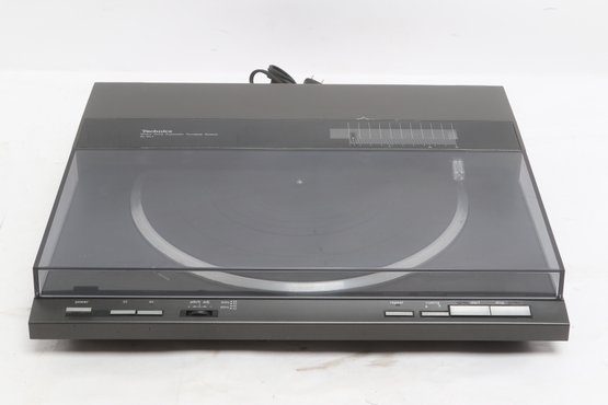 Vintage Technics SL-DL1 direct drive linear tracking turntable, made in Japan. Features fully automatic operation with sleek low-profile design and dust cover. Tested and functions as intended. Includes original box showing storage wear. Pre-owned with light cosmetic wear consistent with age.