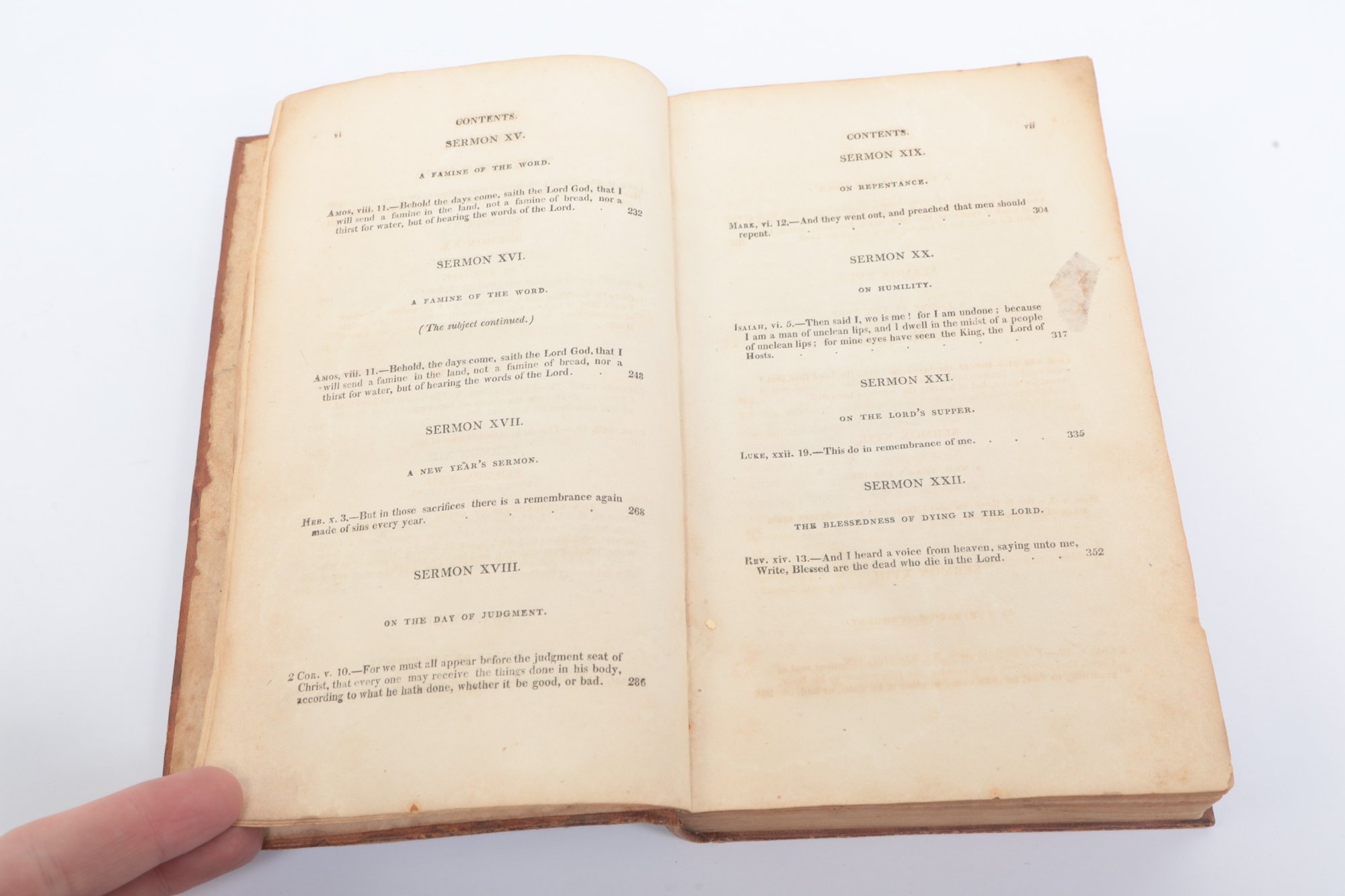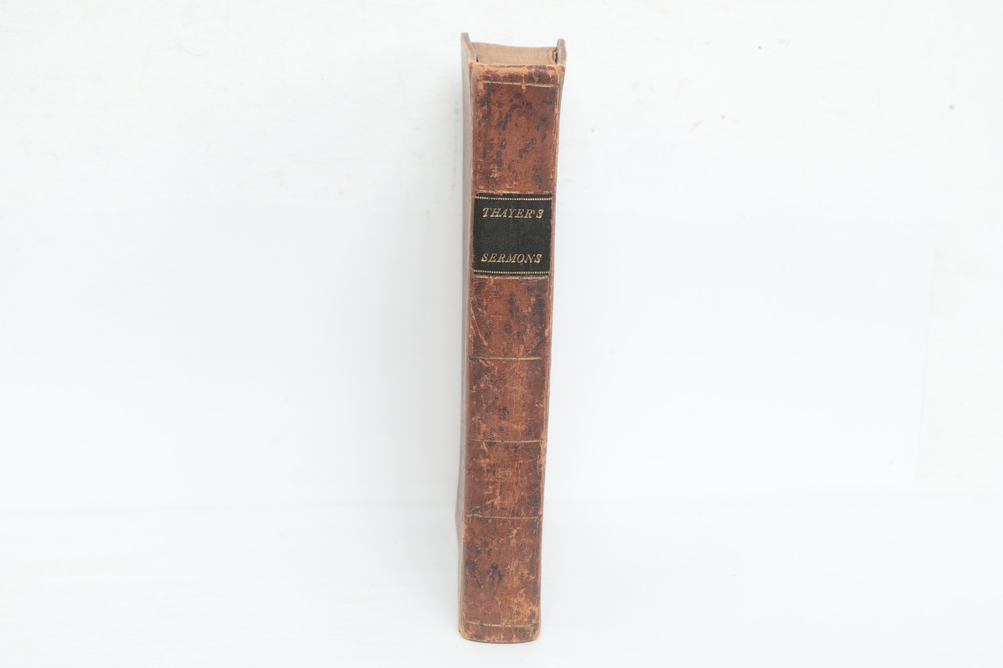 Thayer, Elihu, D.D. Sermons, Evangelical, Doctrinal, and Practical. Exeter, N.H.: Printed by C. Norris & Co., 1813. First edition, by the late Pastor of the First Church in Kingston, New Hampshire. Original full mottled calf, black morocco spine label; binding rubbed with some foxing to title page and preliminary leaves, contents generally sound.