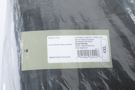 Three Multipacks Goodfellow Mens 4XL Boxer Shorts in original packaging. One package is open. 5 pairs per pack, 15 pairs total. See pictures carefully for details on contents included with lot.