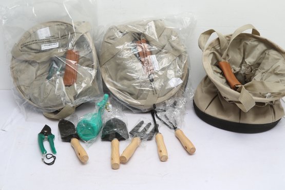Three New Scuddles 9pc Collapsible Gardening Set W/ Tools And Bag. See pictures carefully for details on contents included.