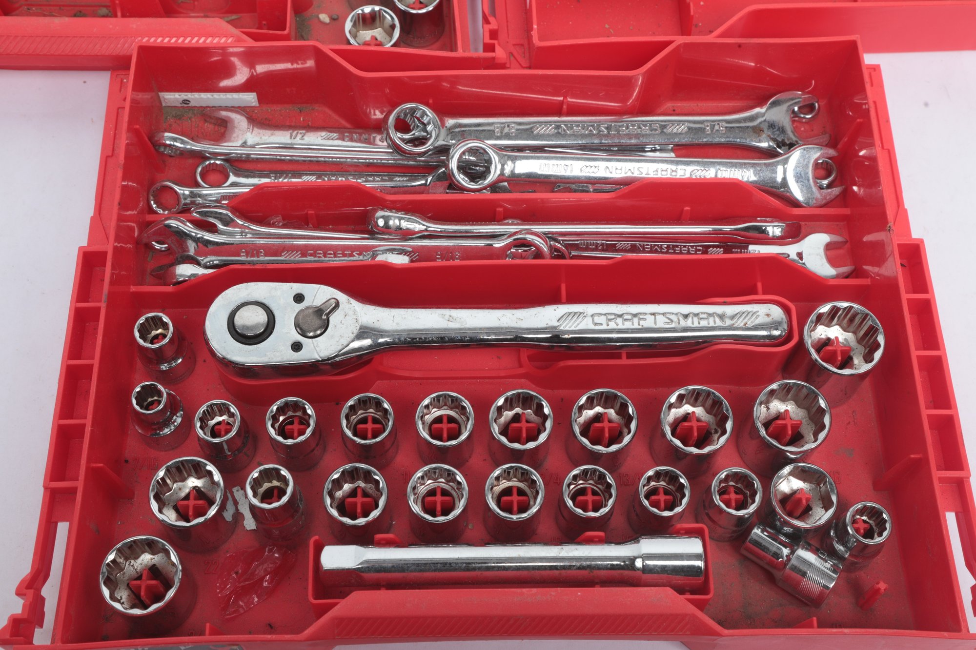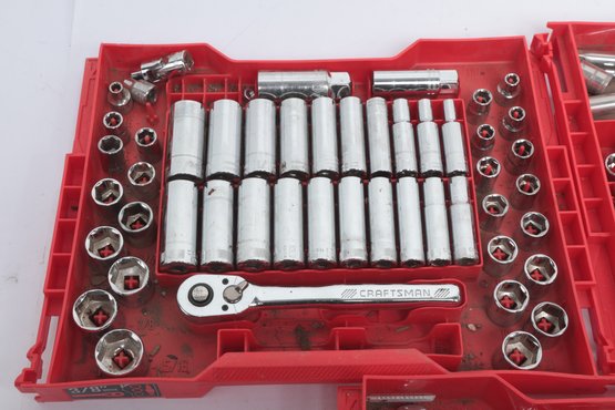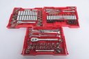 Three Trays Wrenches And Sockets organized and displayed. Many pieces appear unused. See pictures carefully for details on contents included and condition.