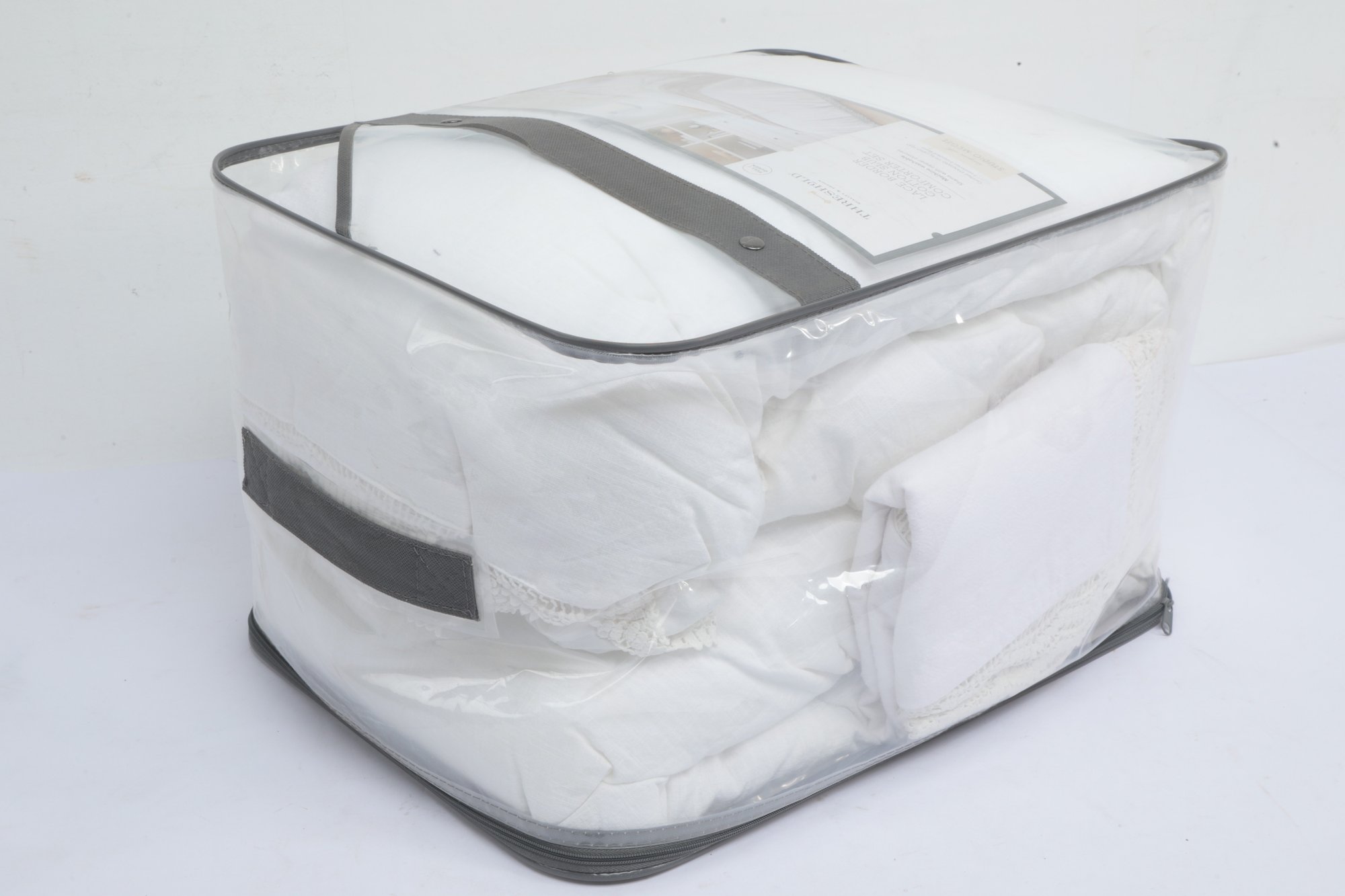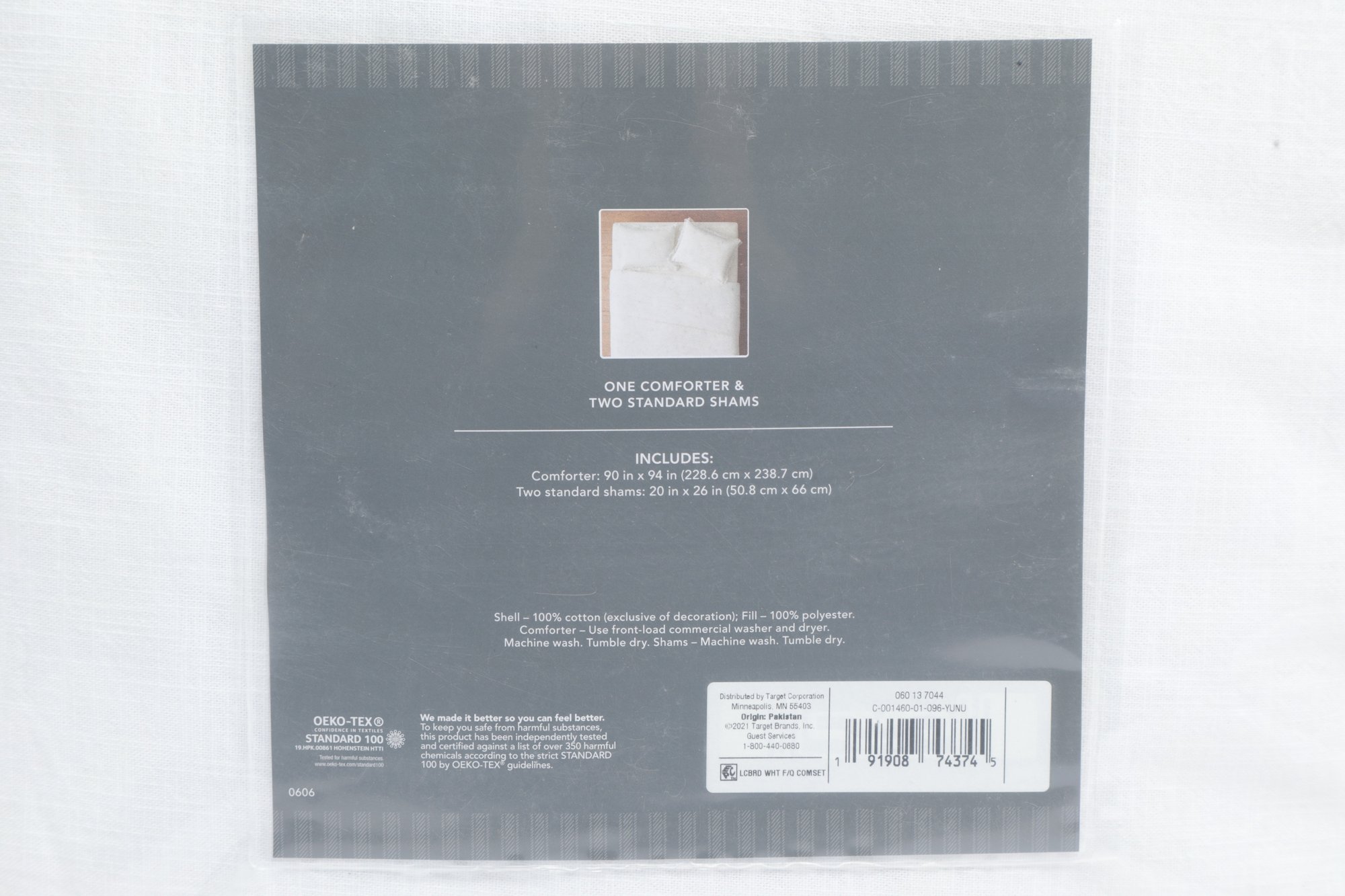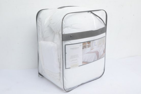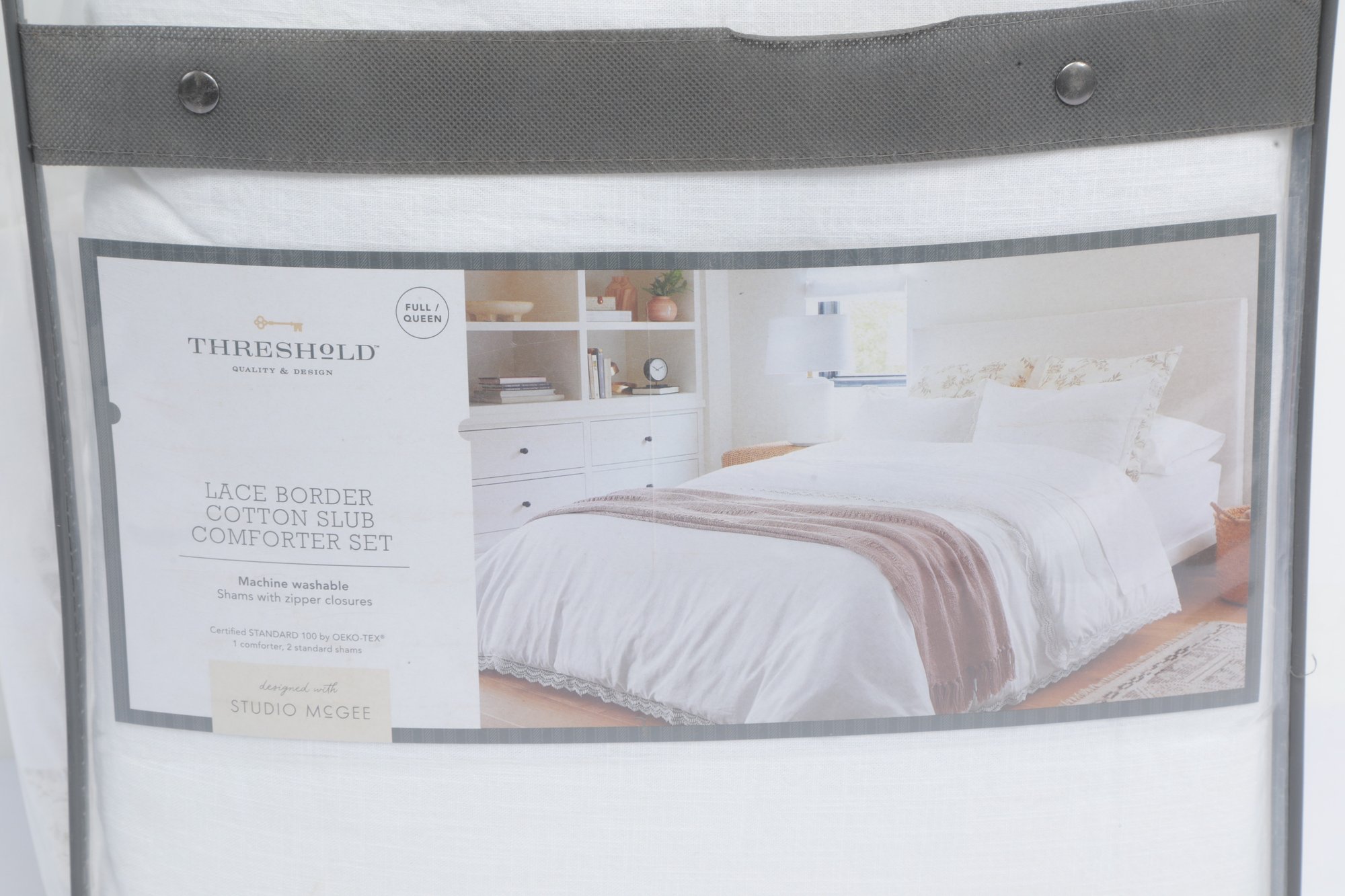Threshhold Full/Queen Lace Border Cotton Slub Comforter Set in original packaging. Has been in storage, see pictures carefully for details.