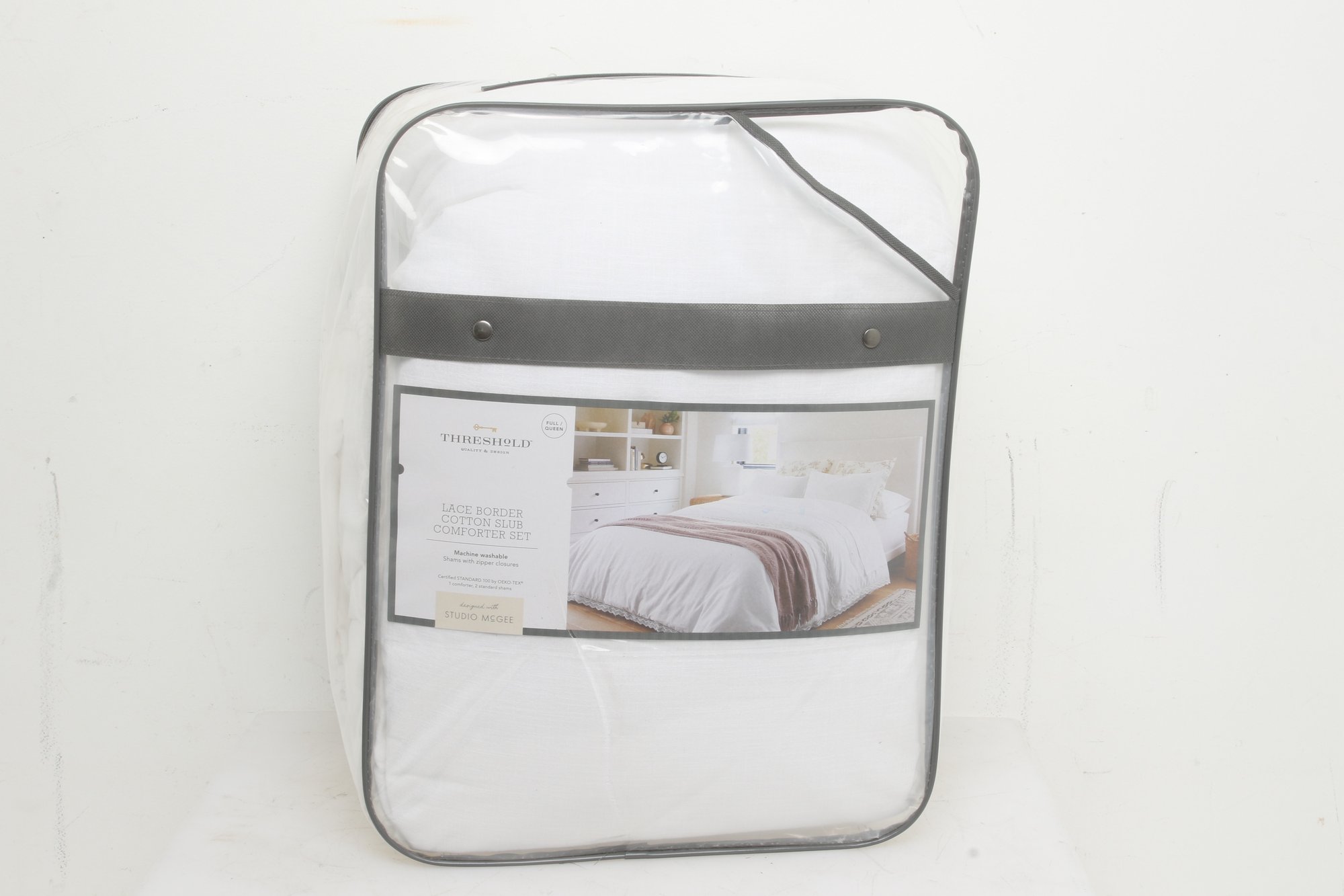 Threshold Studio Mcgee Lace Border Cotton Slub Comforter Set Full/Queen White New