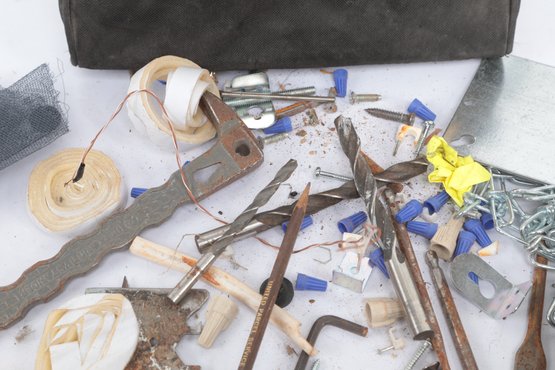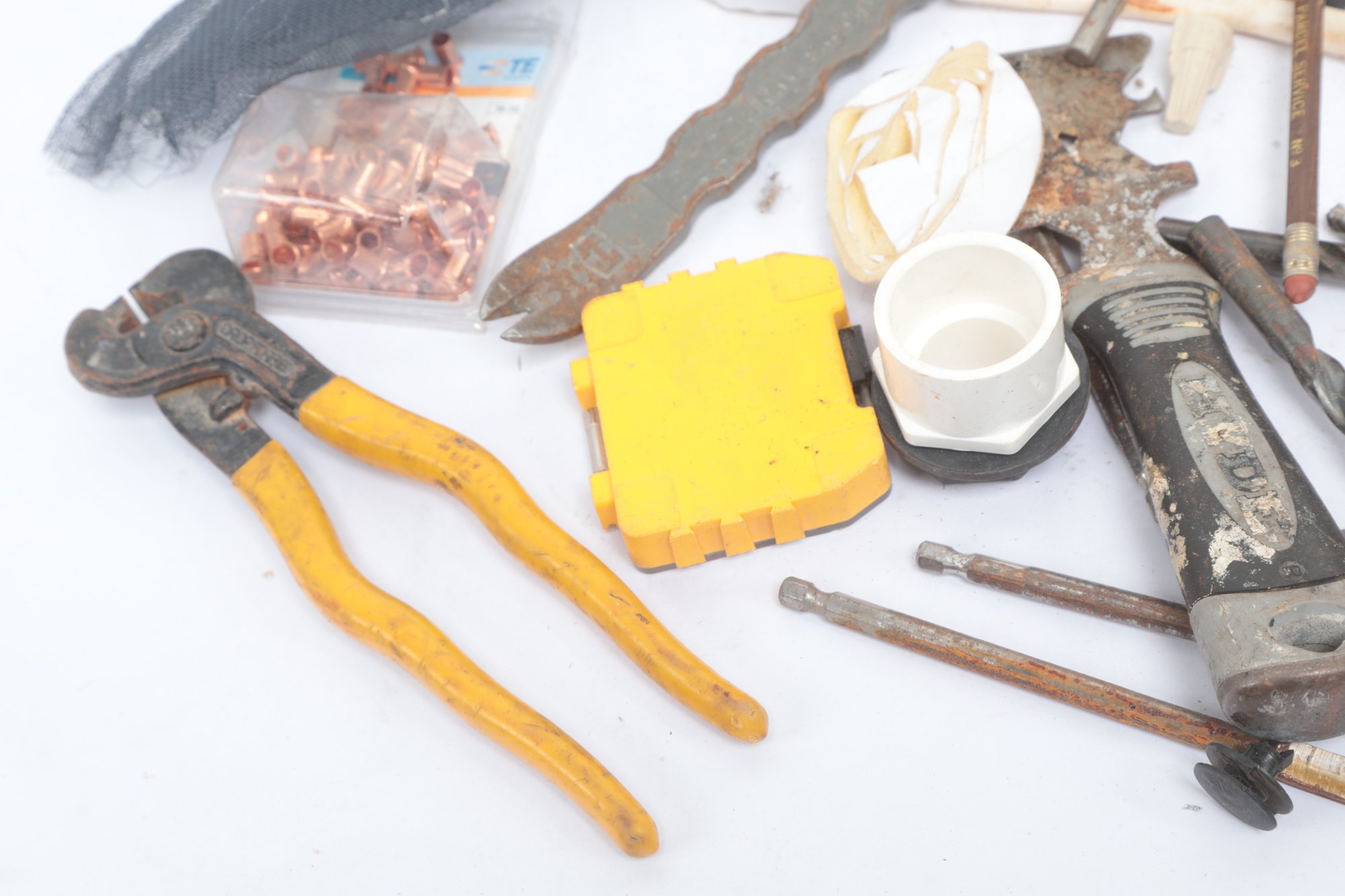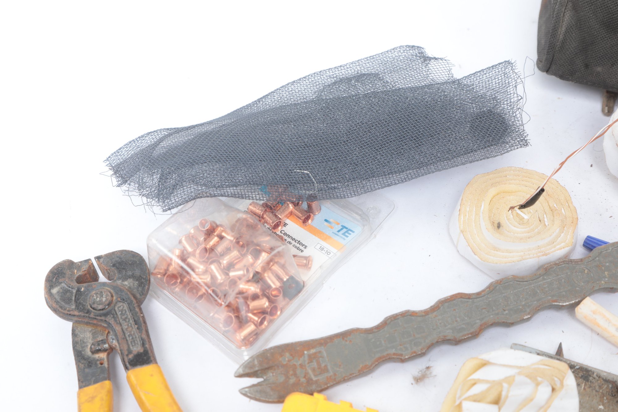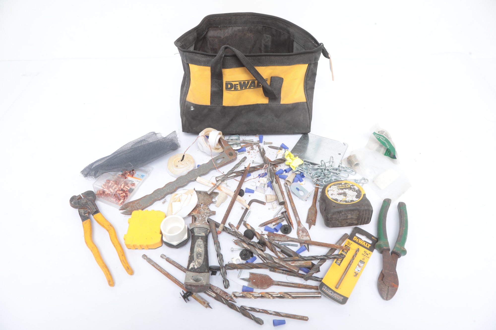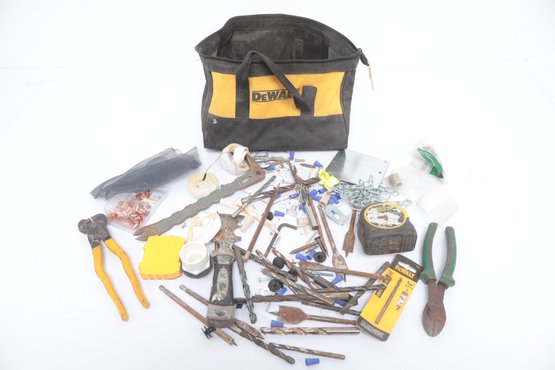 Tool Bag Lot Assorted Hand Tools And Drill Bits. See pictures carefully for details on contents included and condition.