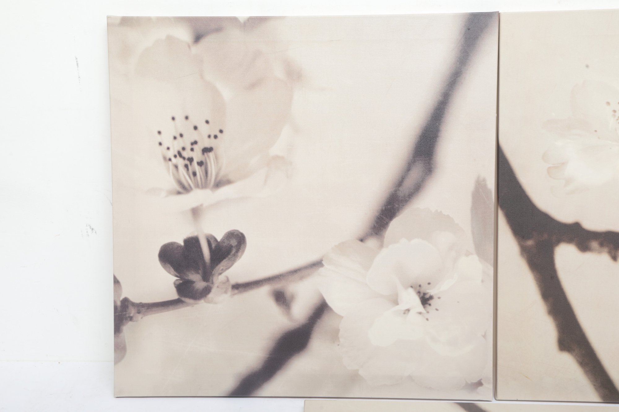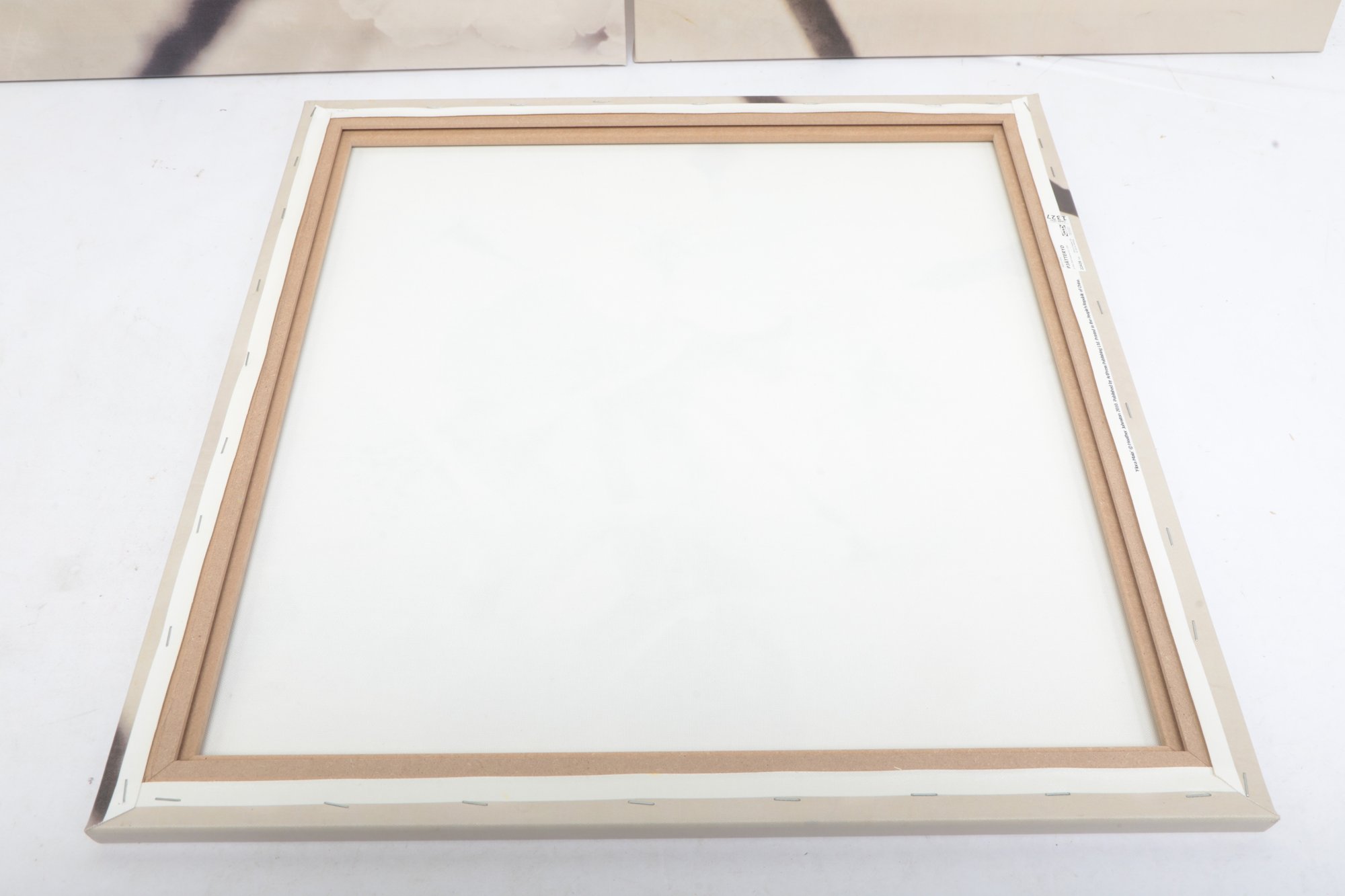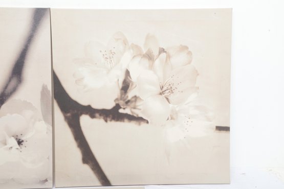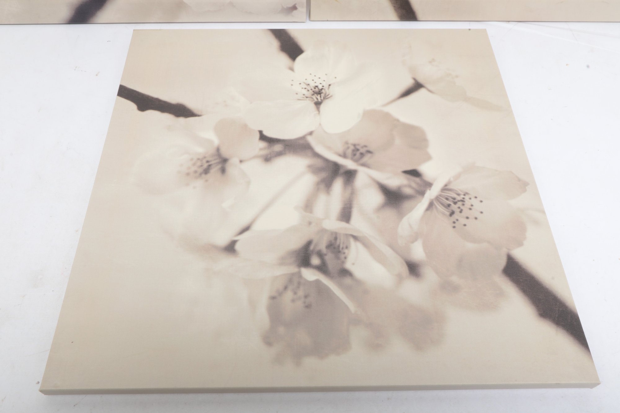 Trio Of Floral Print Canvases. Each measures approximately 22.25" x 22.25". See pictures carefully for details.