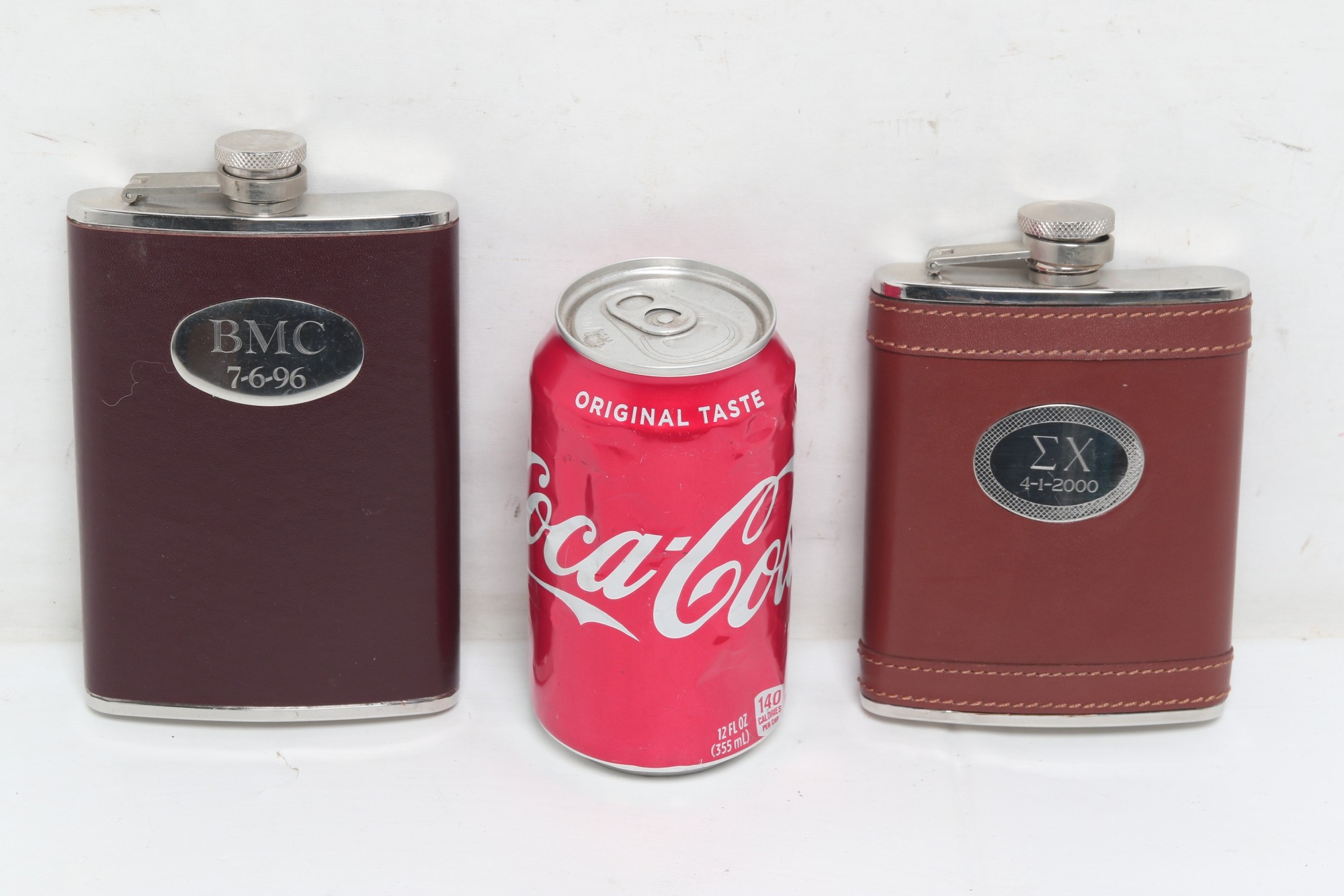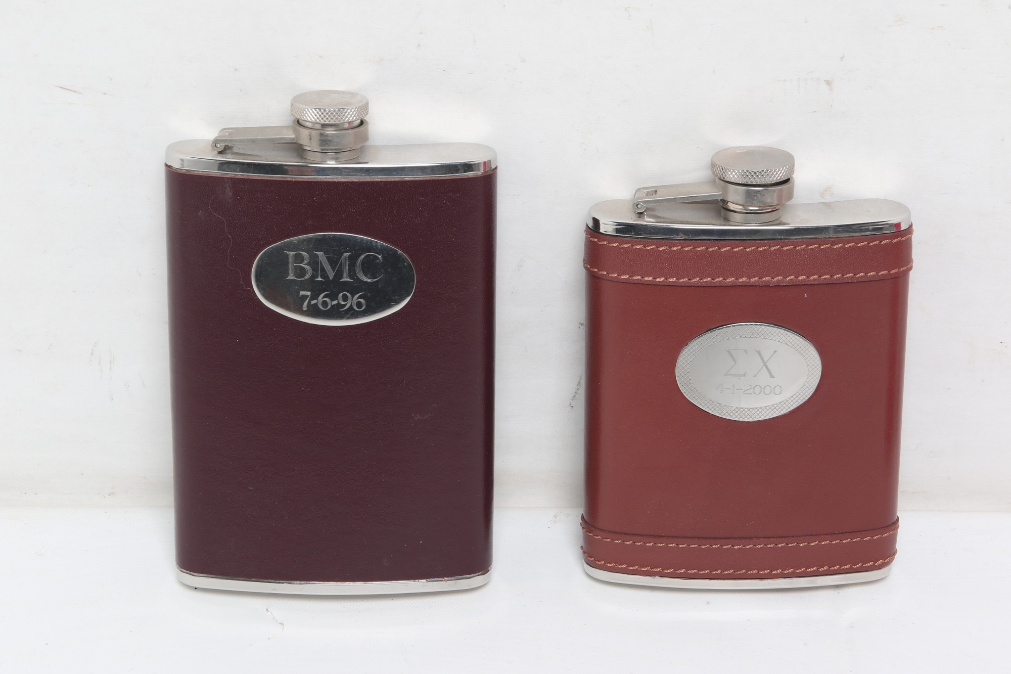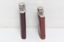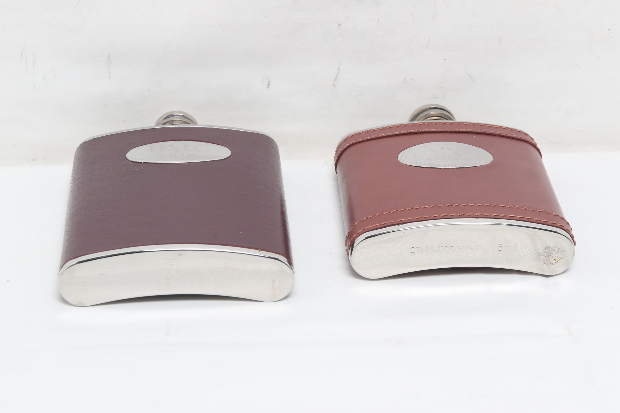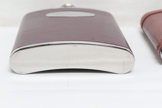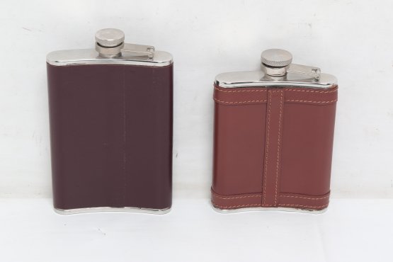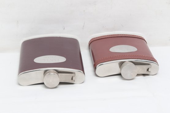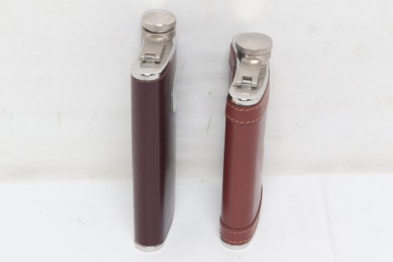 Two Metal And Leather Hip Flasks