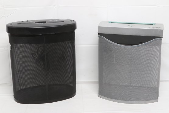 Two Paper Shredders With A Mesh Wastebaskets - Working