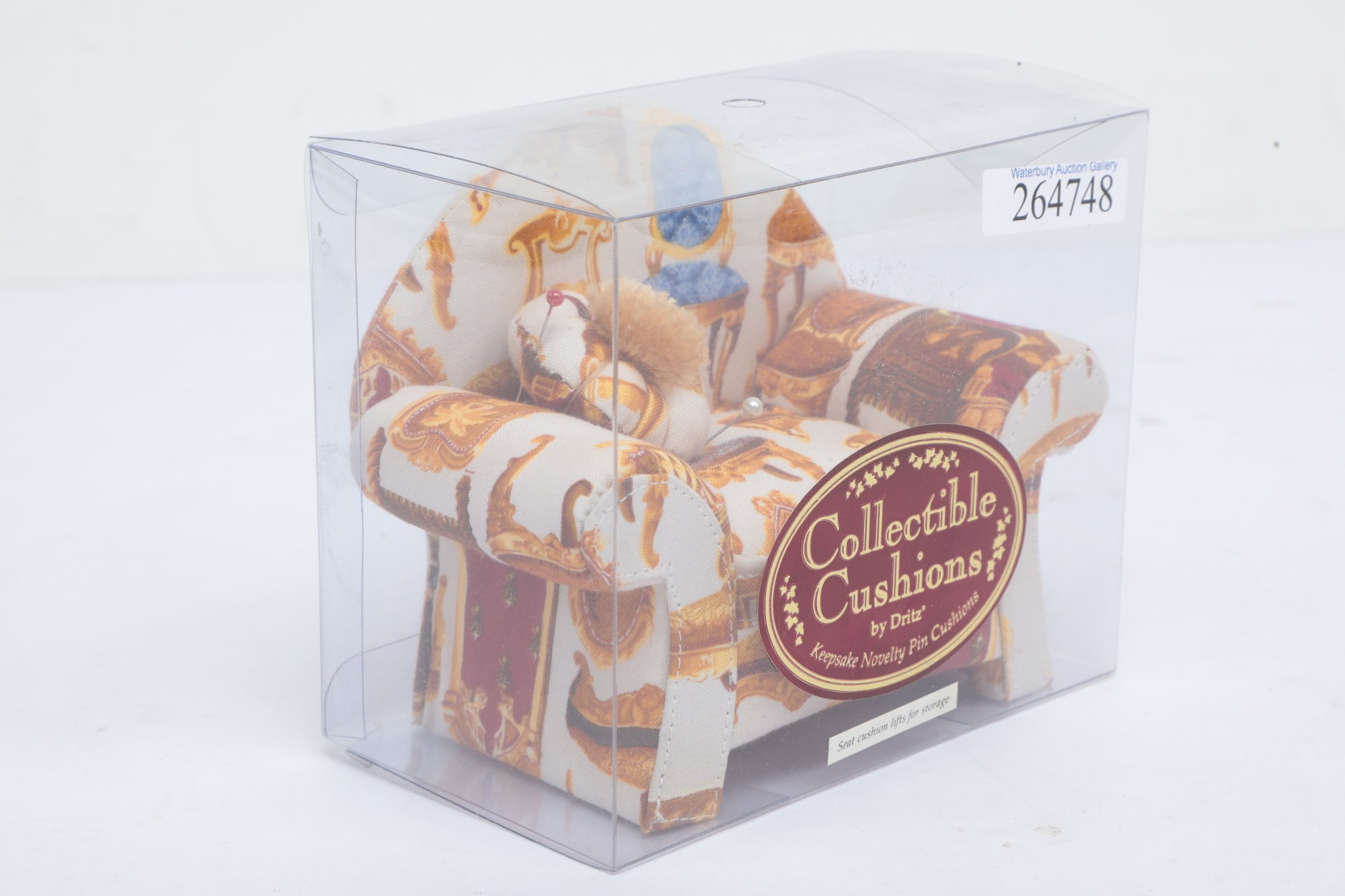 Vintage 1998 Collectible Cushions by Dritz Keepsake Novelty Pin Cushion in original packaging. See pictures carefully for details on size and condition. Appears unused.