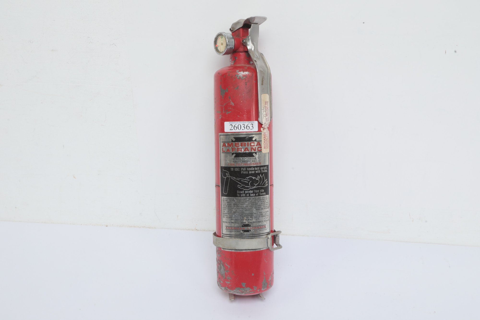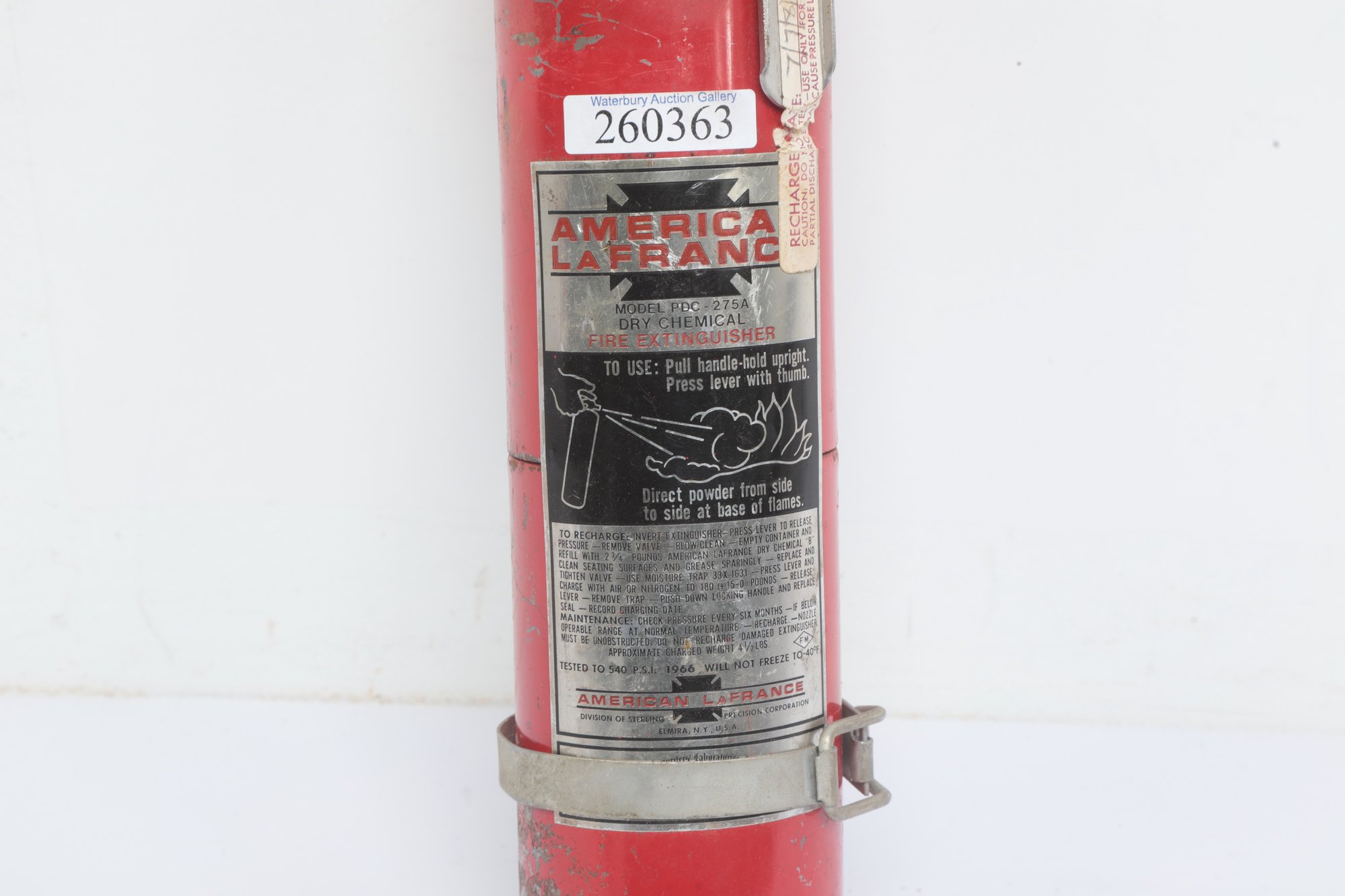 Vintage American LaFrance PDC 275 Dry Chemical Fire Extinguisher for collecting or display. Has wear and damage from age and use. See pictures carefully for details on size and condition.