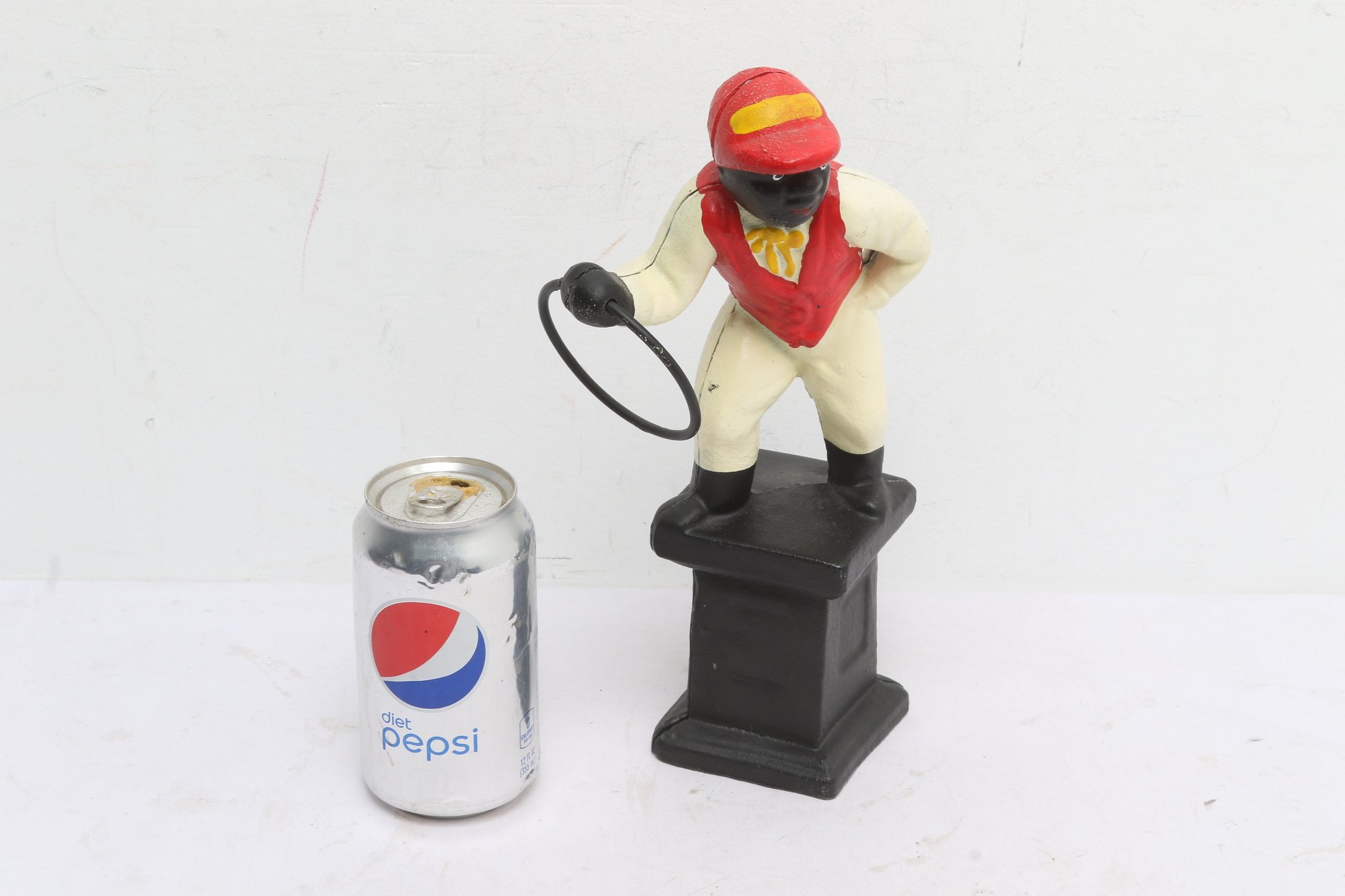 Vintage Black Americana Jocko Cast Iron Statue. Measures approximately 11" tall. Has some wear and paint chipping consistent with age and use. See pictures carefully for details on size and condition.