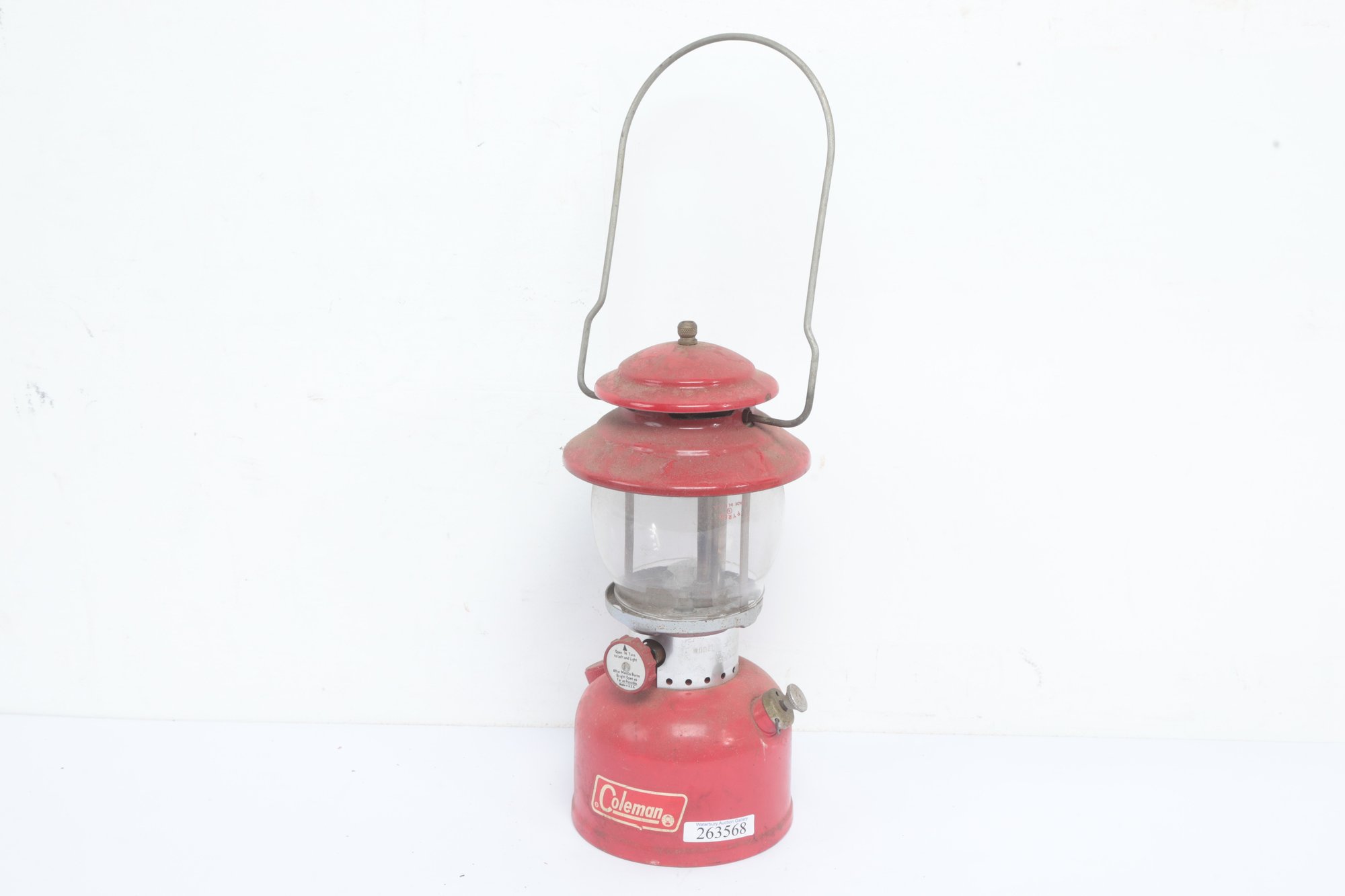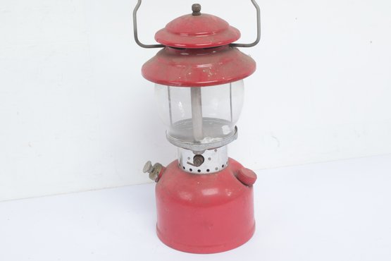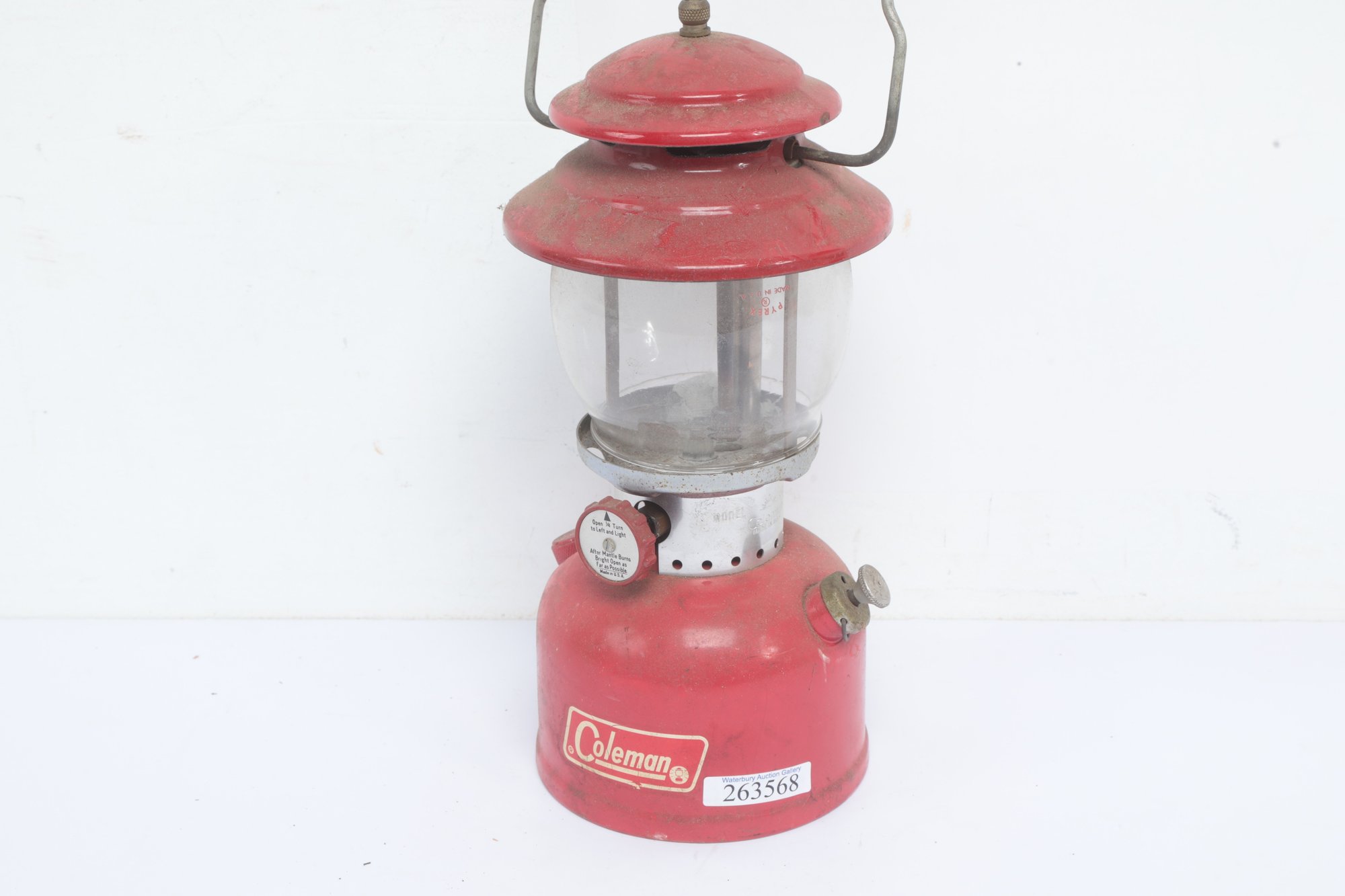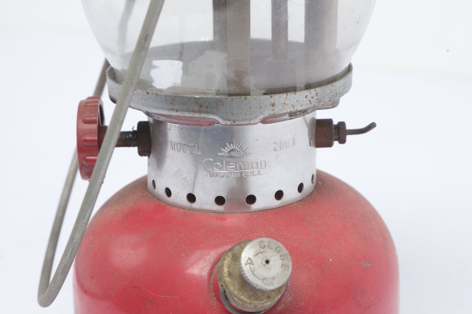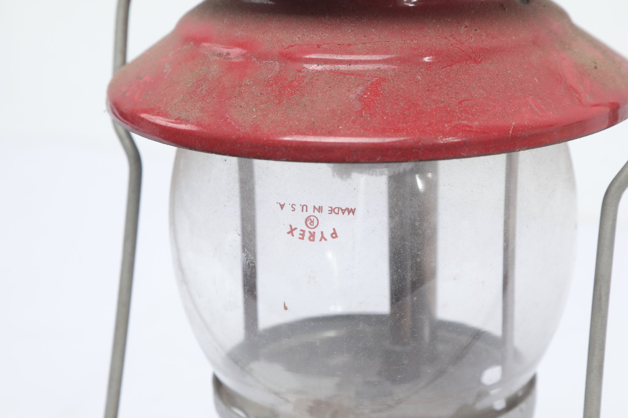 Vintage Coleman 200A Red Lantern W/ Pyrex Glass. Lantern has some wear consistent with age and use, see pictures carefully for details on size and condition.